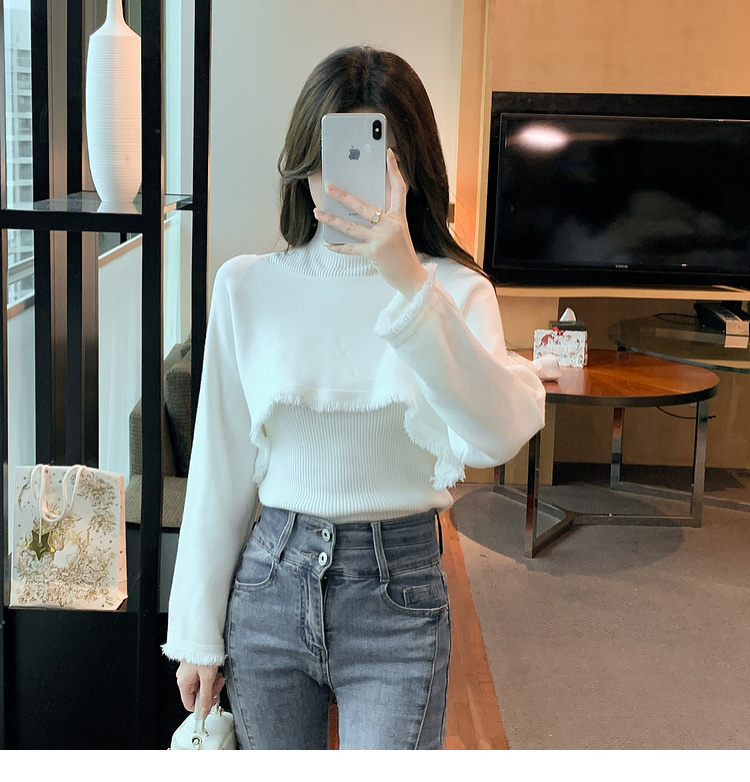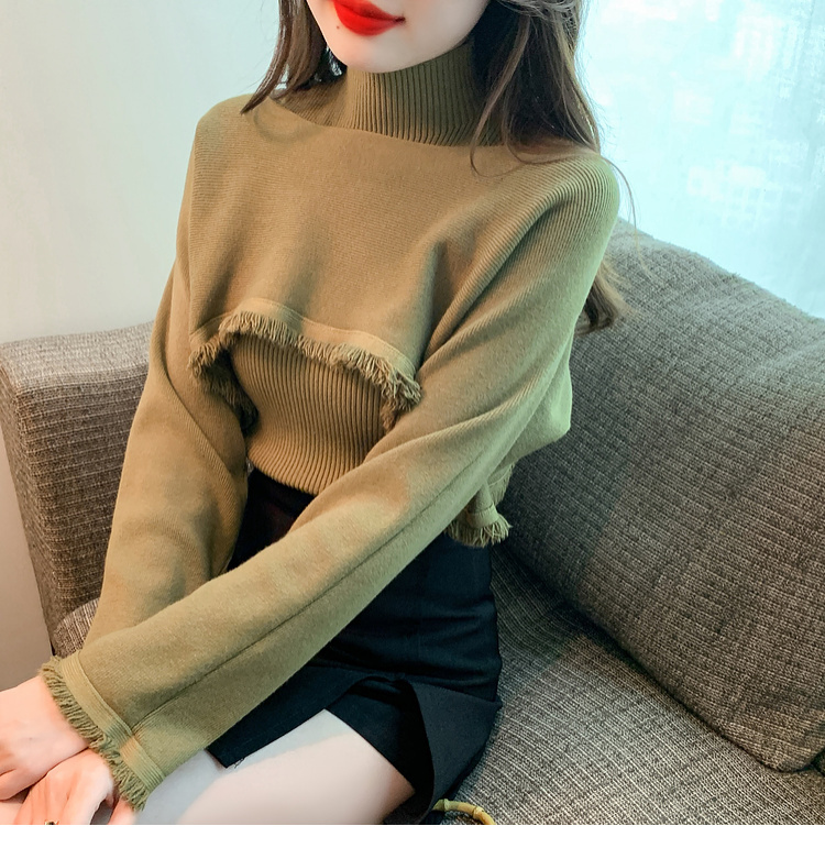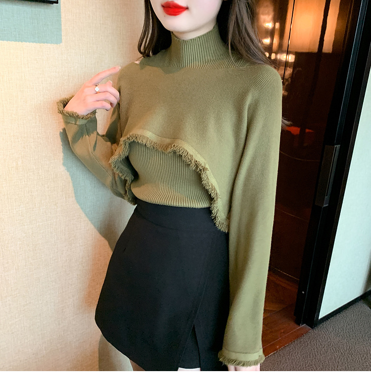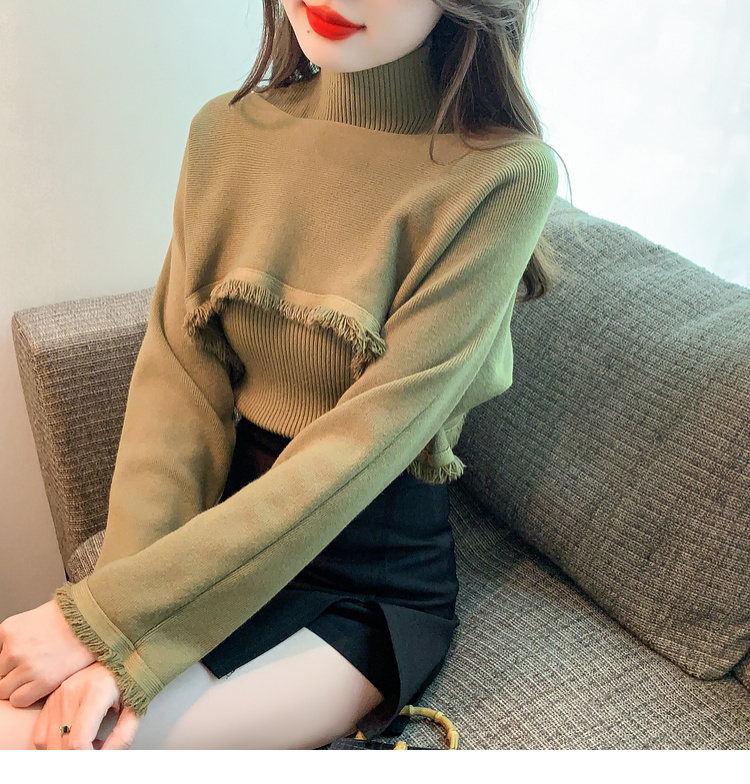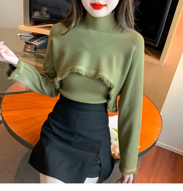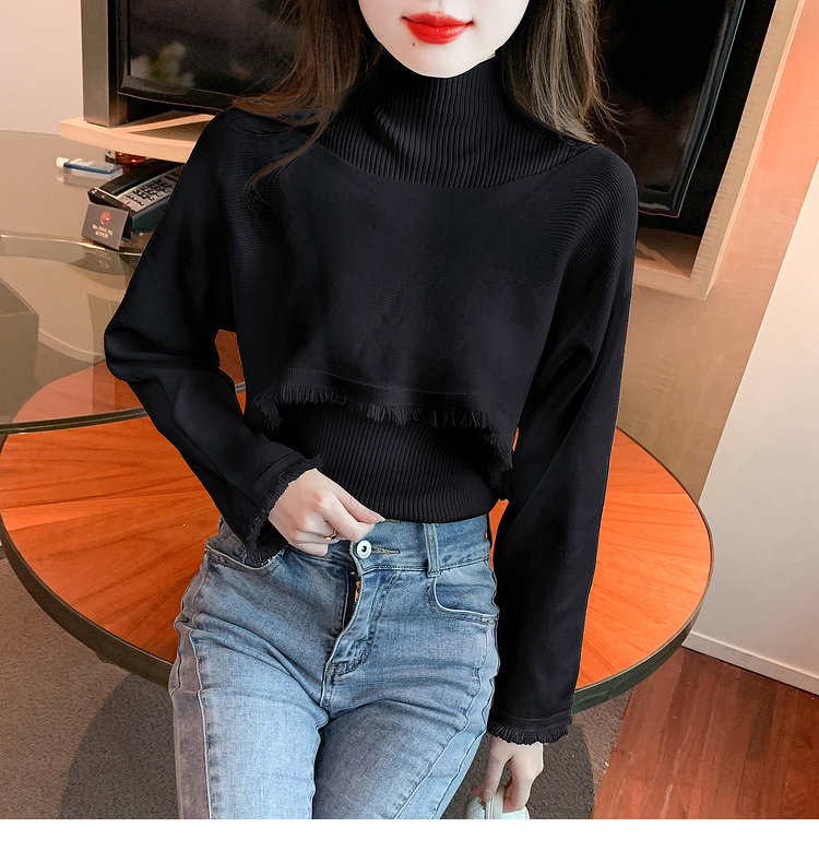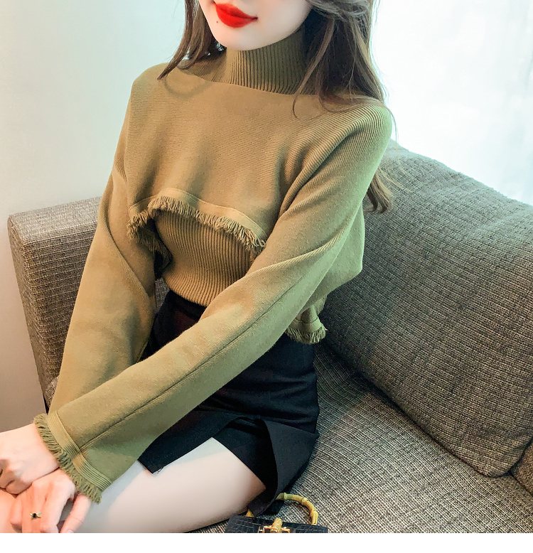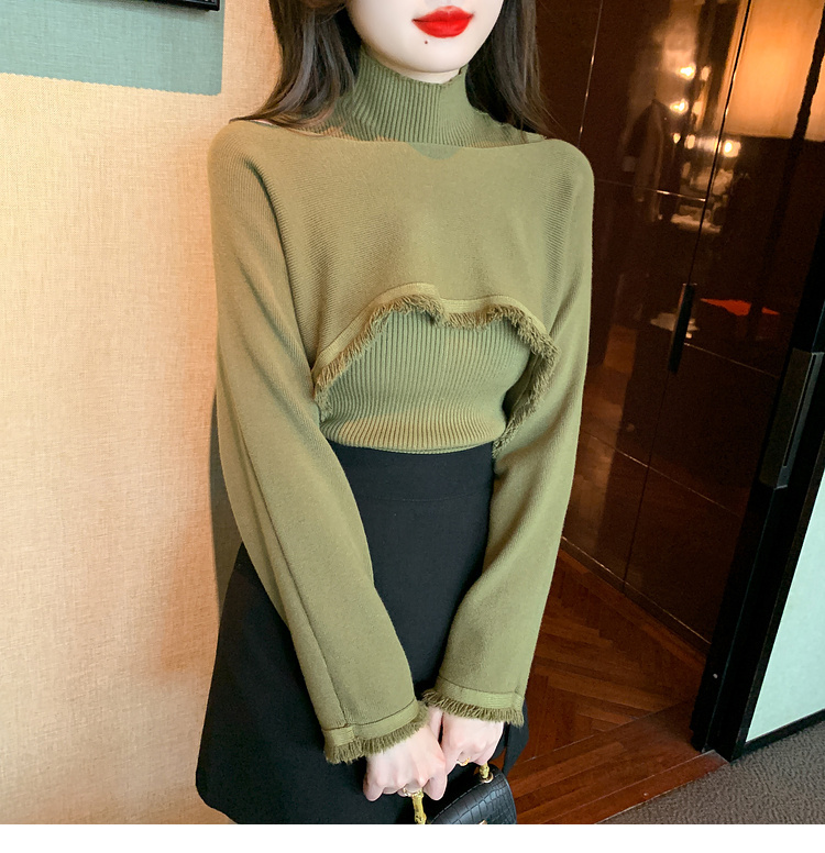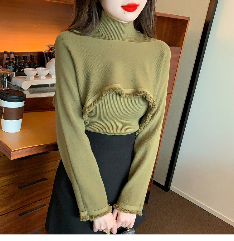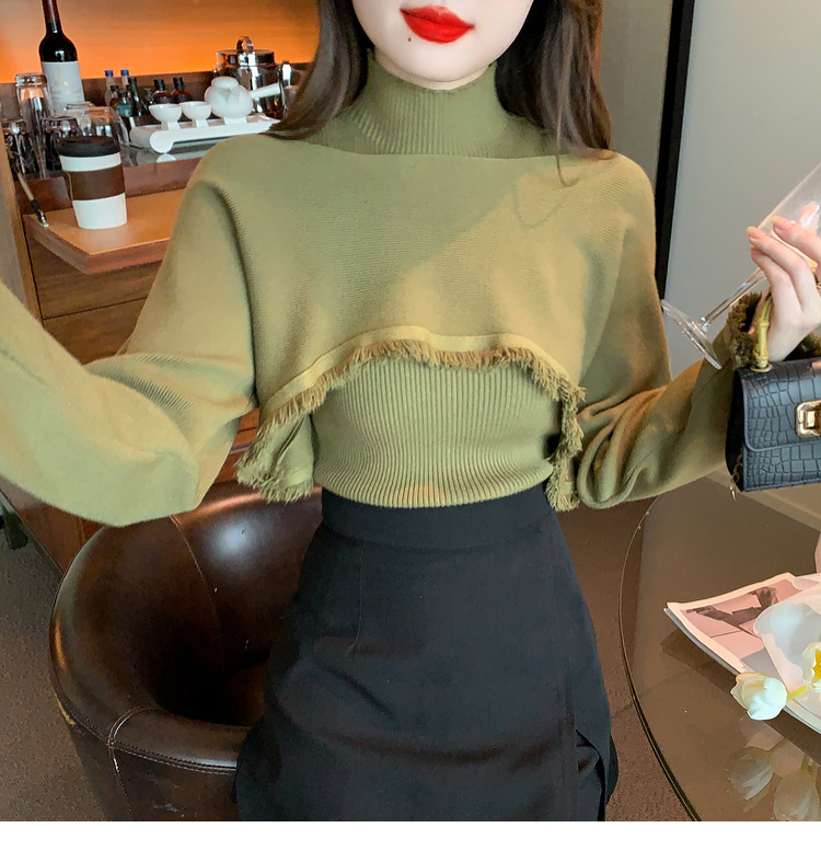 限量特惠|氣質百搭流蘇短款針織衫+高領內搭兩件式-3色(11H5452)