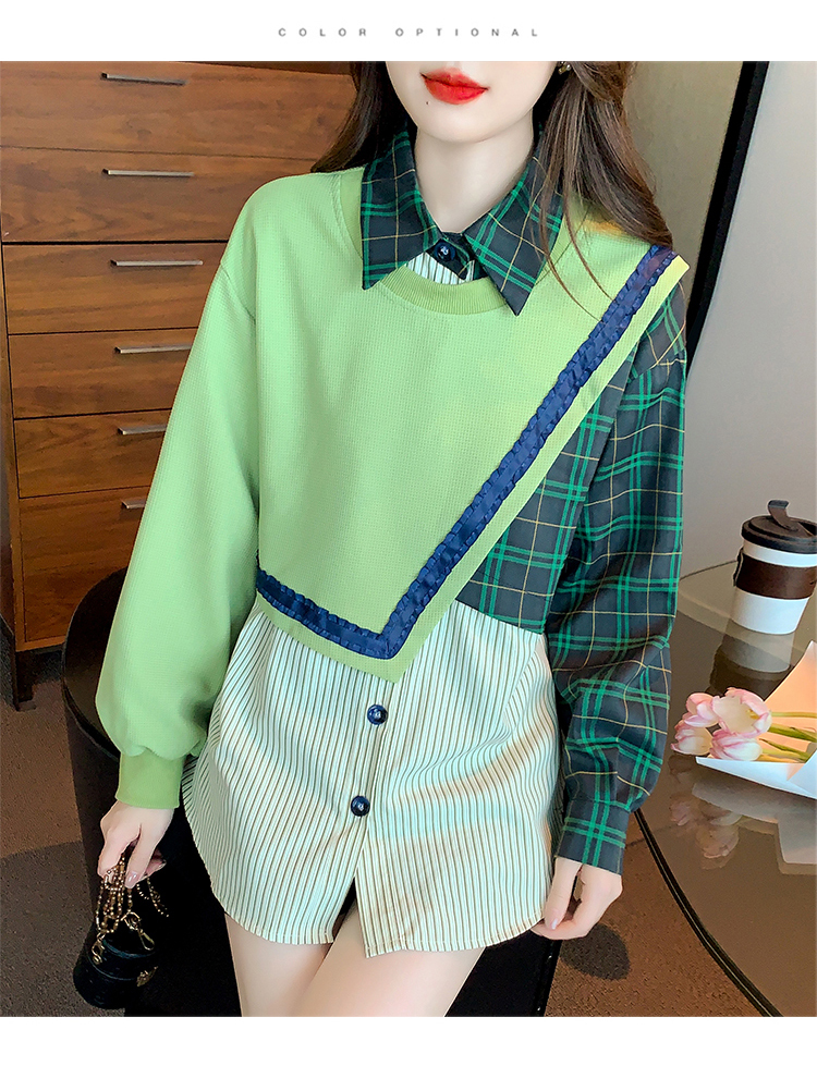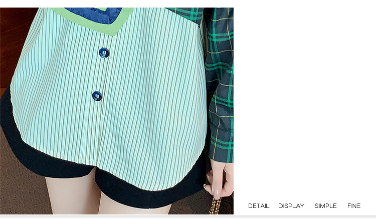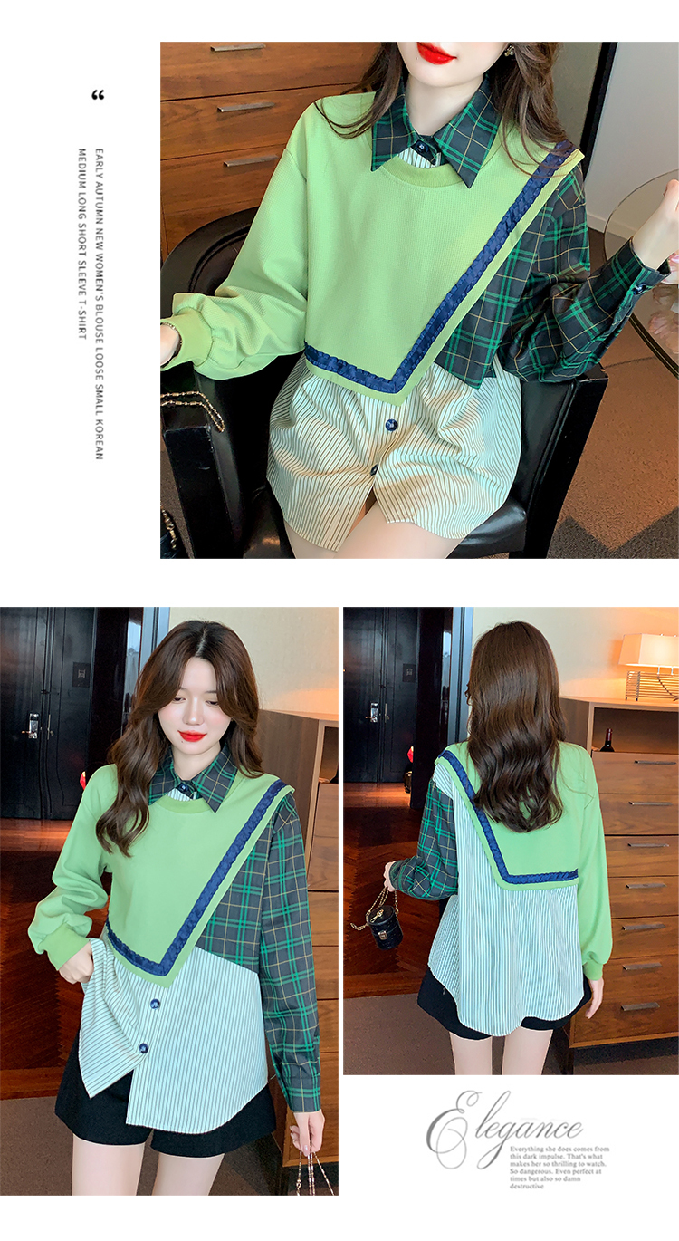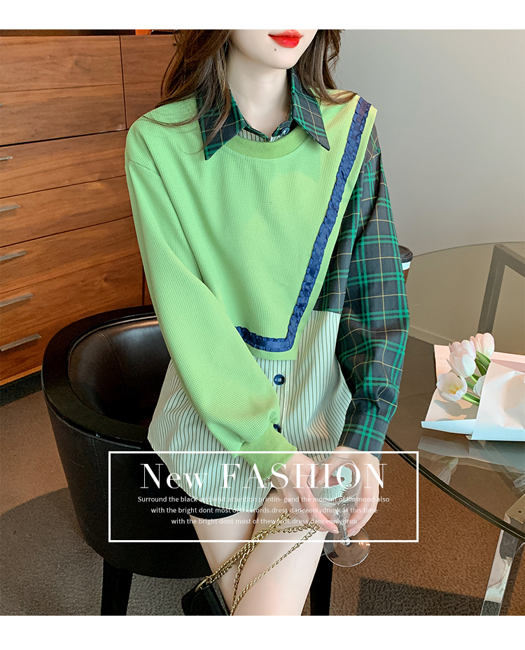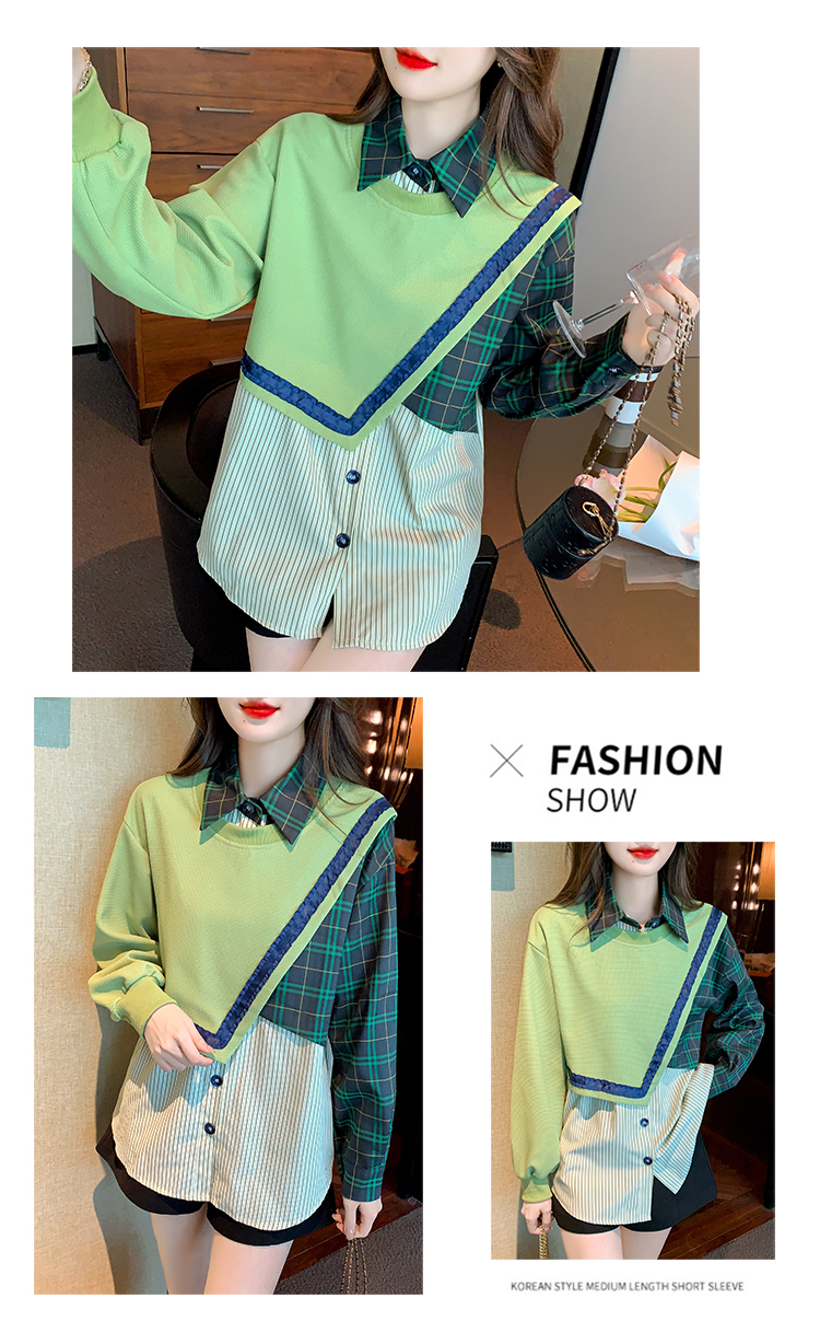 限量特惠|個性翻領拼接格紋假兩件式上衣(11M2137)