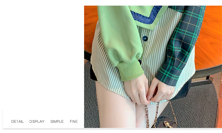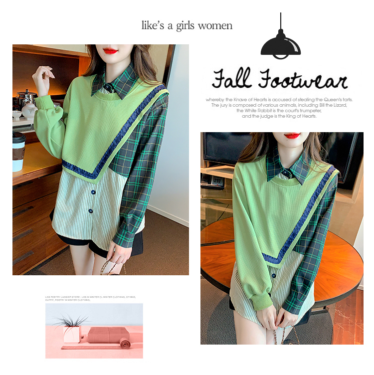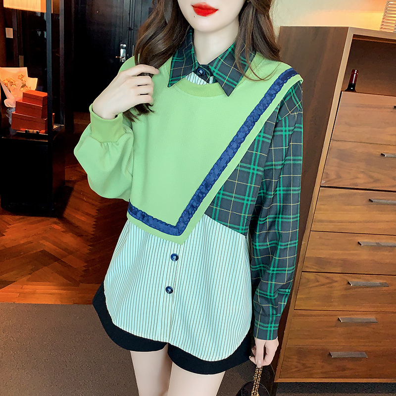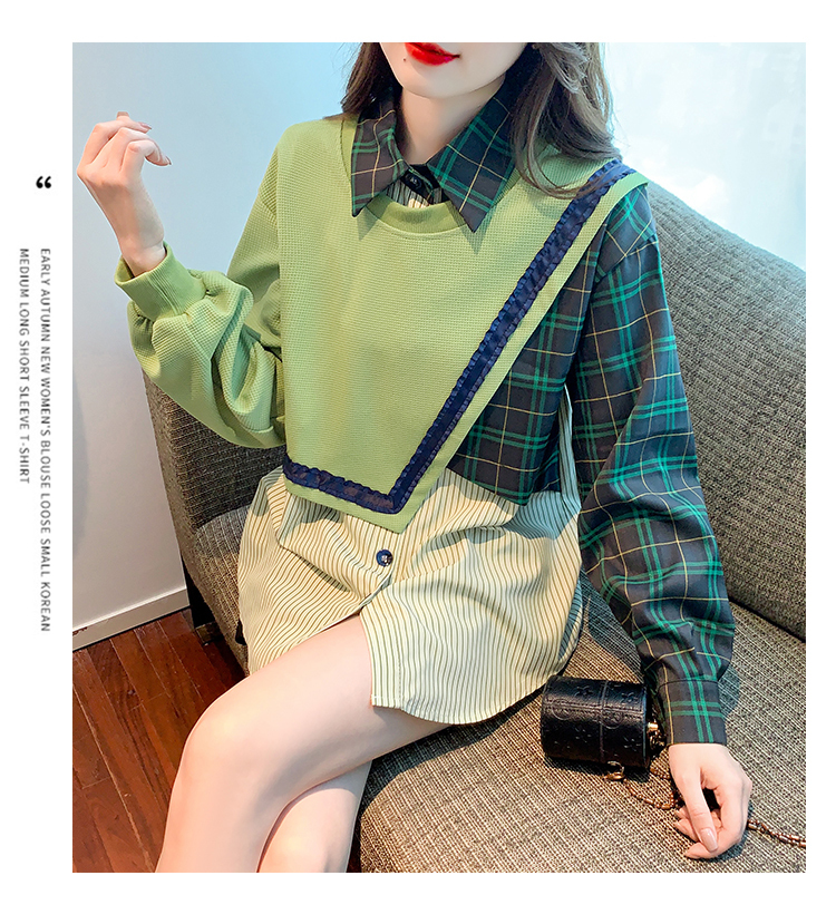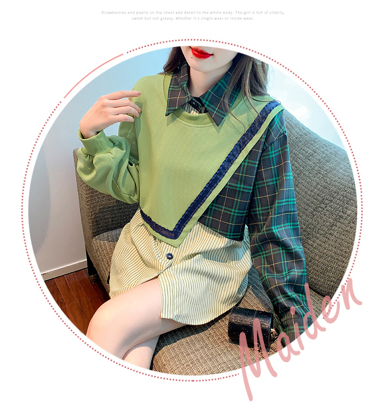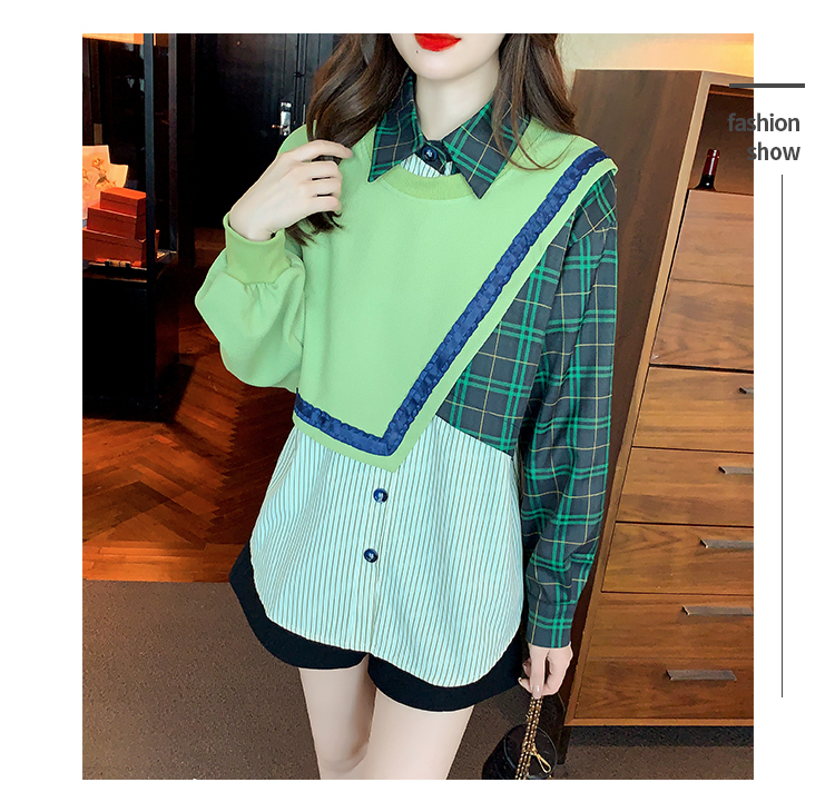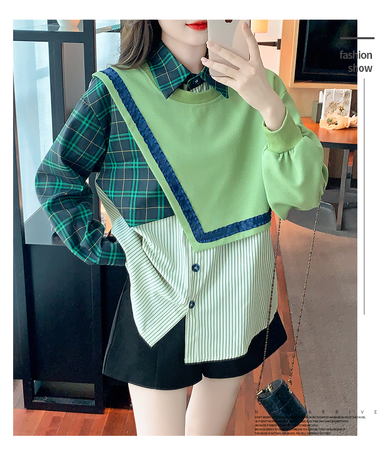 限量特惠|個性翻領拼接格紋假兩件式上衣(11M2137)