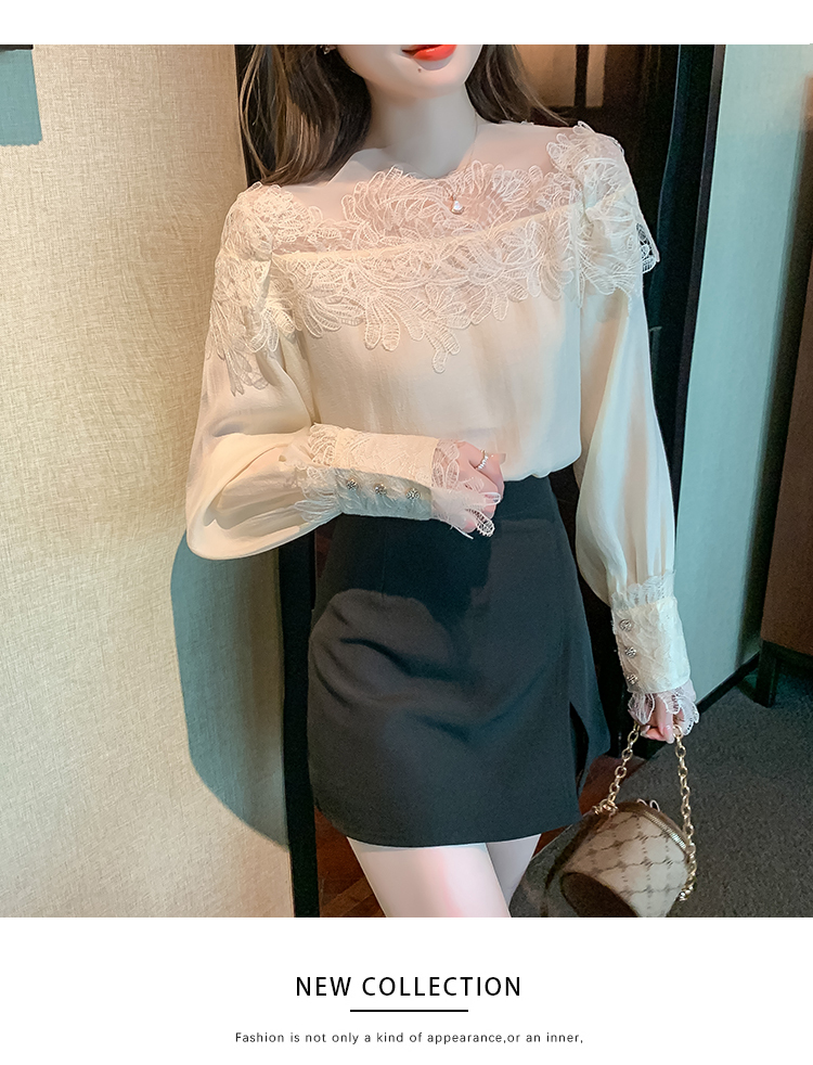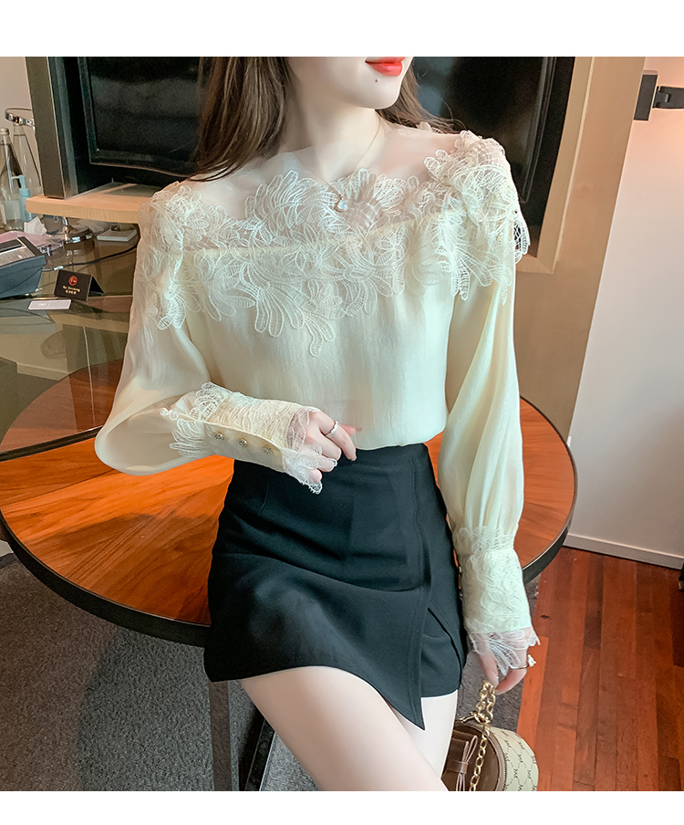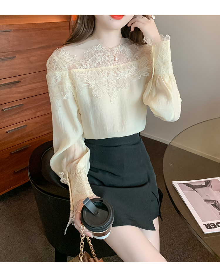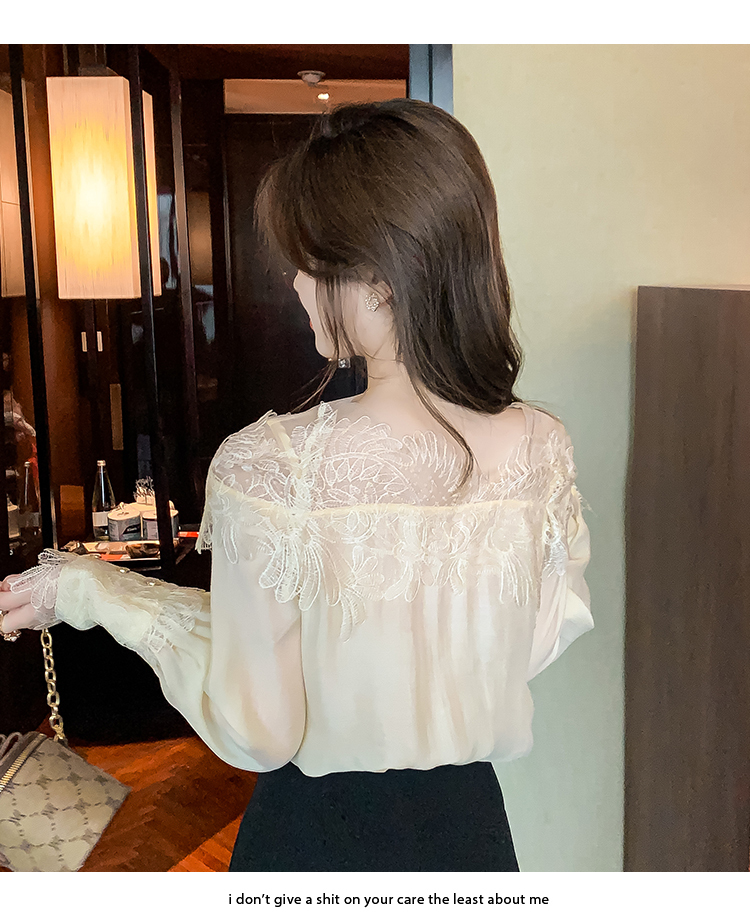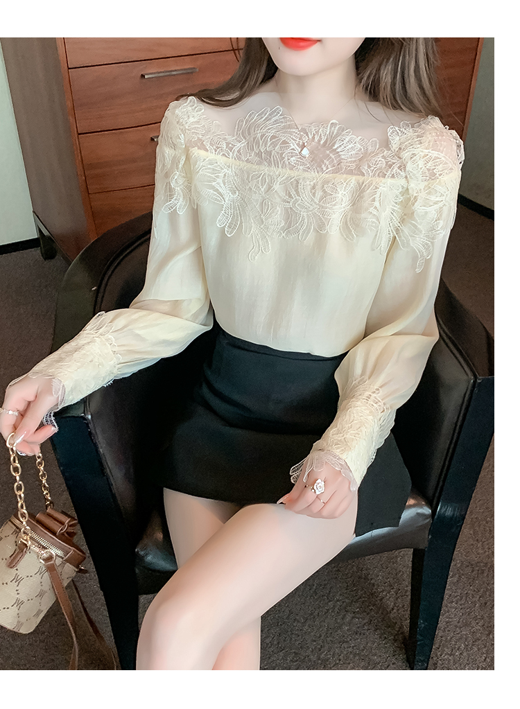 限量特惠|微性感拼接花朵刺繡一字領雪紡衫(11M2144)