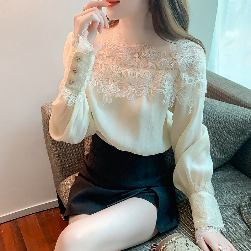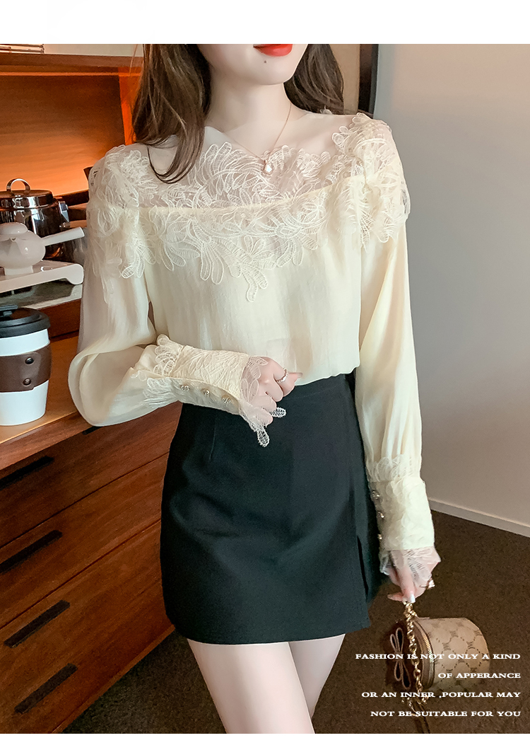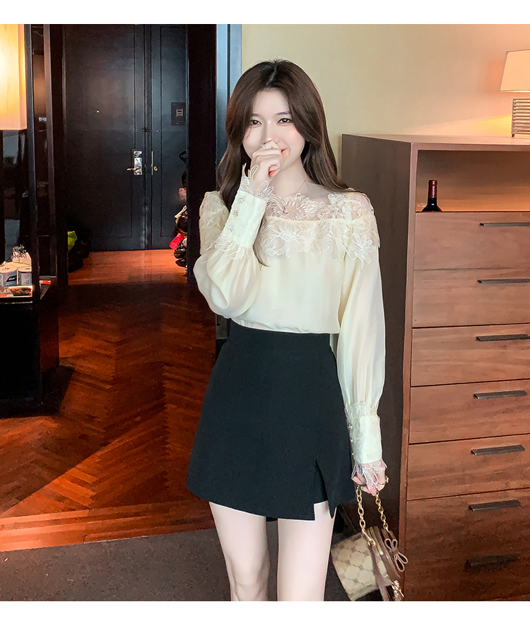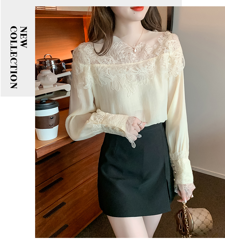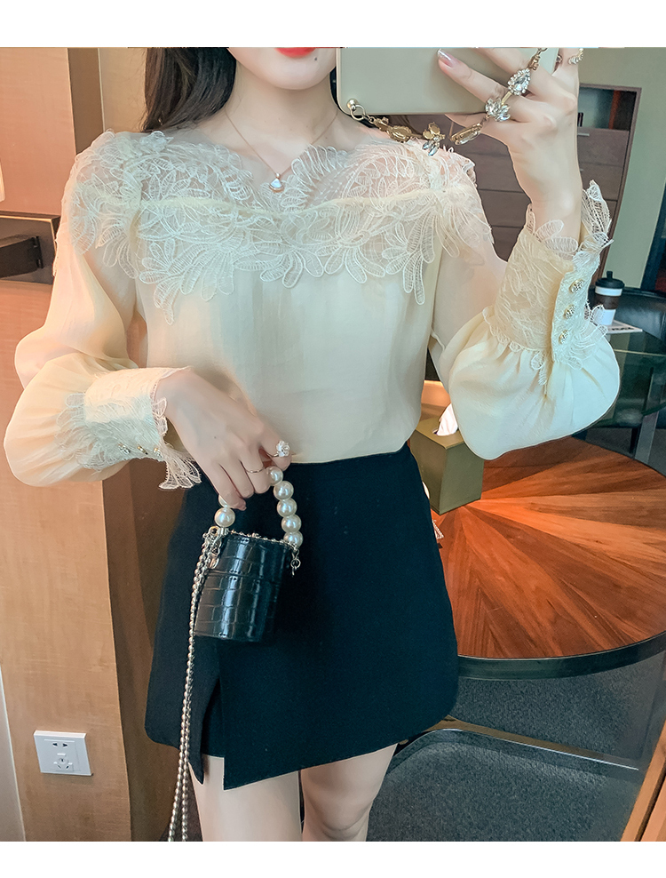 限量特惠|微性感拼接花朵刺繡一字領雪紡衫(11M2144)