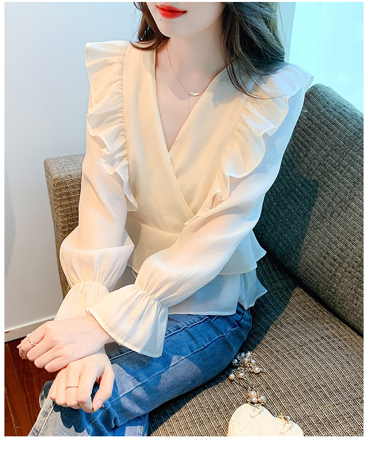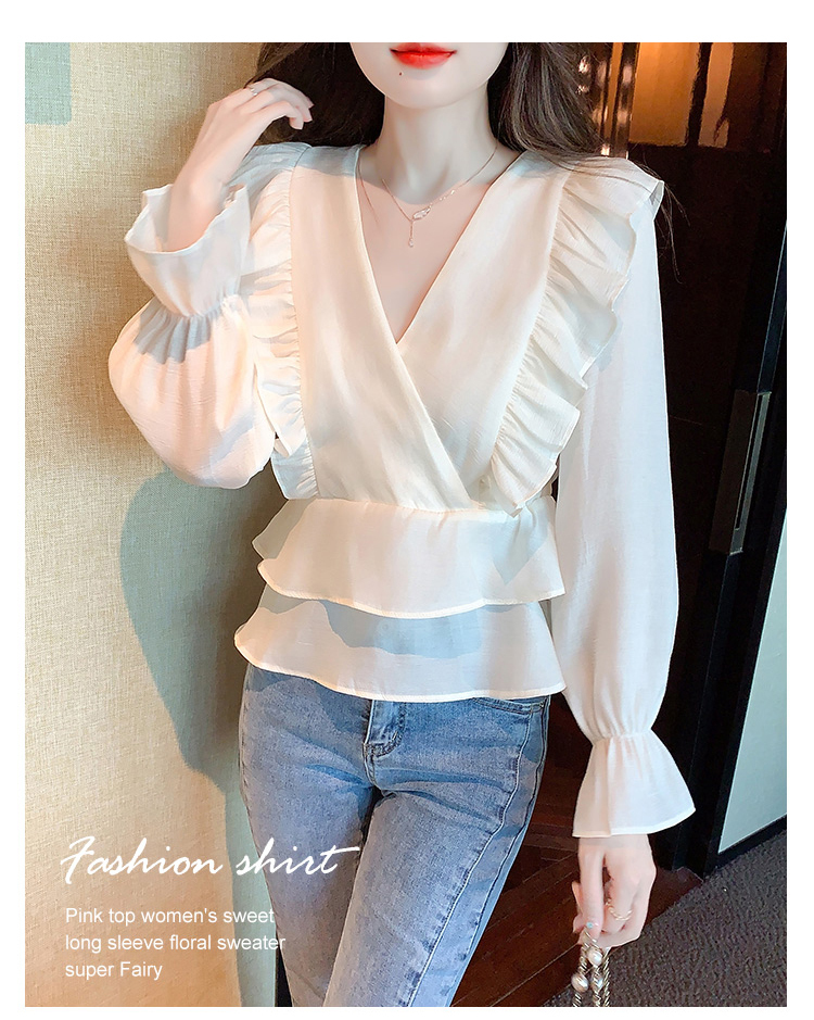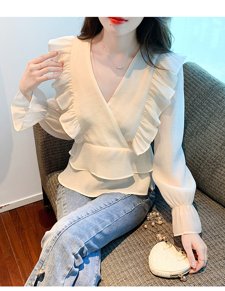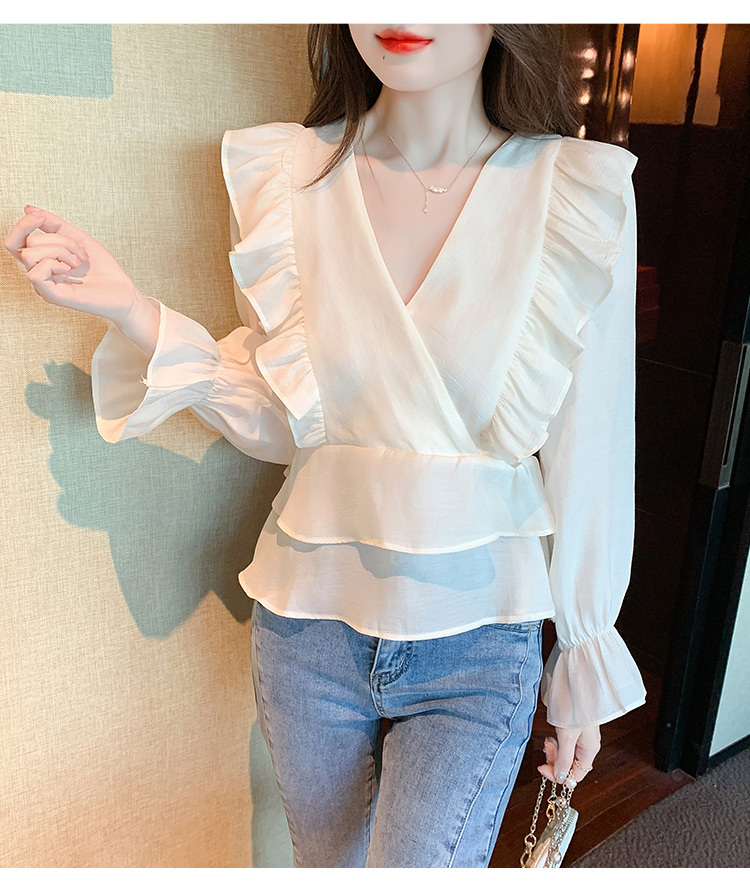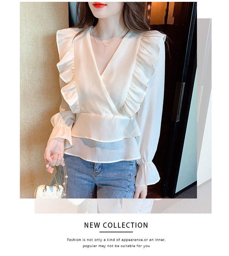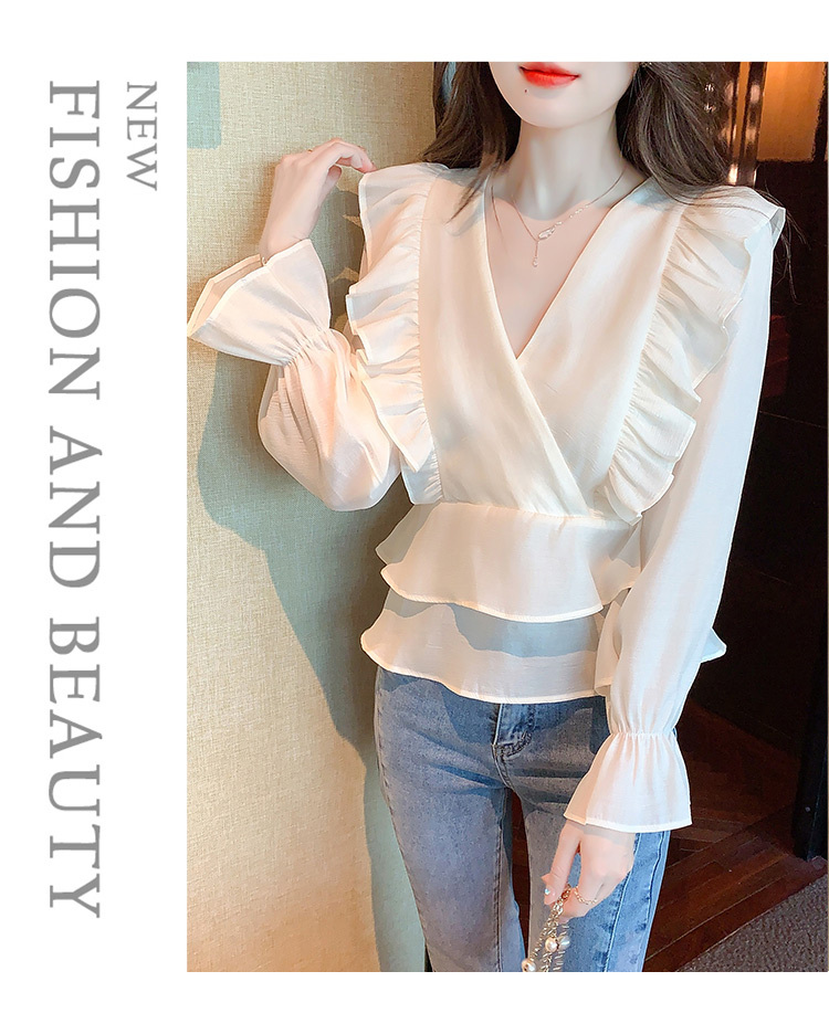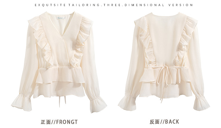 限量特惠│知性荷葉邊收腰修身純色雪紡衫(11M2156)