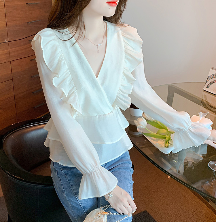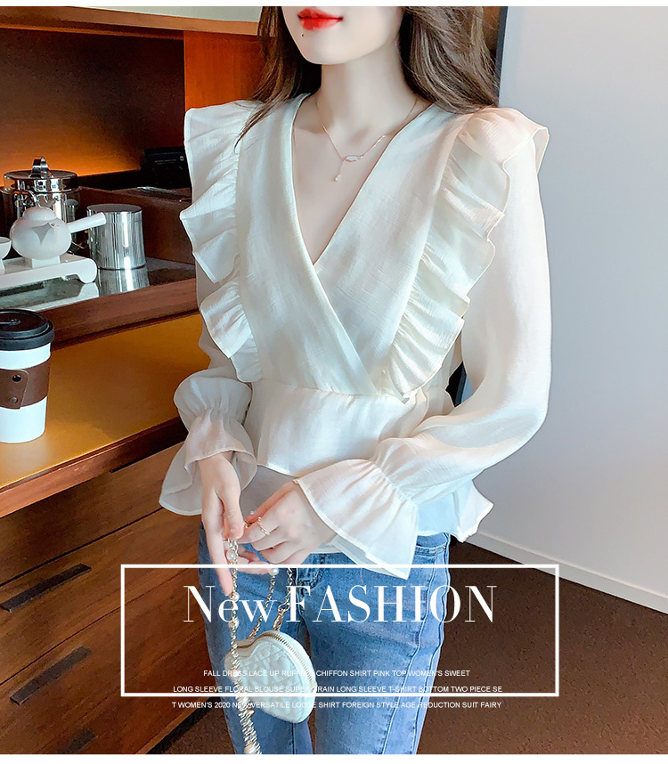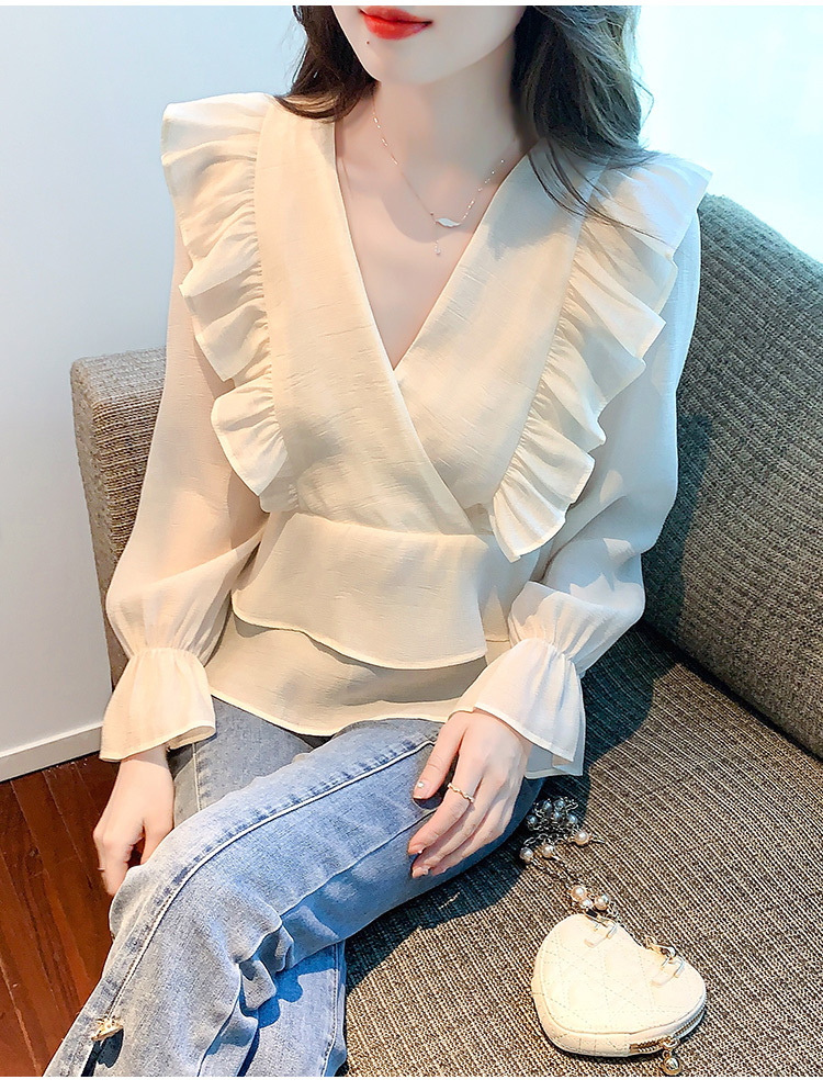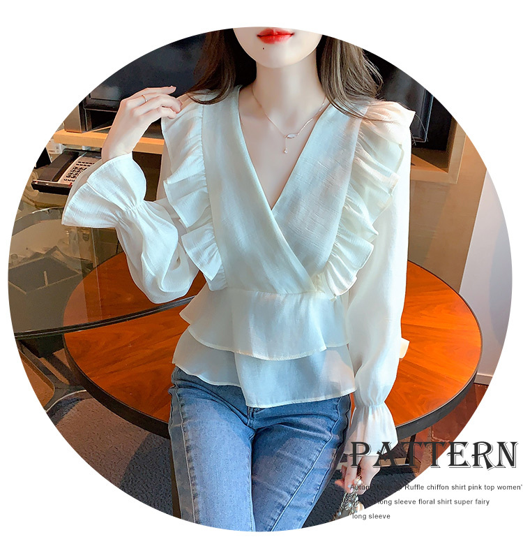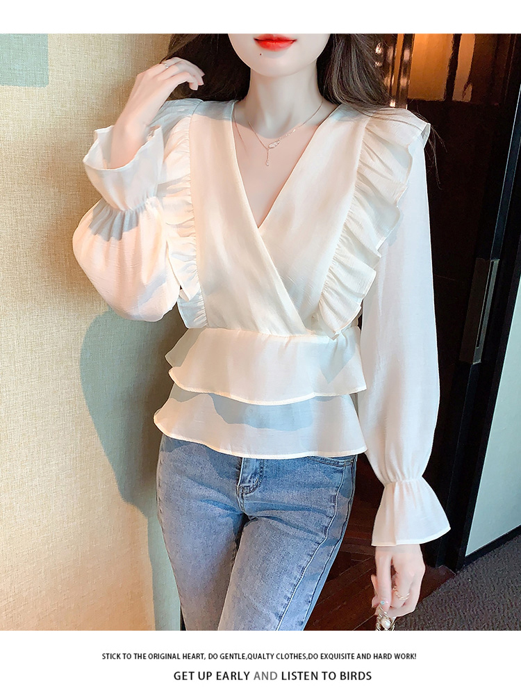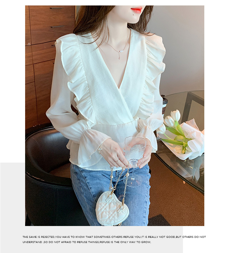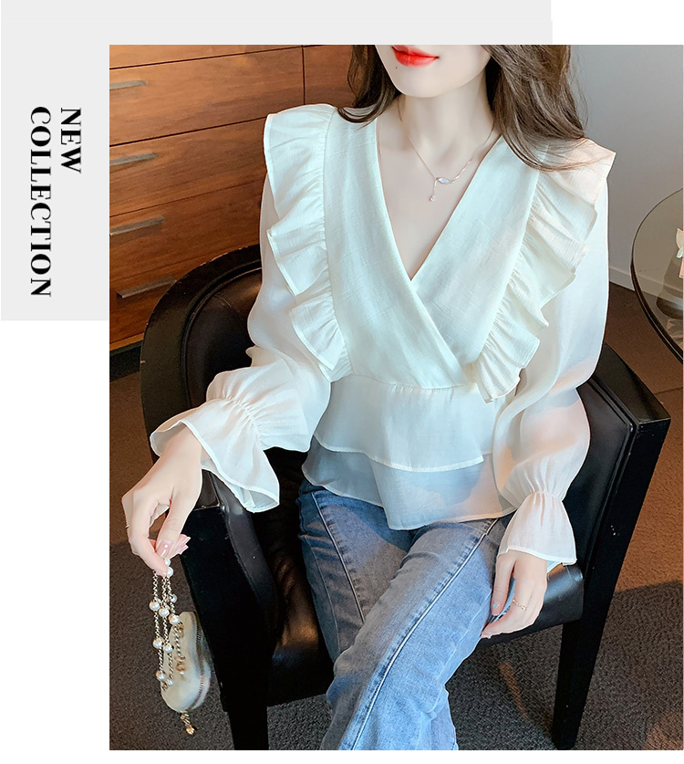 限量特惠│知性荷葉邊收腰修身純色雪紡衫(11M2156)