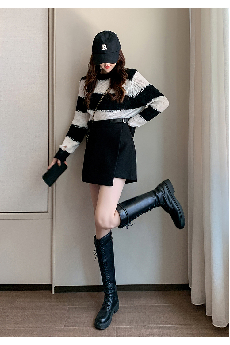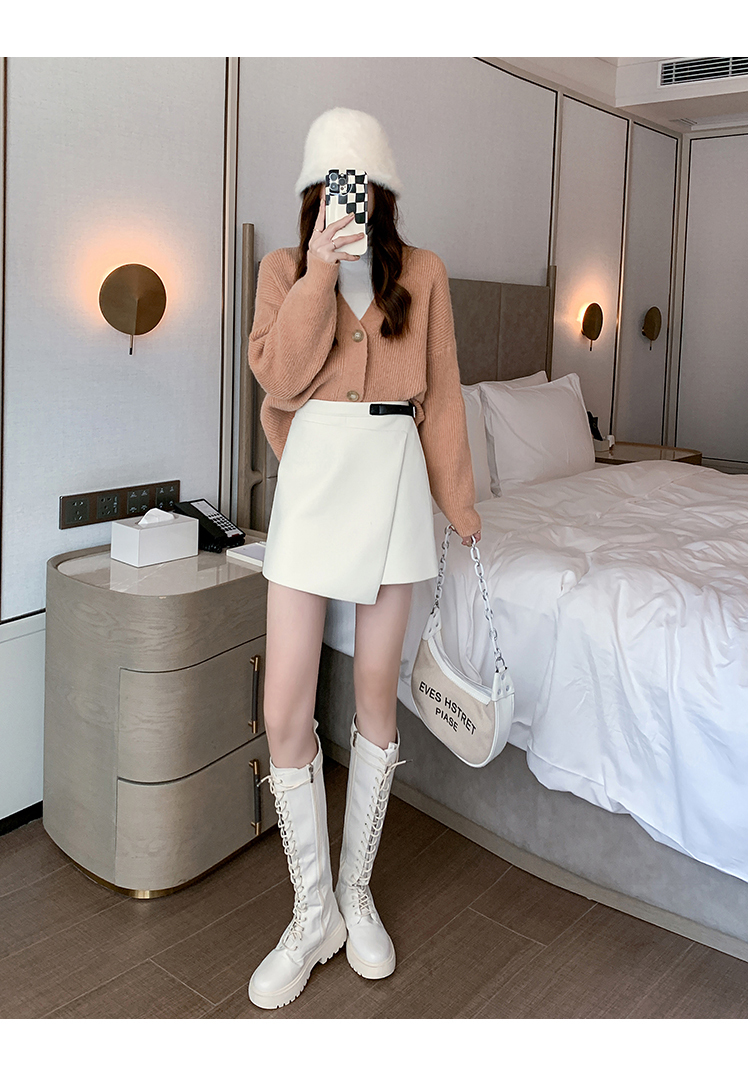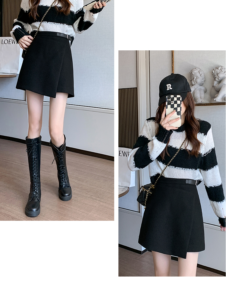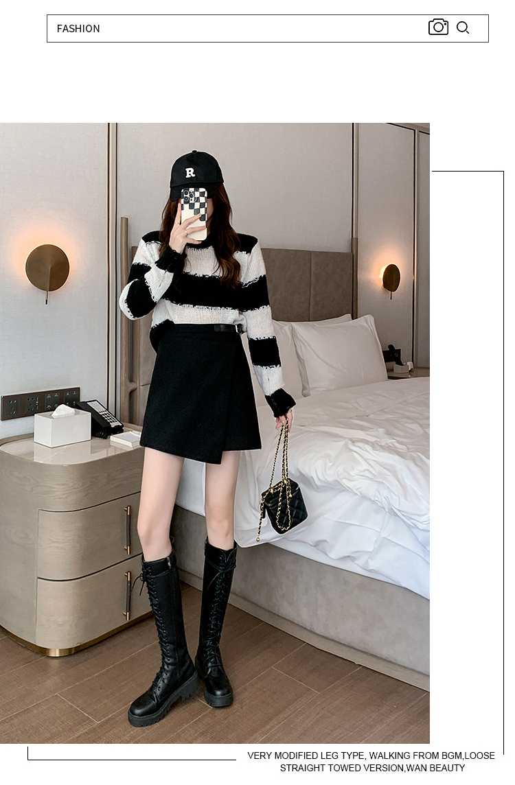 限量特惠|個性拼接皮釦不規則假兩件式闊腿「褲」-3色(11M2196)