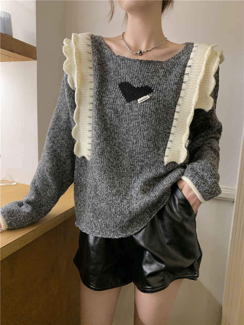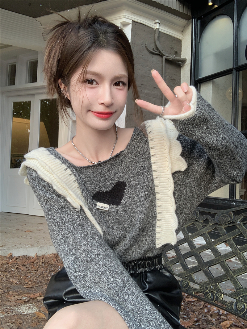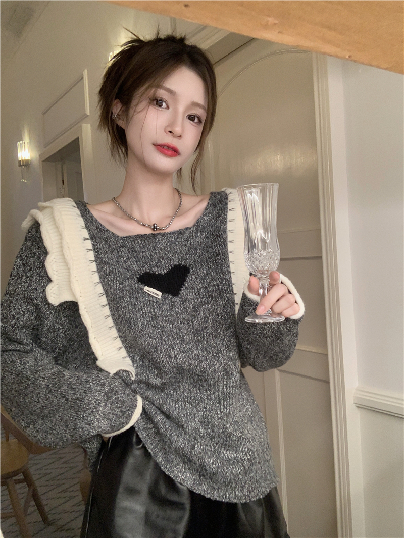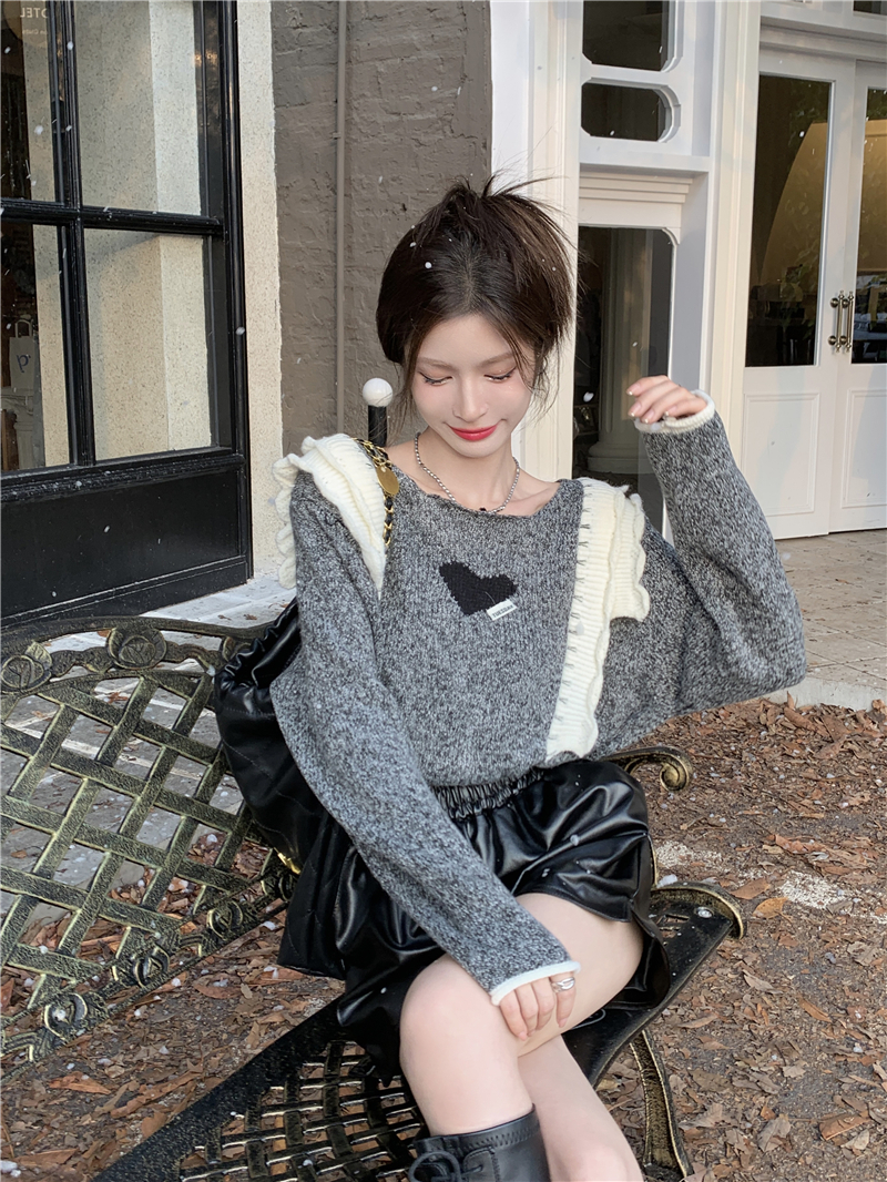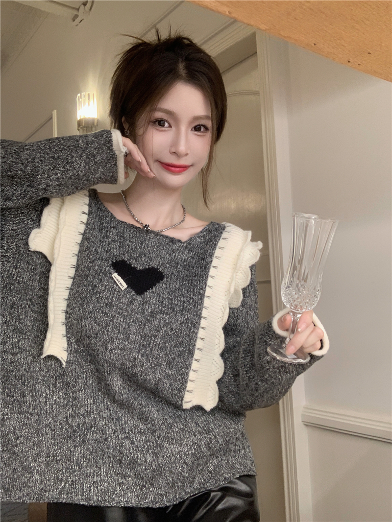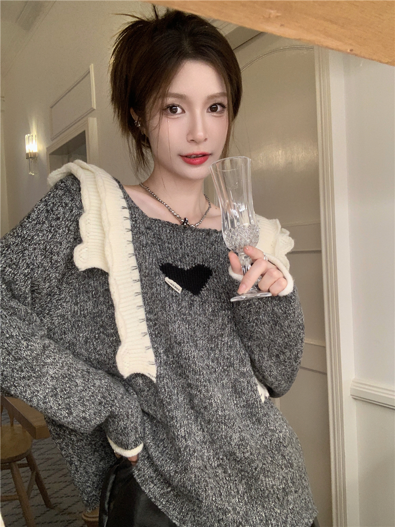 限量特惠|減齡撞色拼接愛心緹花針織衫(11M2247)