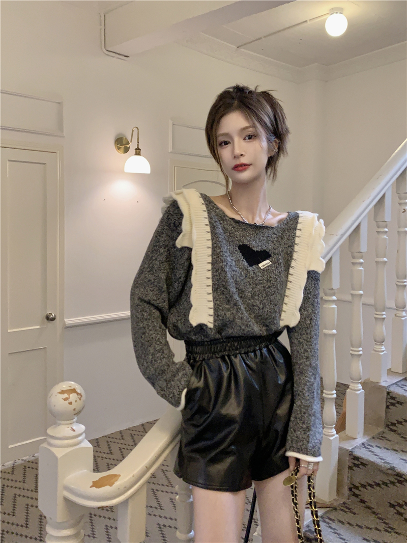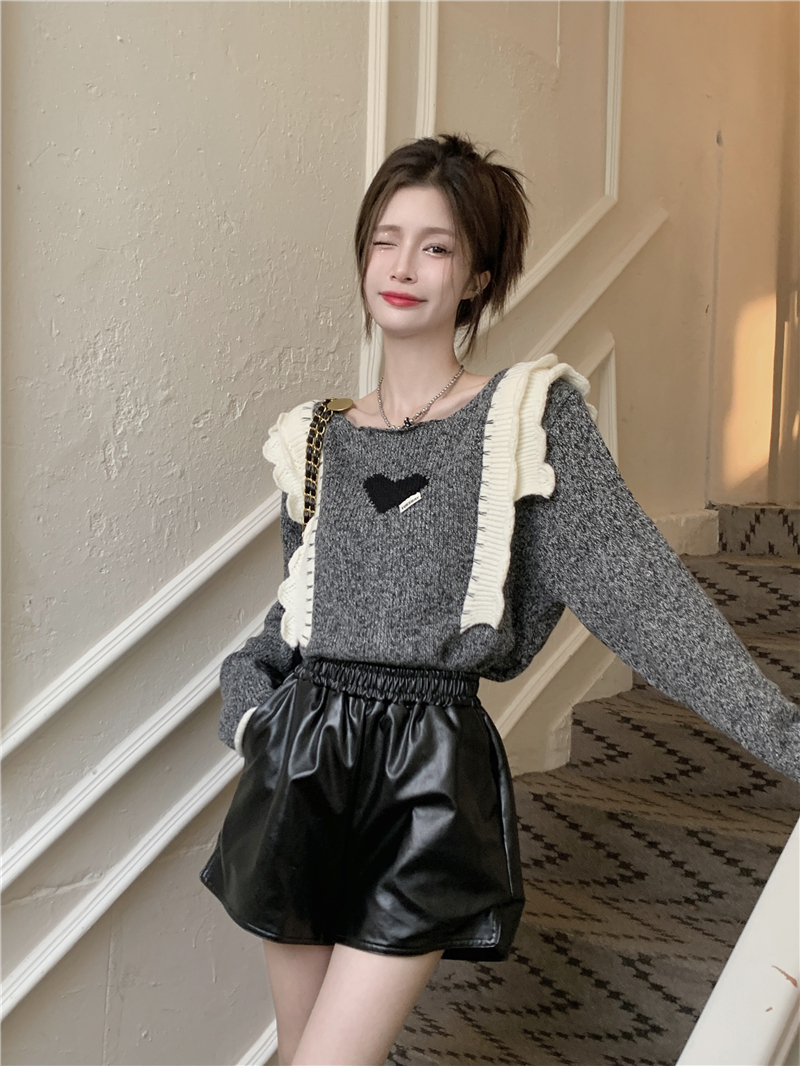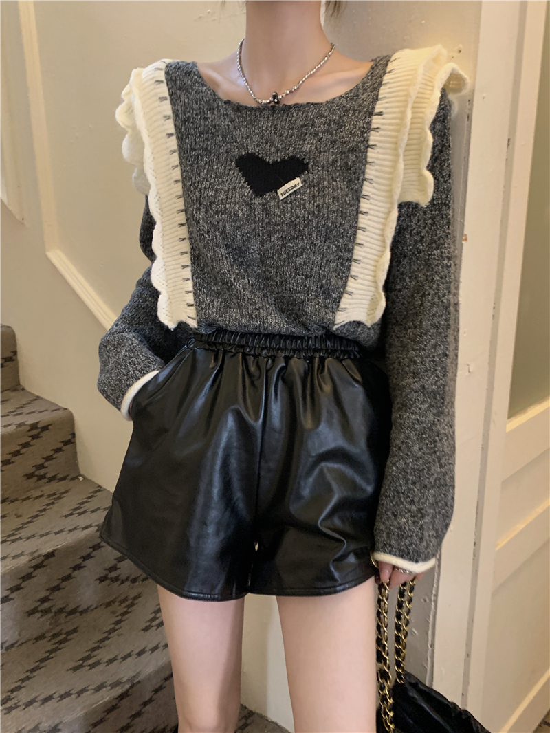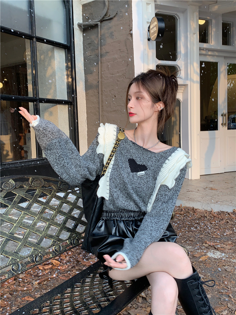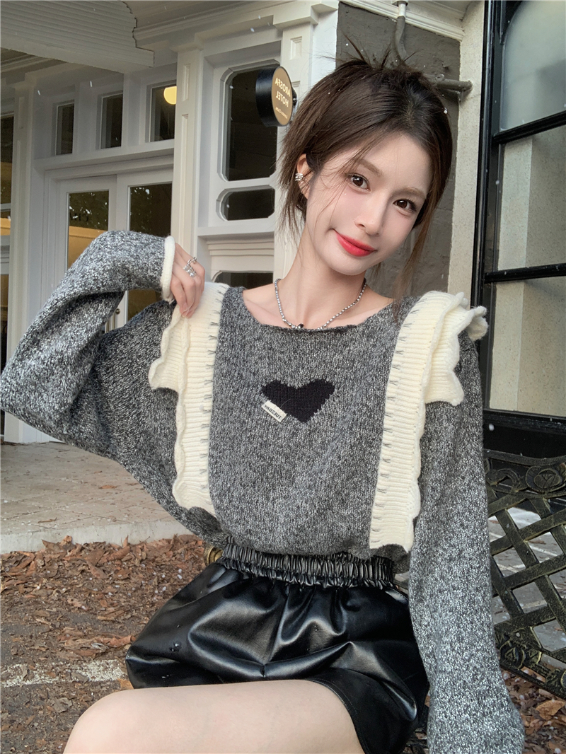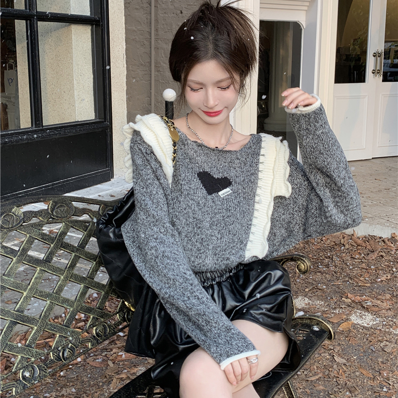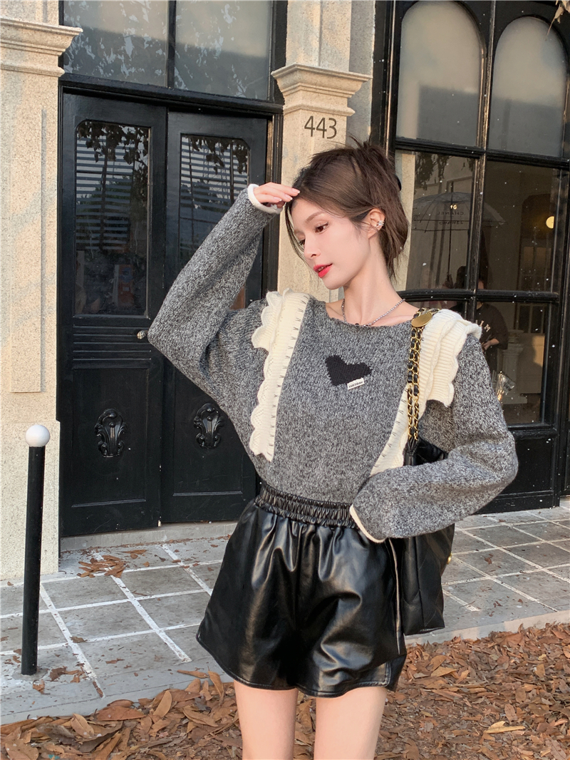 限量特惠|減齡撞色拼接愛心緹花針織衫(11M2247)