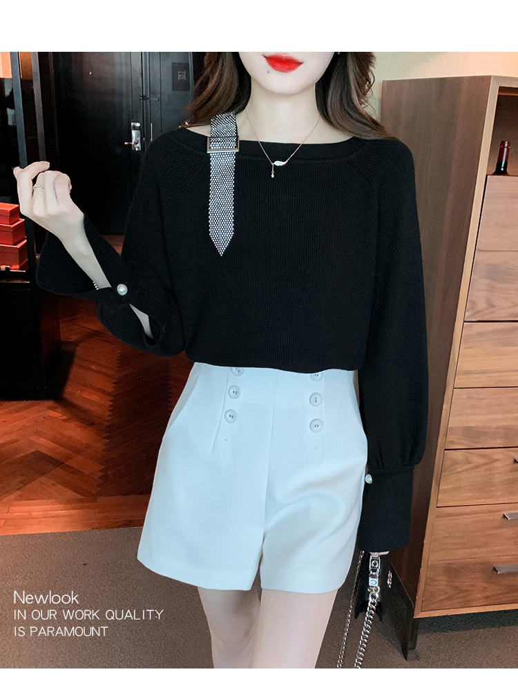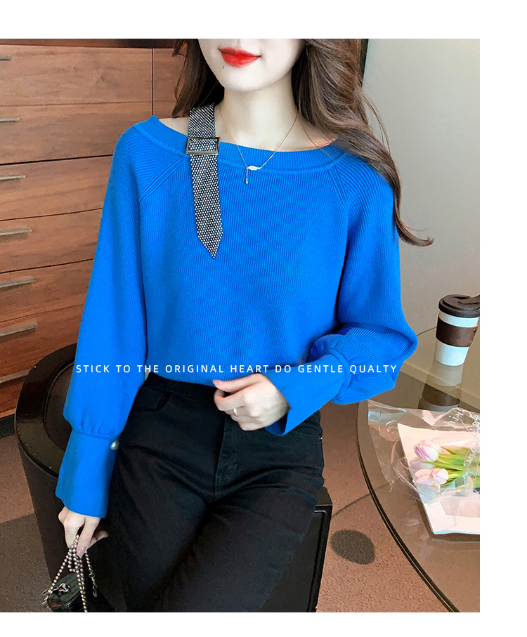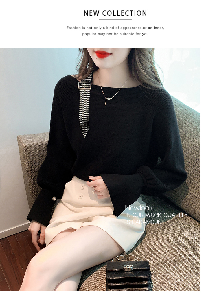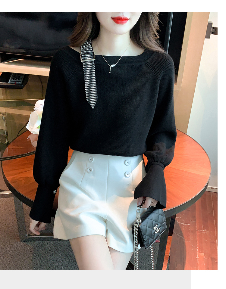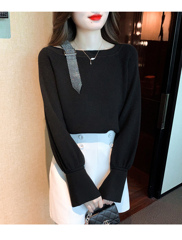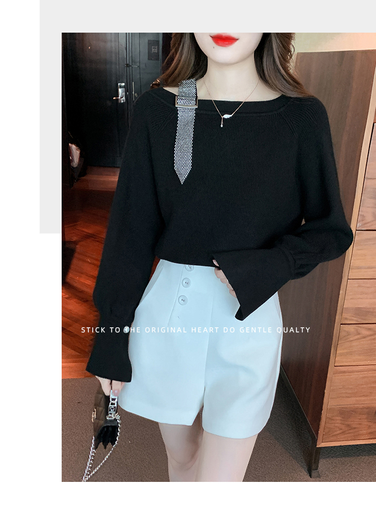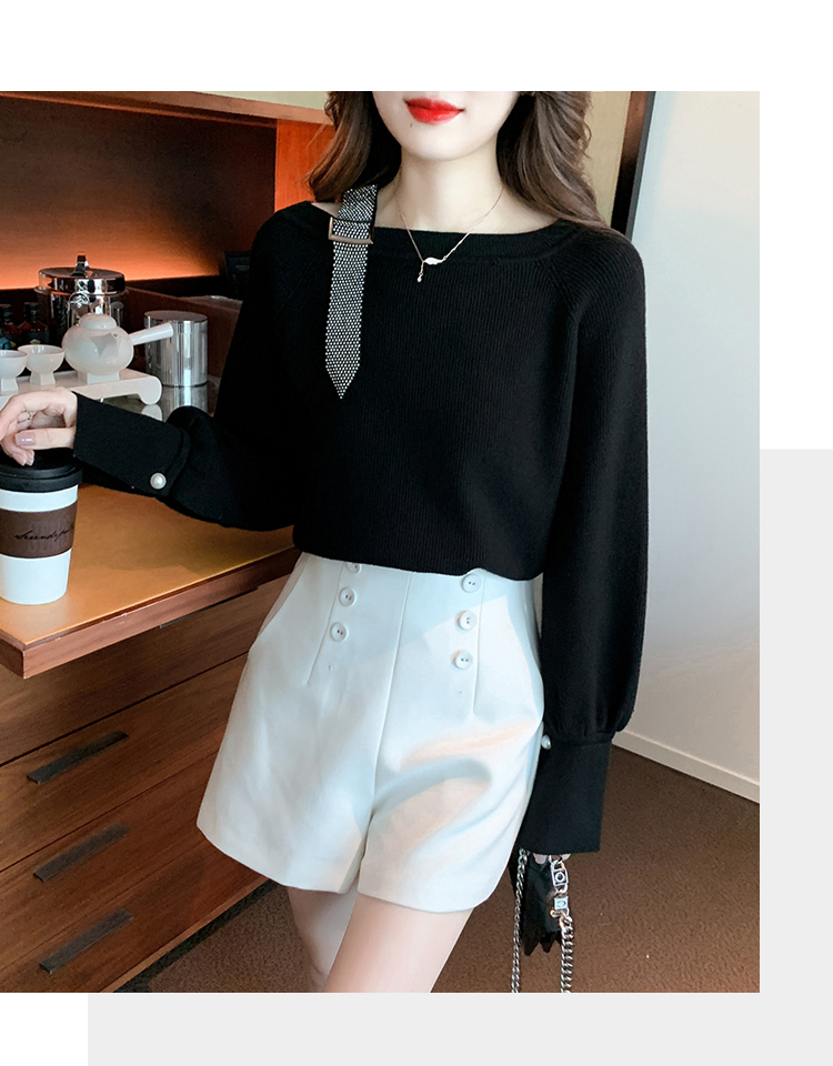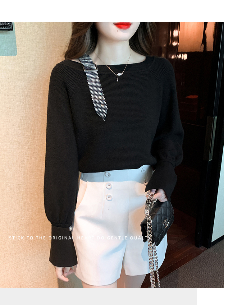 限量特惠|甜美舒適斜肩鑲鑽吊帶針織衫-2色(11M2304)