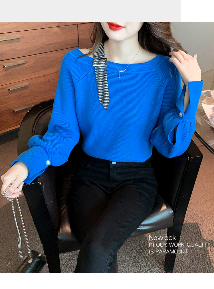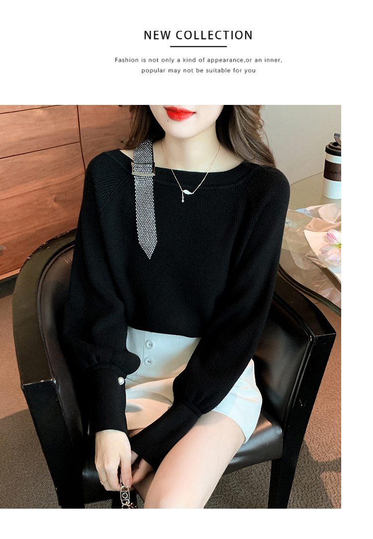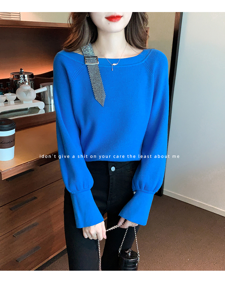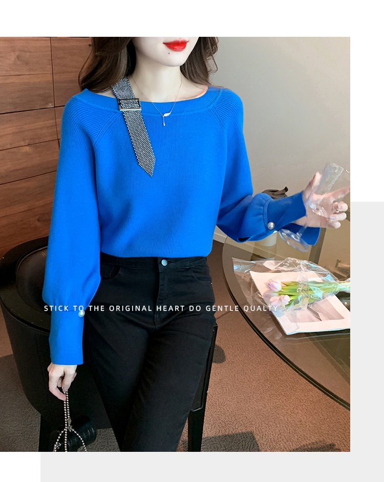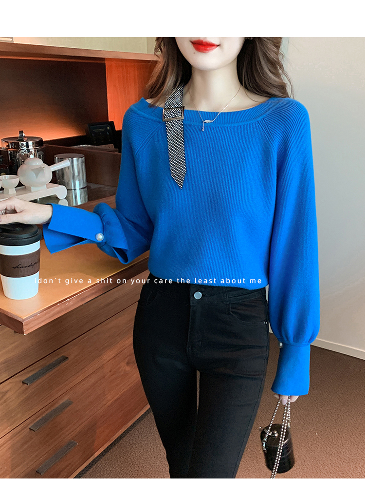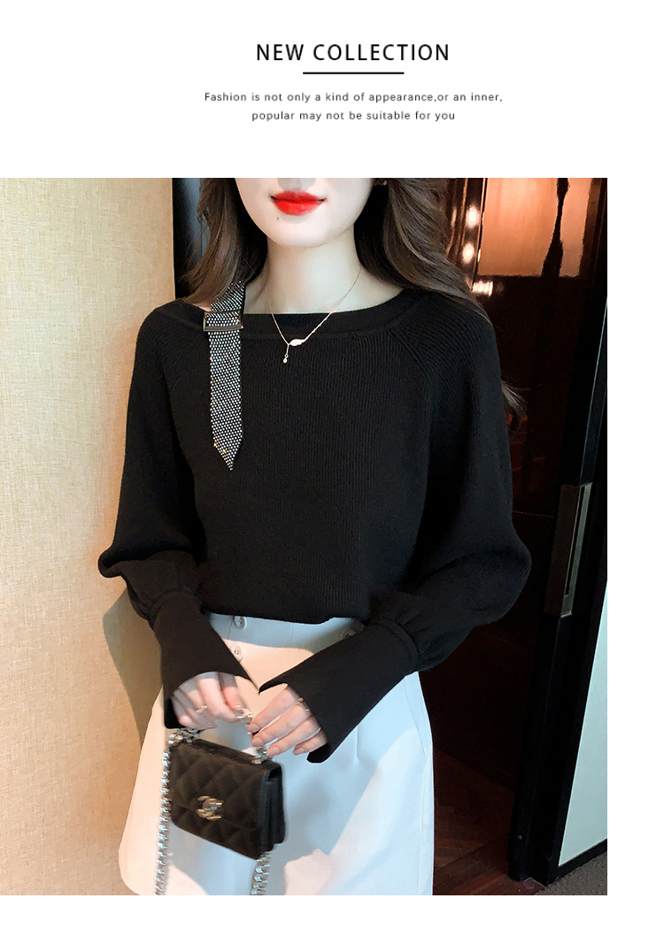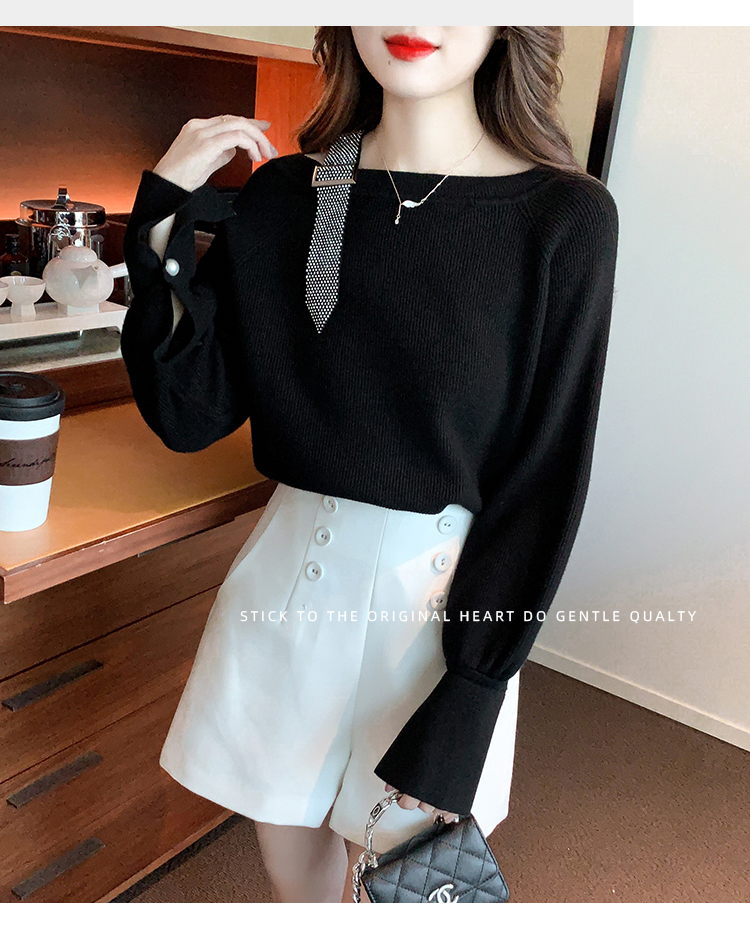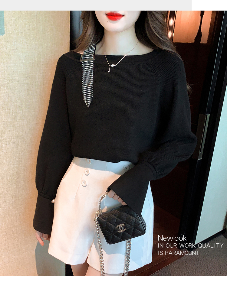 限量特惠|甜美舒適斜肩鑲鑽吊帶針織衫-2色(11M2304)