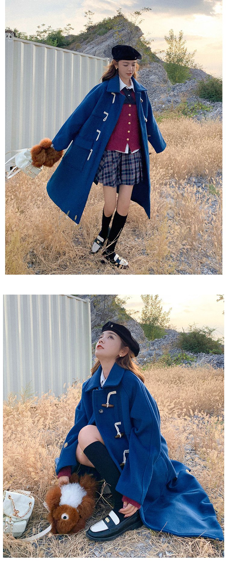 獨家訂製│韓系學院風牛角扣加厚毛呢外套(11TA2122)