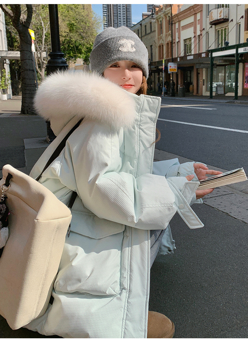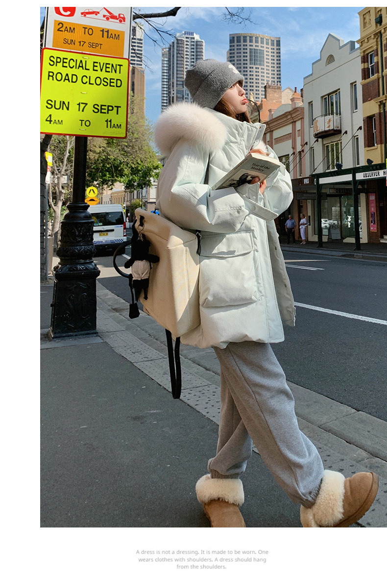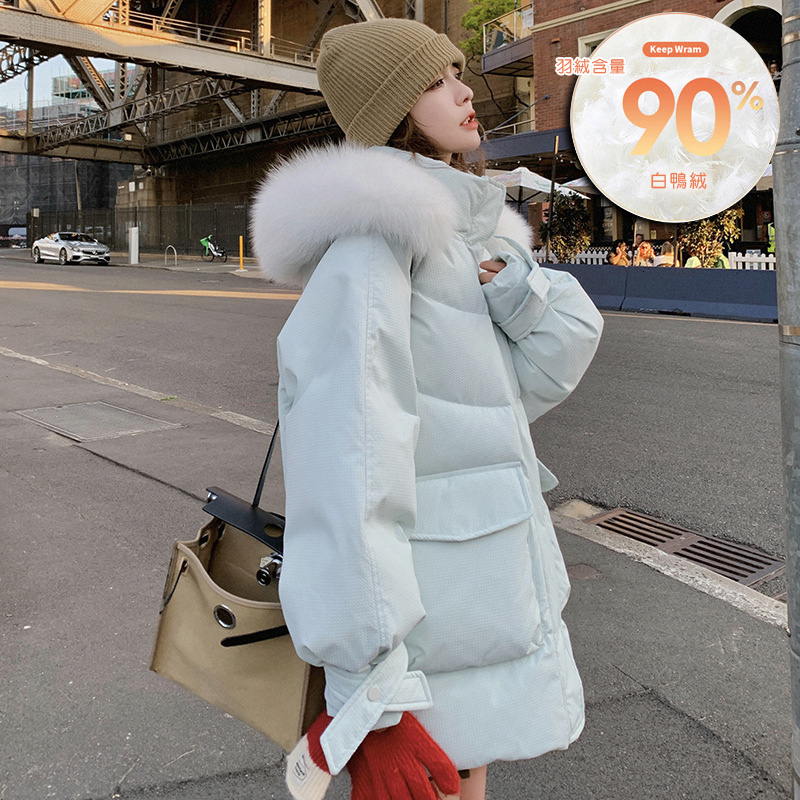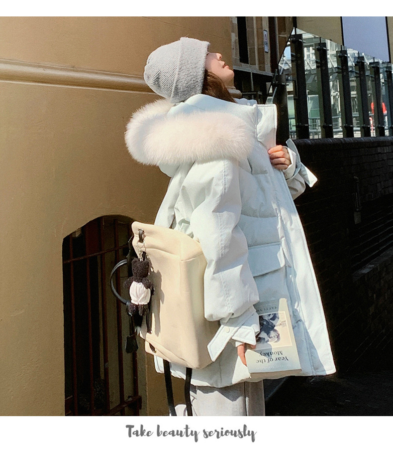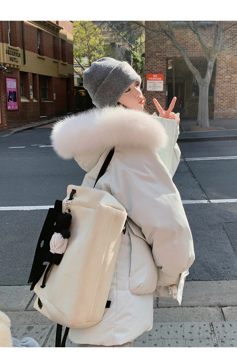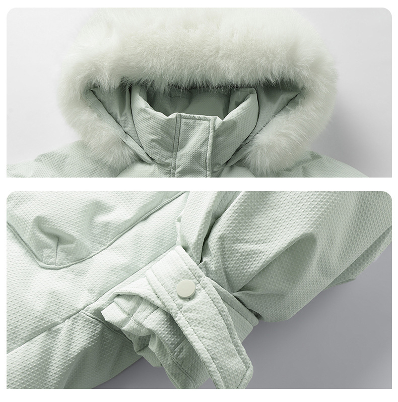 🔺面料:外層滌綸+內層填充:90%白鴨絨+仿貉子毛領(可拆)