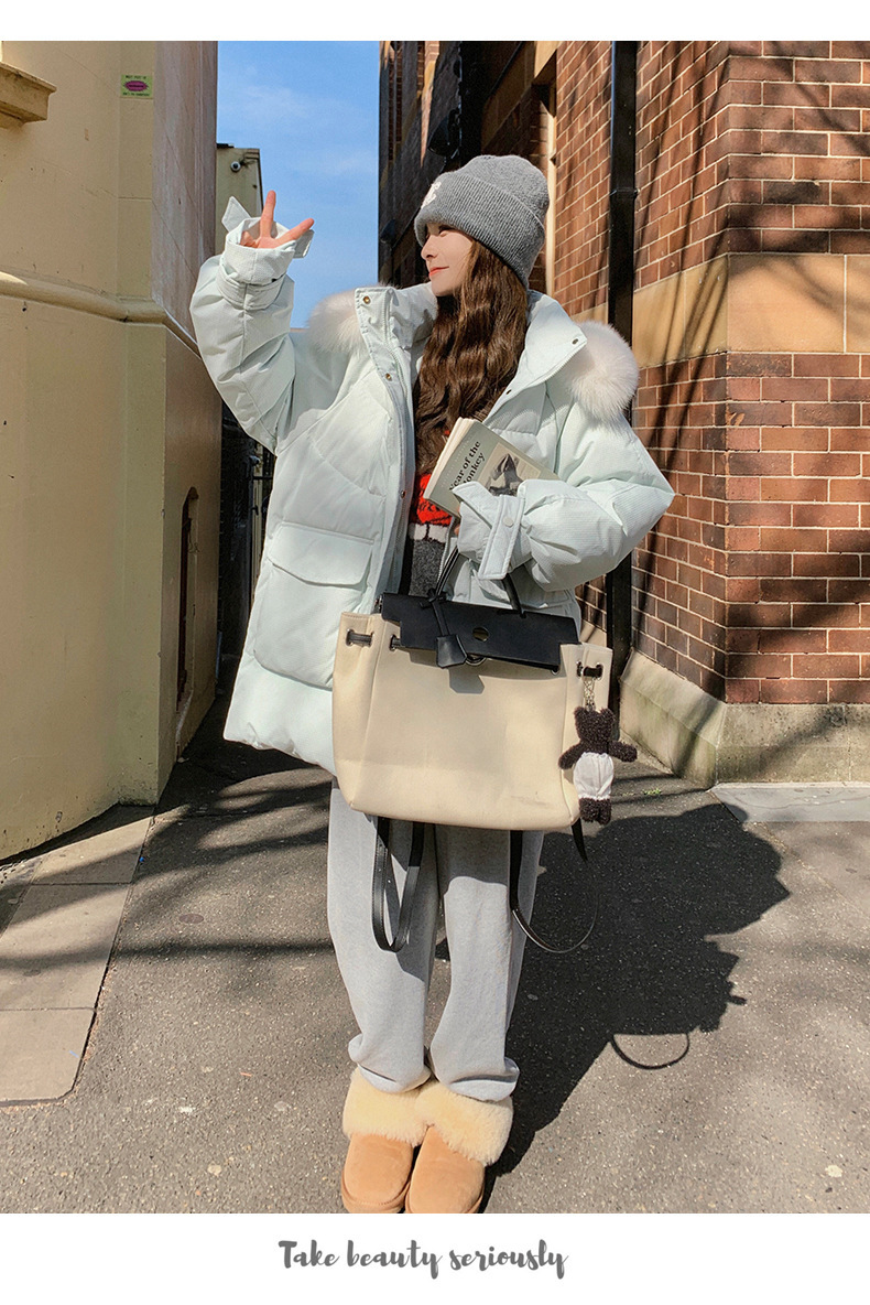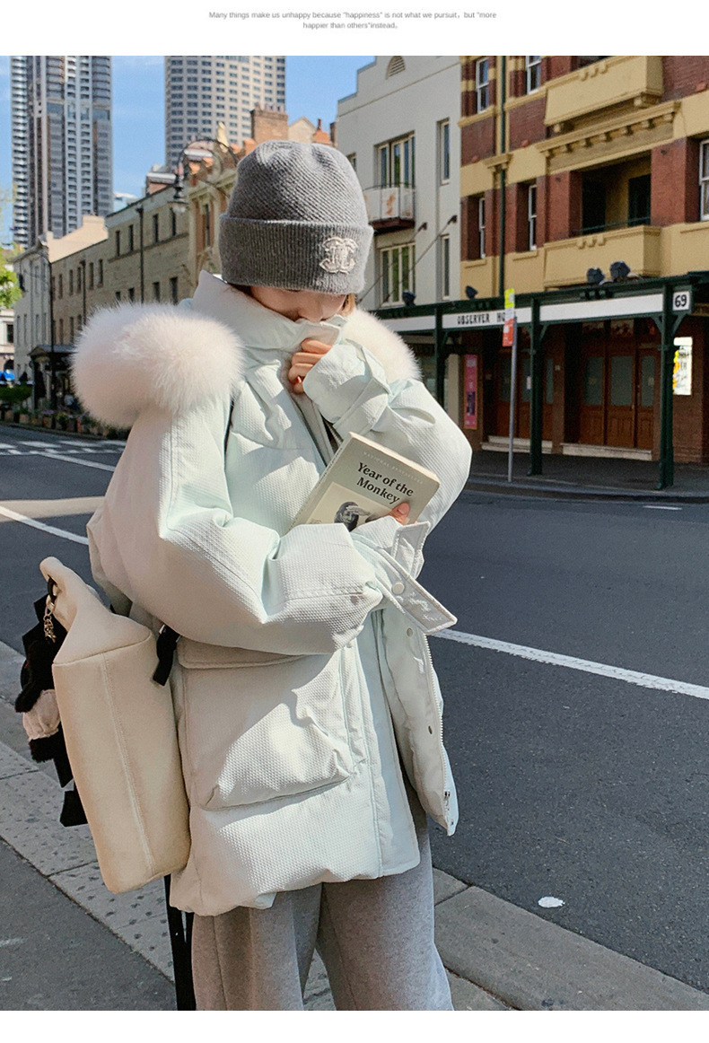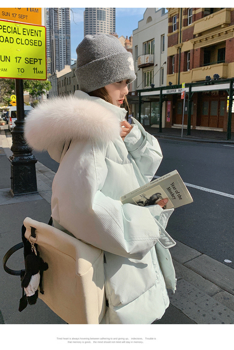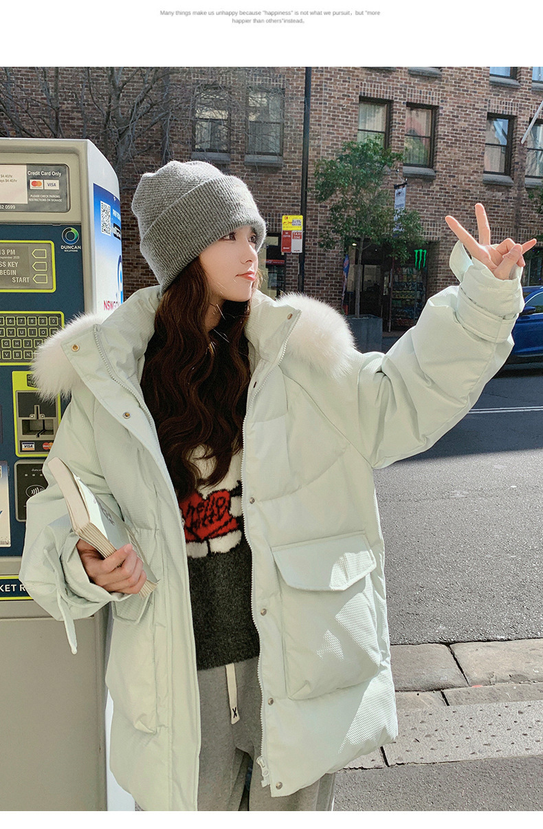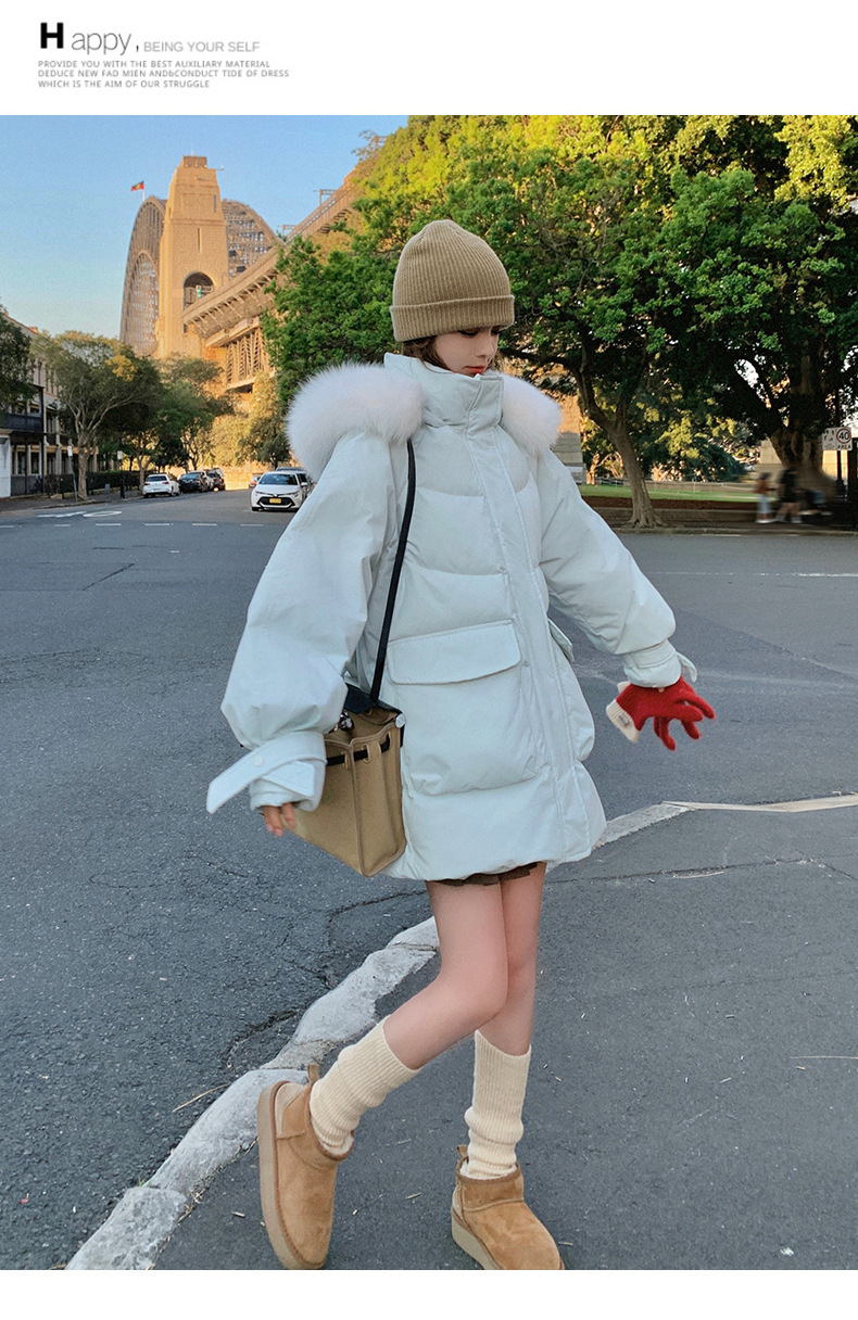 🔺面料:外層滌綸+內層填充:90%白鴨絨+仿貉子毛領(可拆)