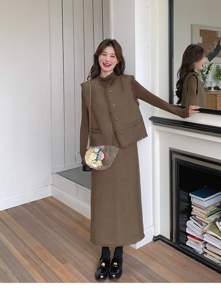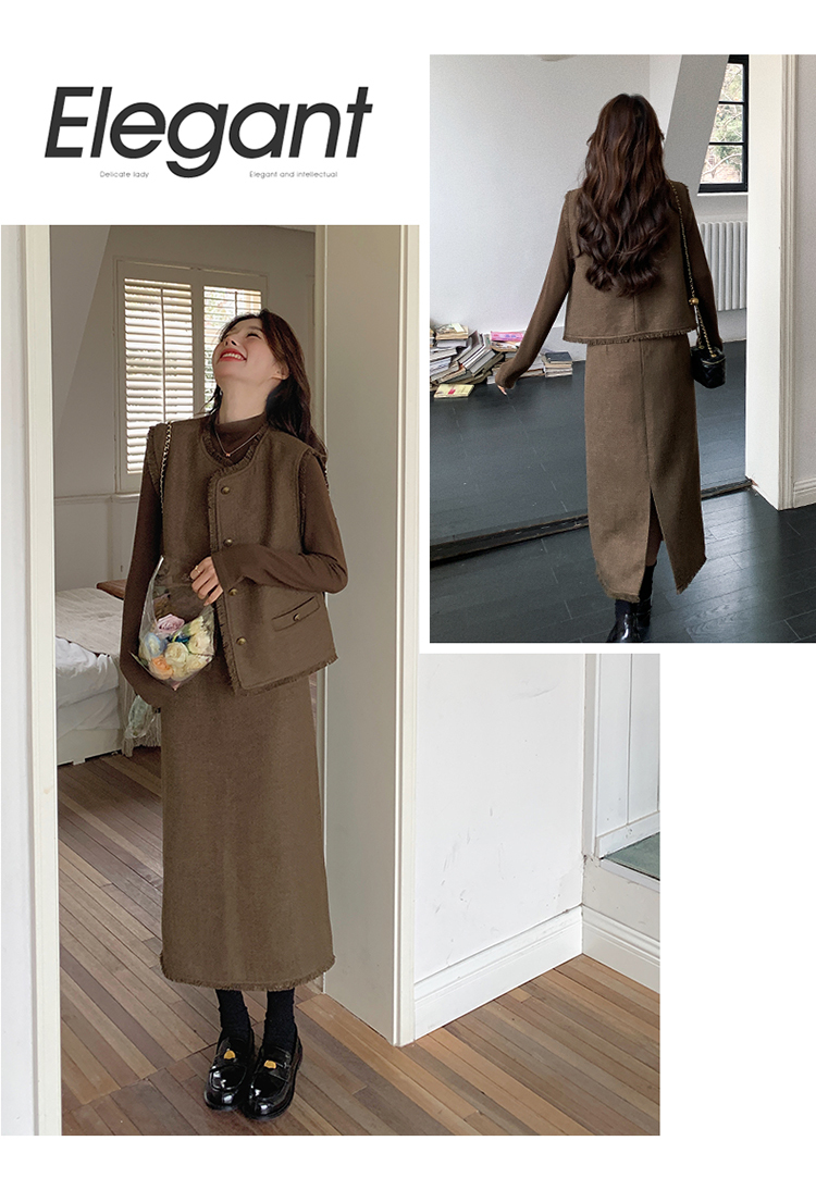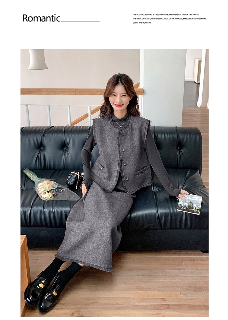 獨家訂製│3件式2色 韓系氣質感背心+上衣+A字裙(12H7275)