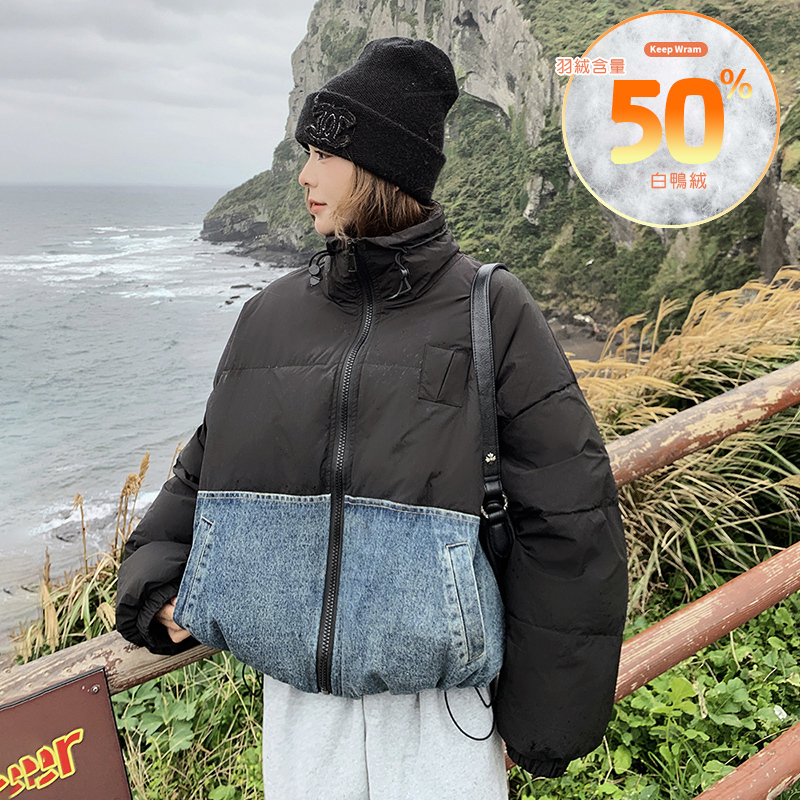 🔺面料:外層滌綸+牛仔+內層填充:50%白鴨絨
