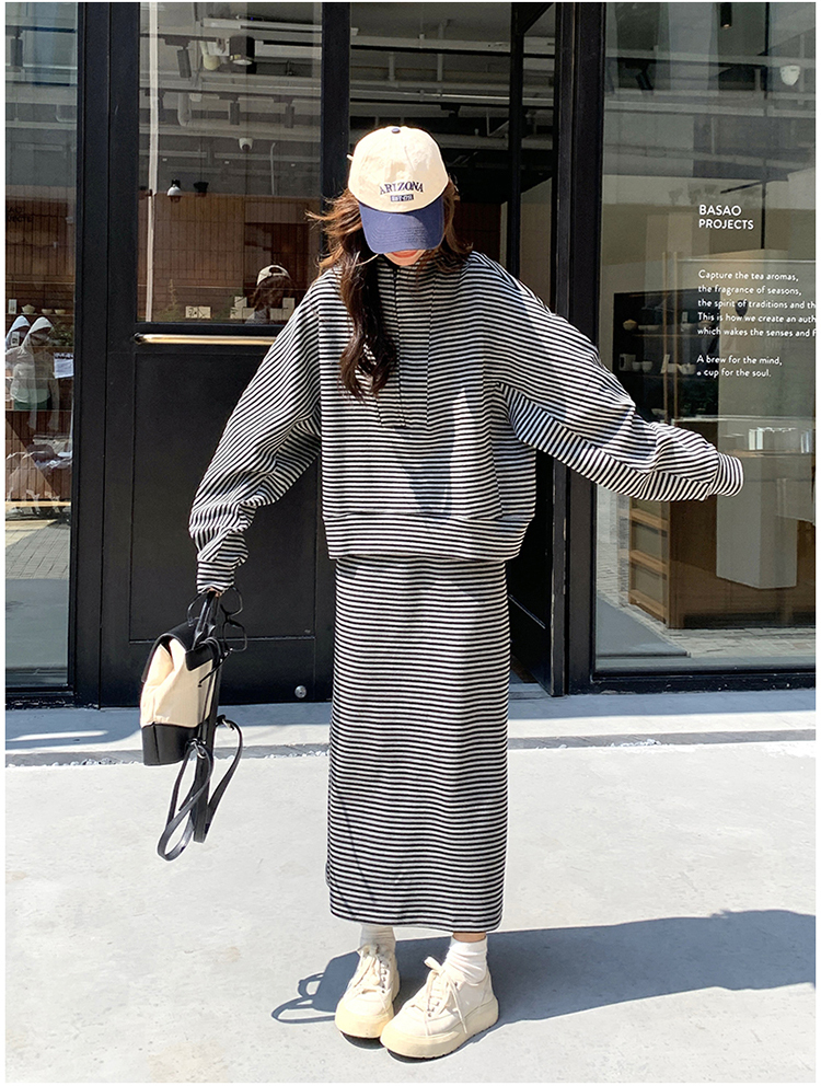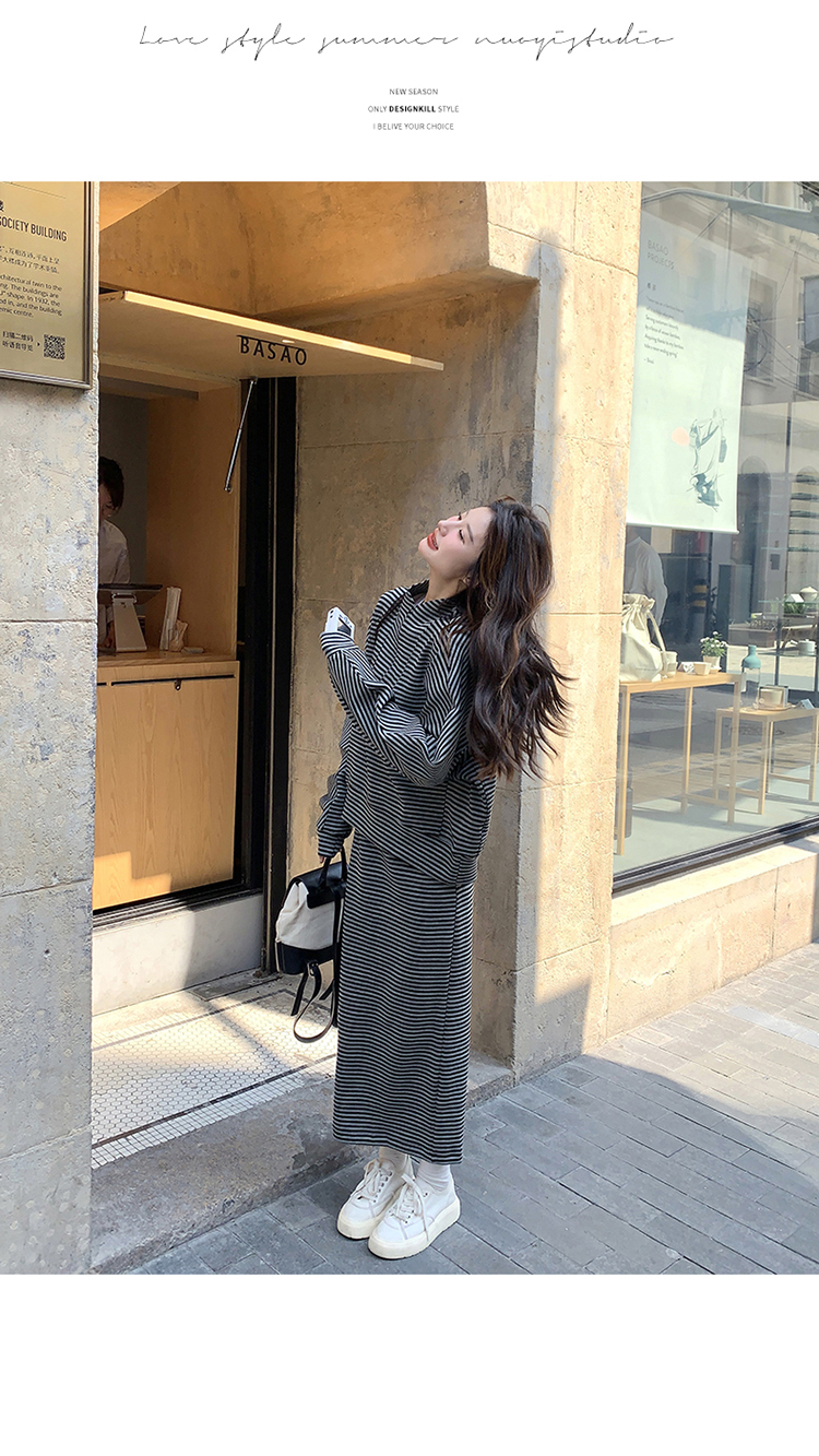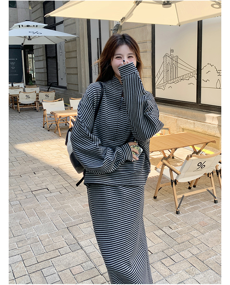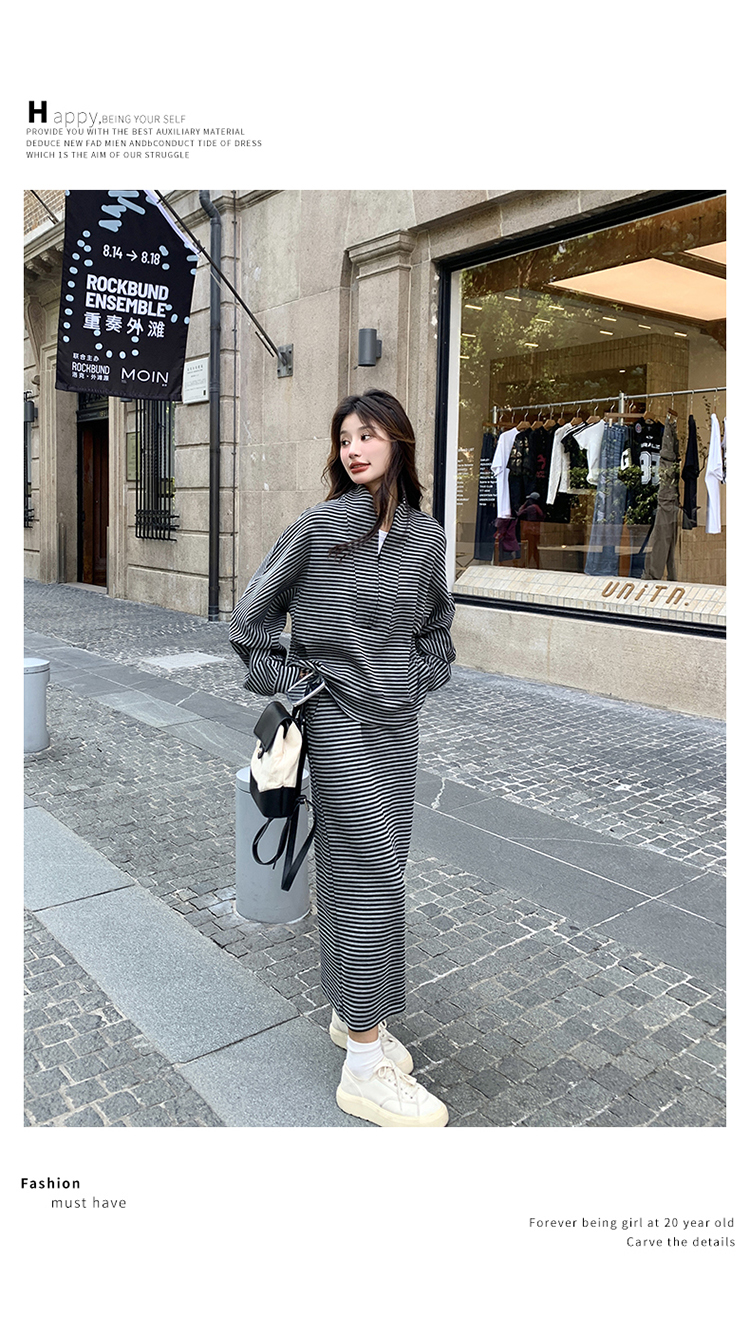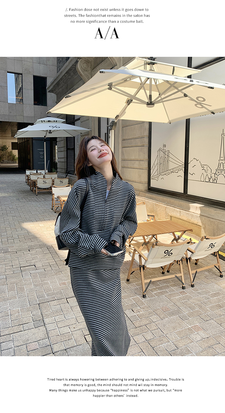 獨家訂製│2件式 韓系休閒感條紋上衣+A字裙(12H7332)