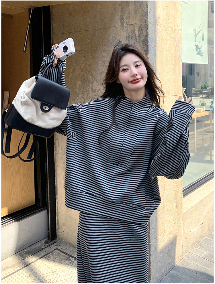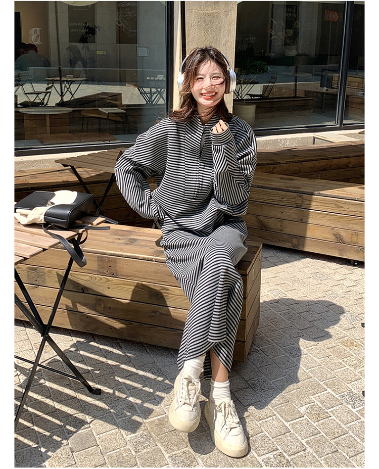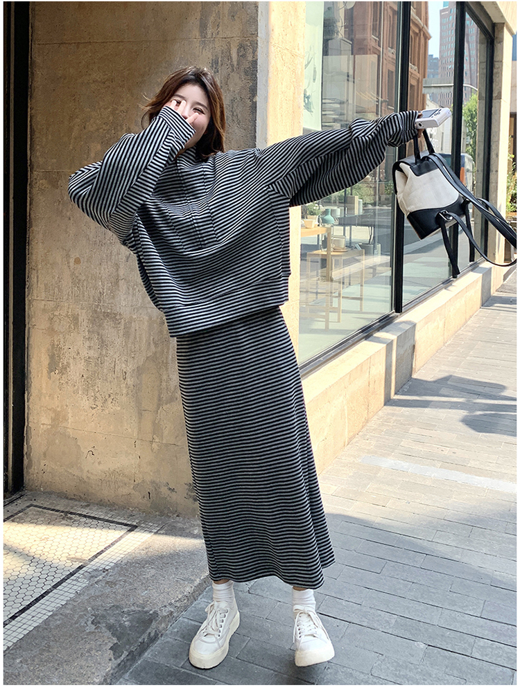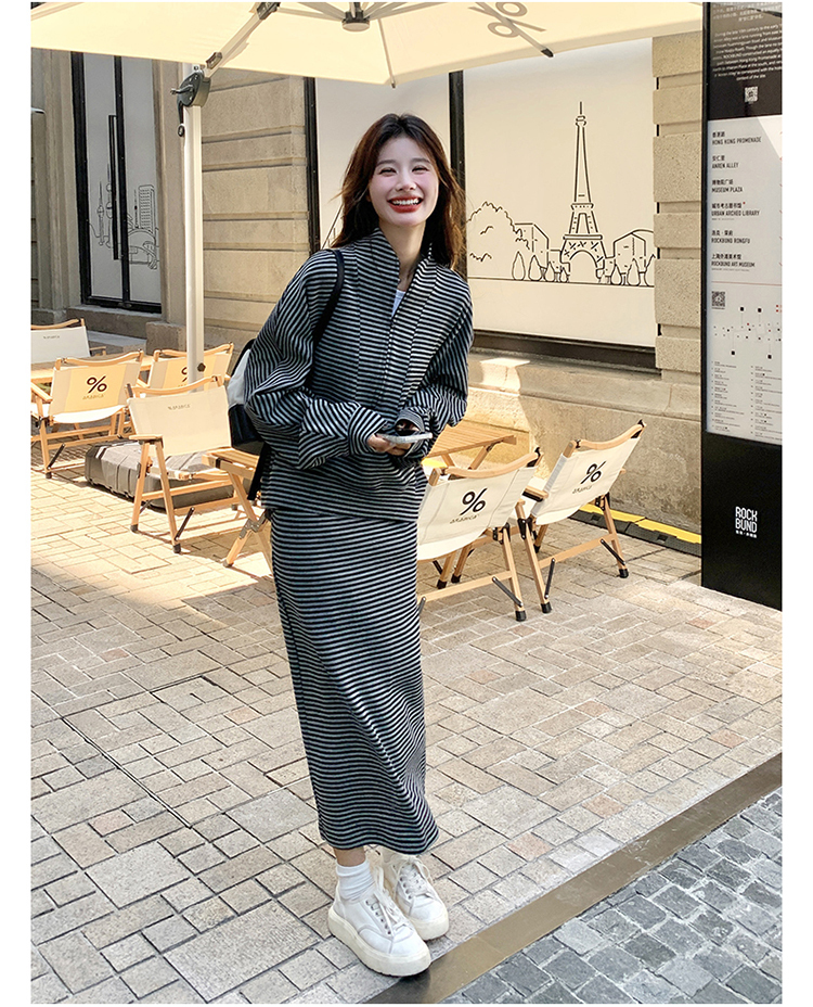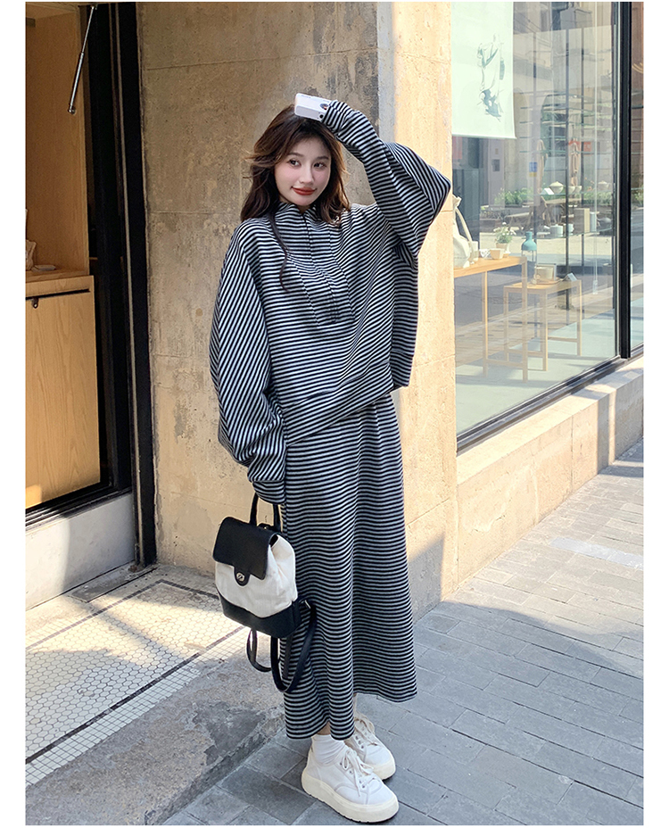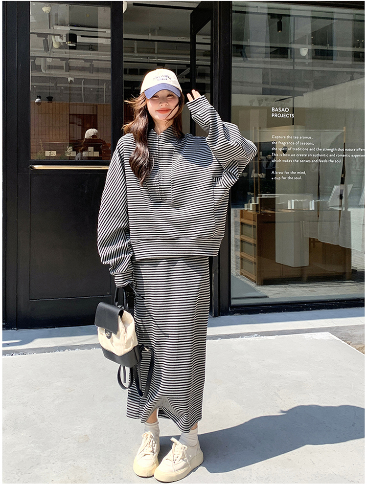 獨家訂製│2件式 韓系休閒感條紋上衣+A字裙(12H7332)