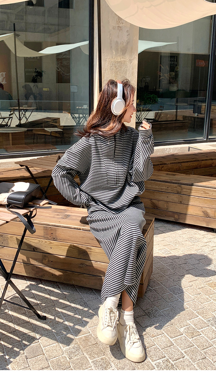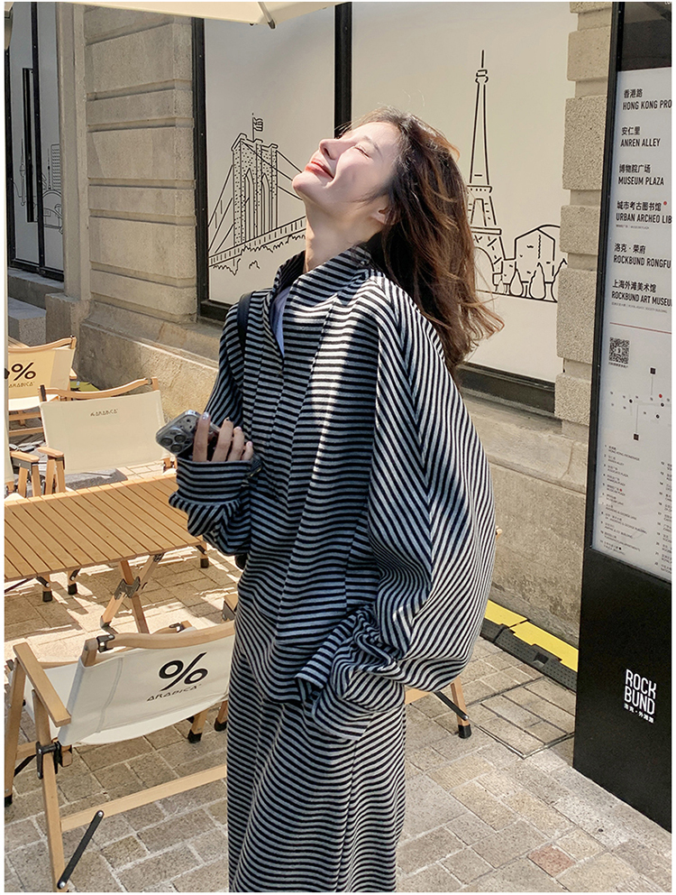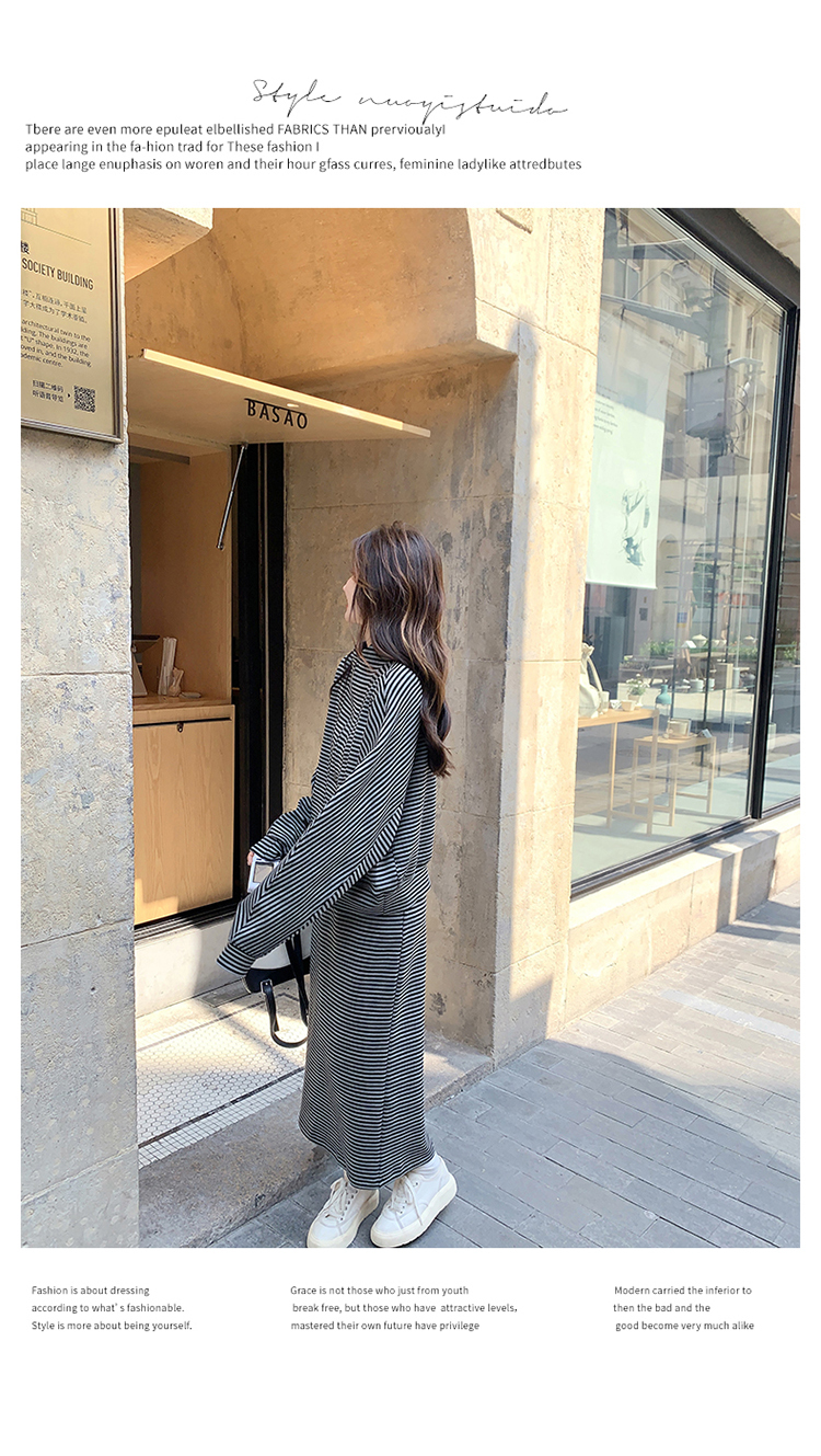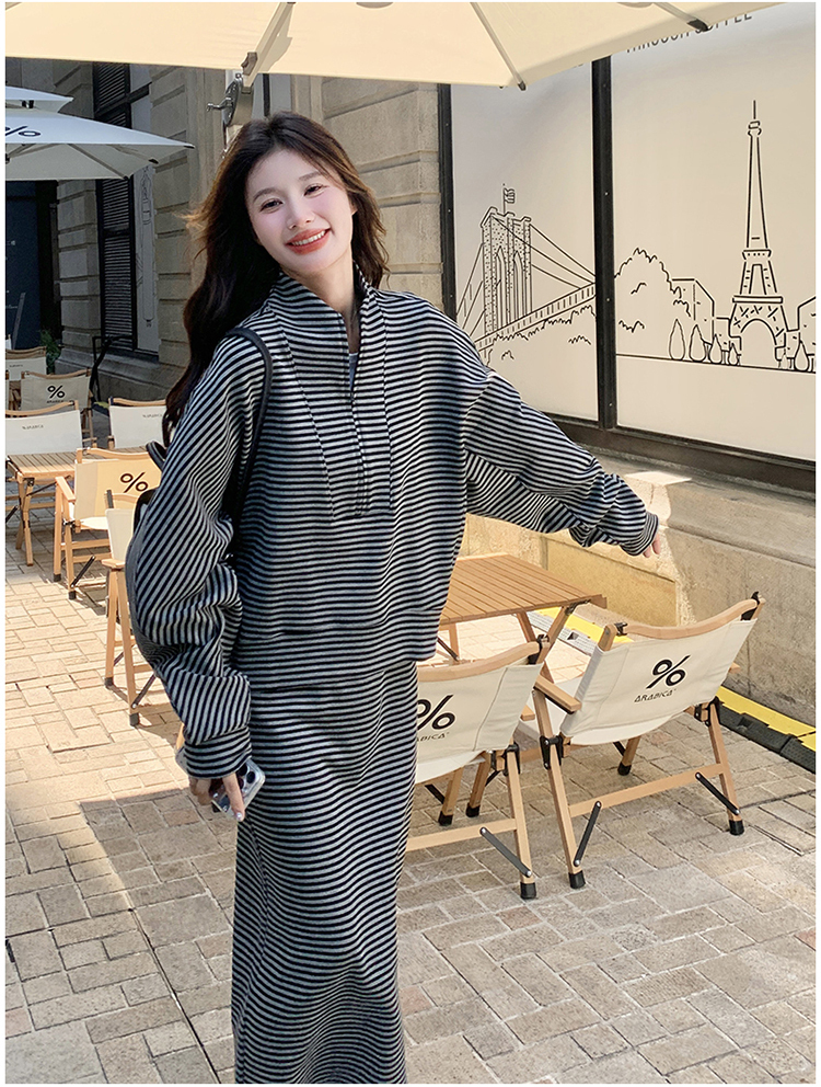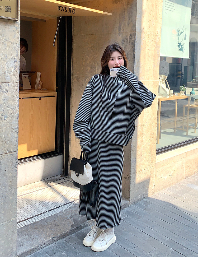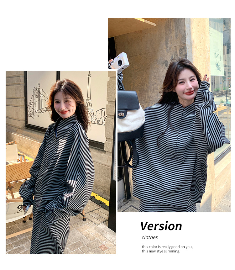獨家訂製│2件式 韓系休閒感條紋上衣+A字裙(12H7332)