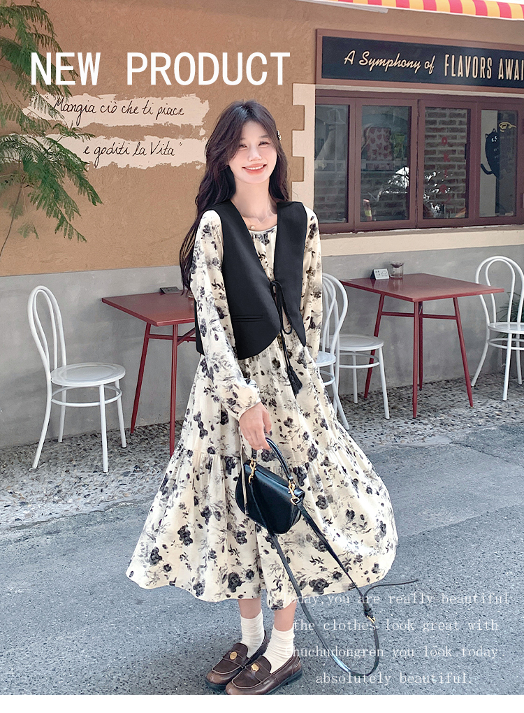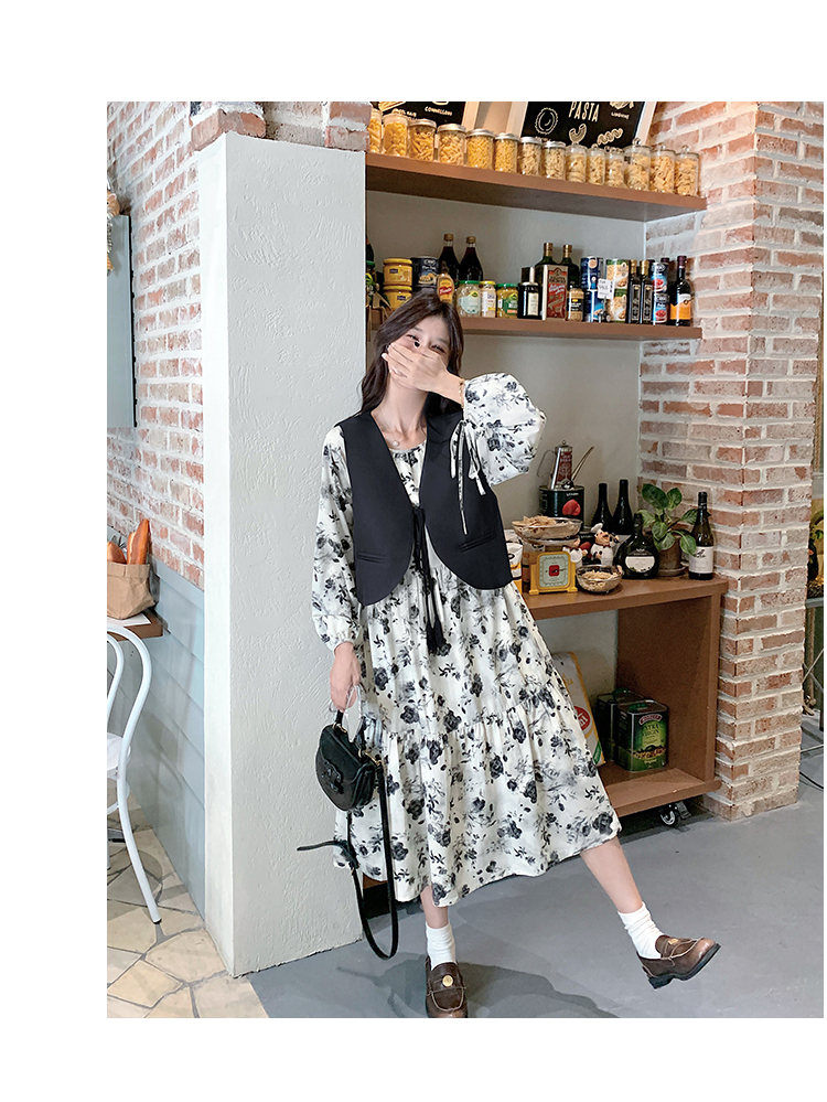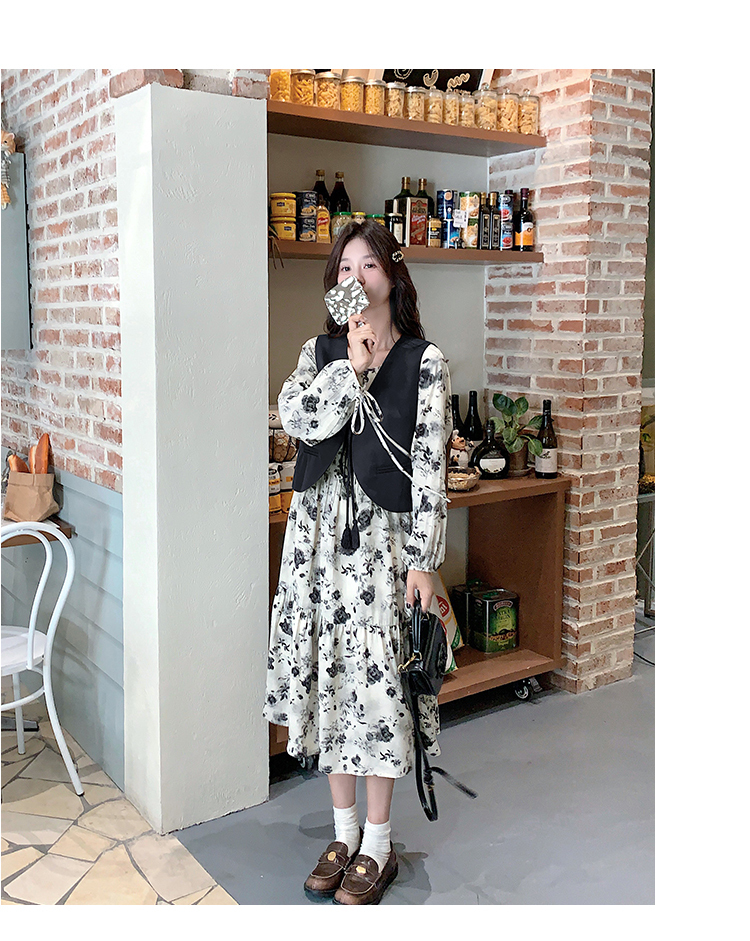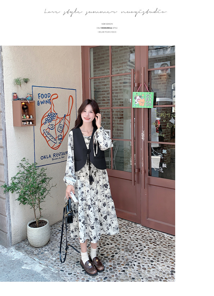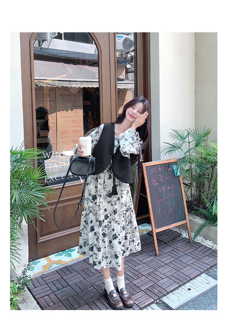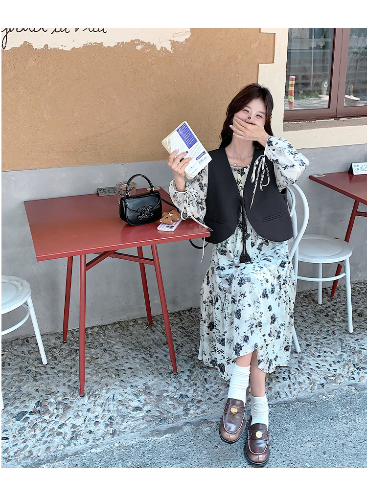獨家訂製│2件式 韓系氣質感流蘇綁帶背心+碎花連衣裙(12H7342)