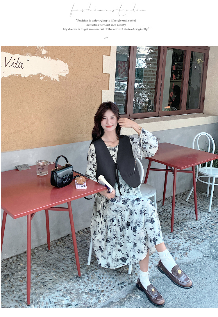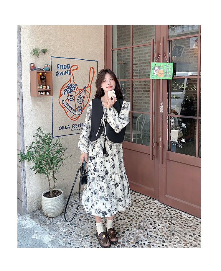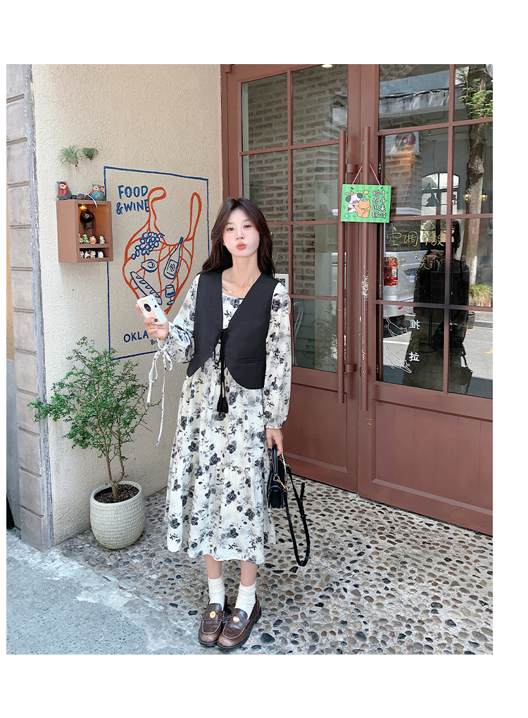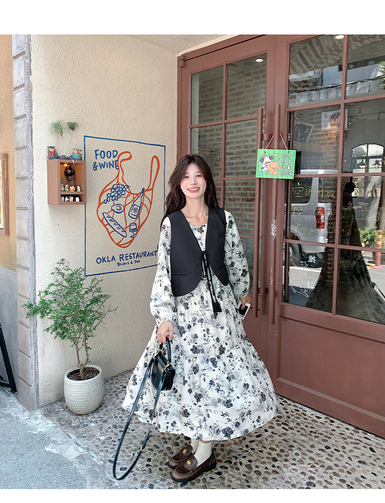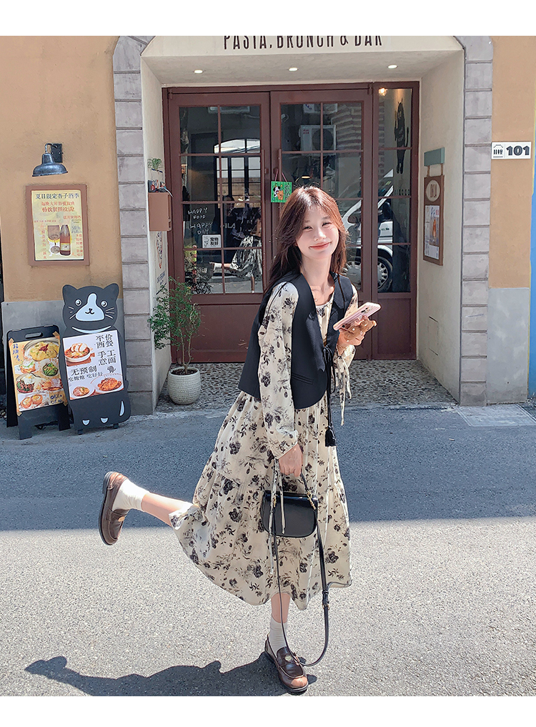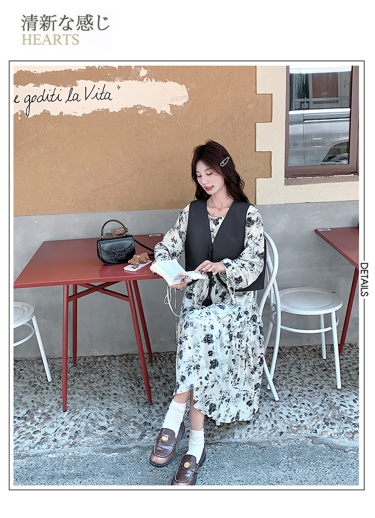 獨家訂製│2件式 韓系氣質感流蘇綁帶背心+碎花連衣裙(12H7342)