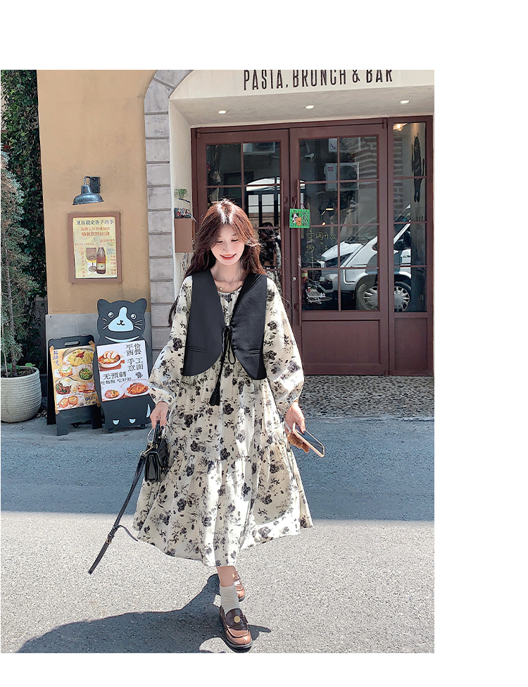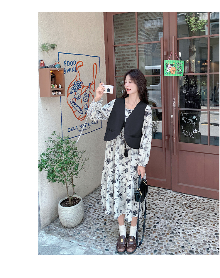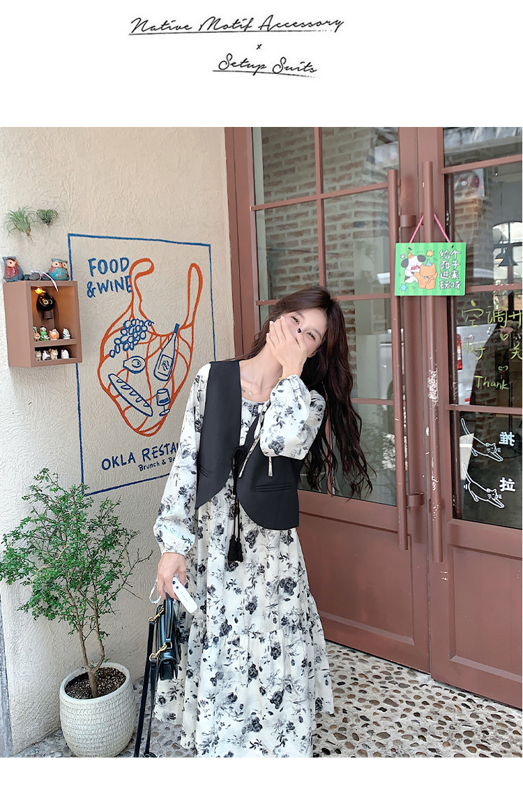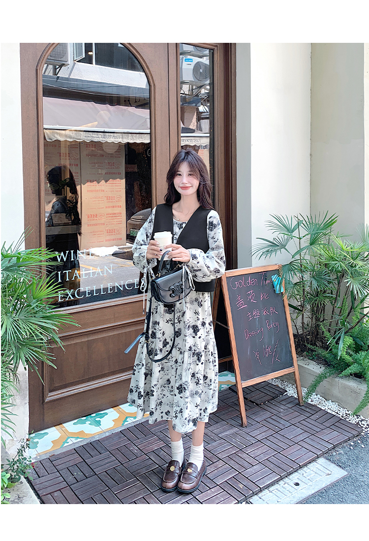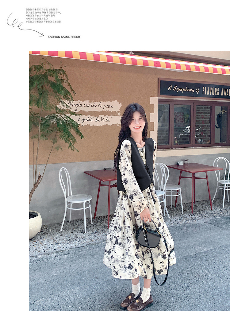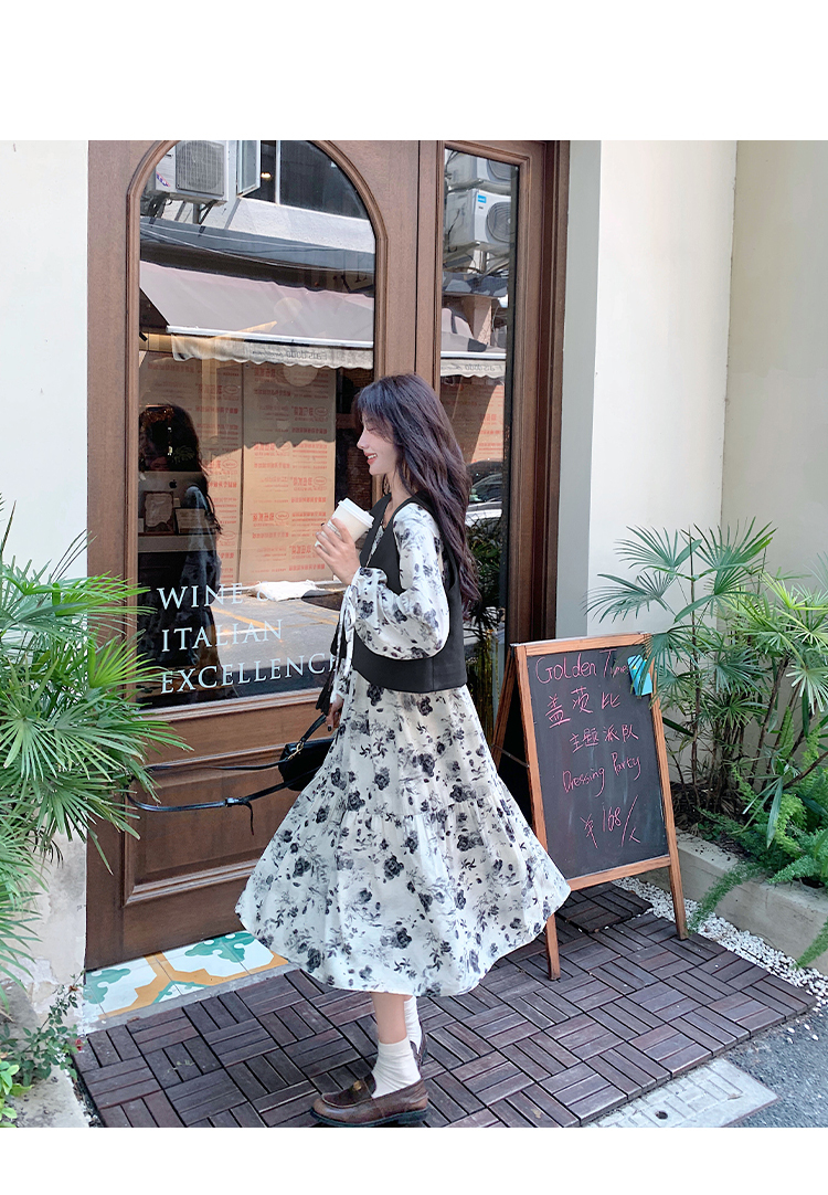 獨家訂製│2件式 韓系氣質感流蘇綁帶背心+碎花連衣裙(12H7342)