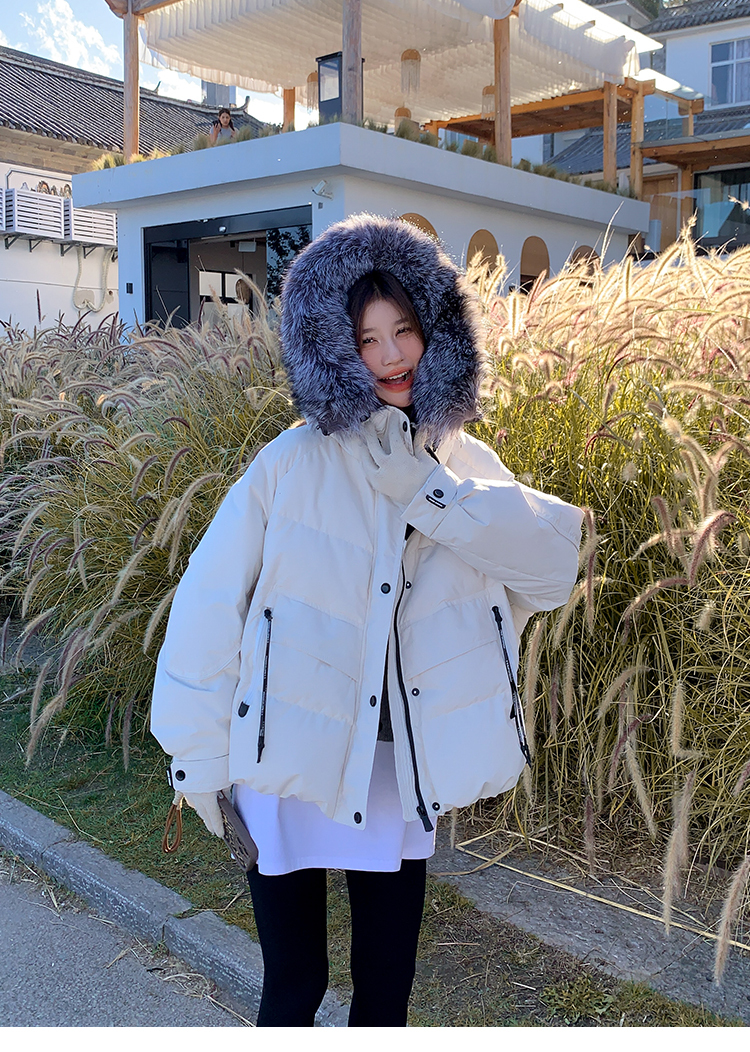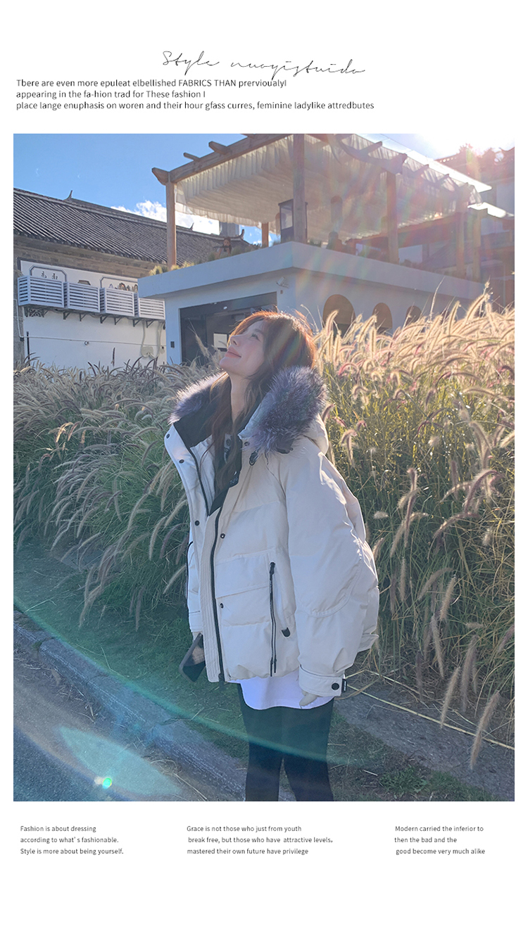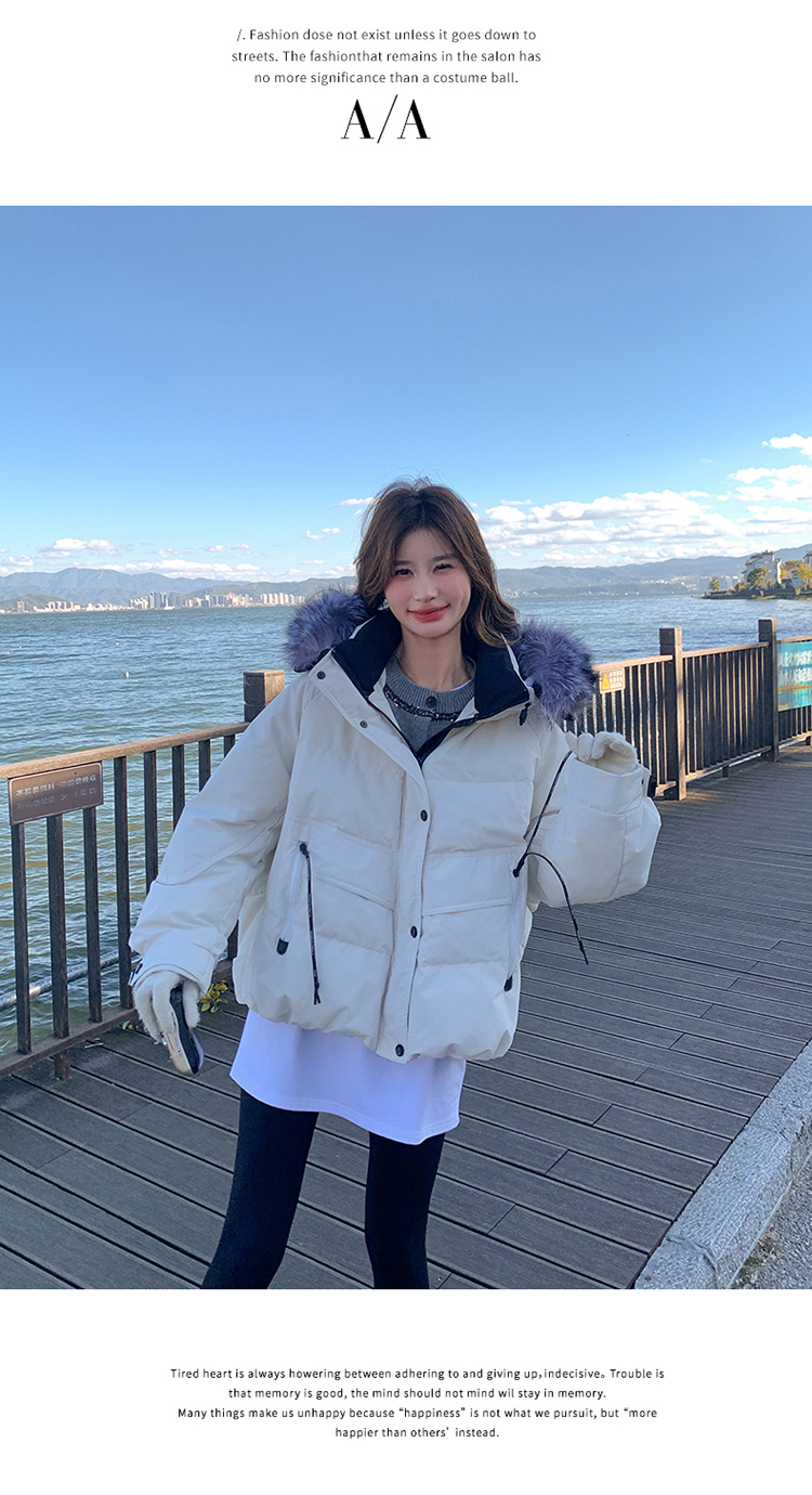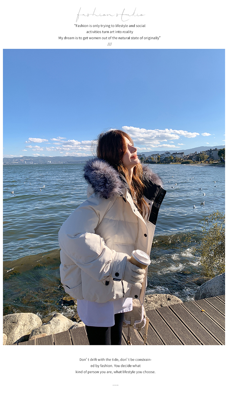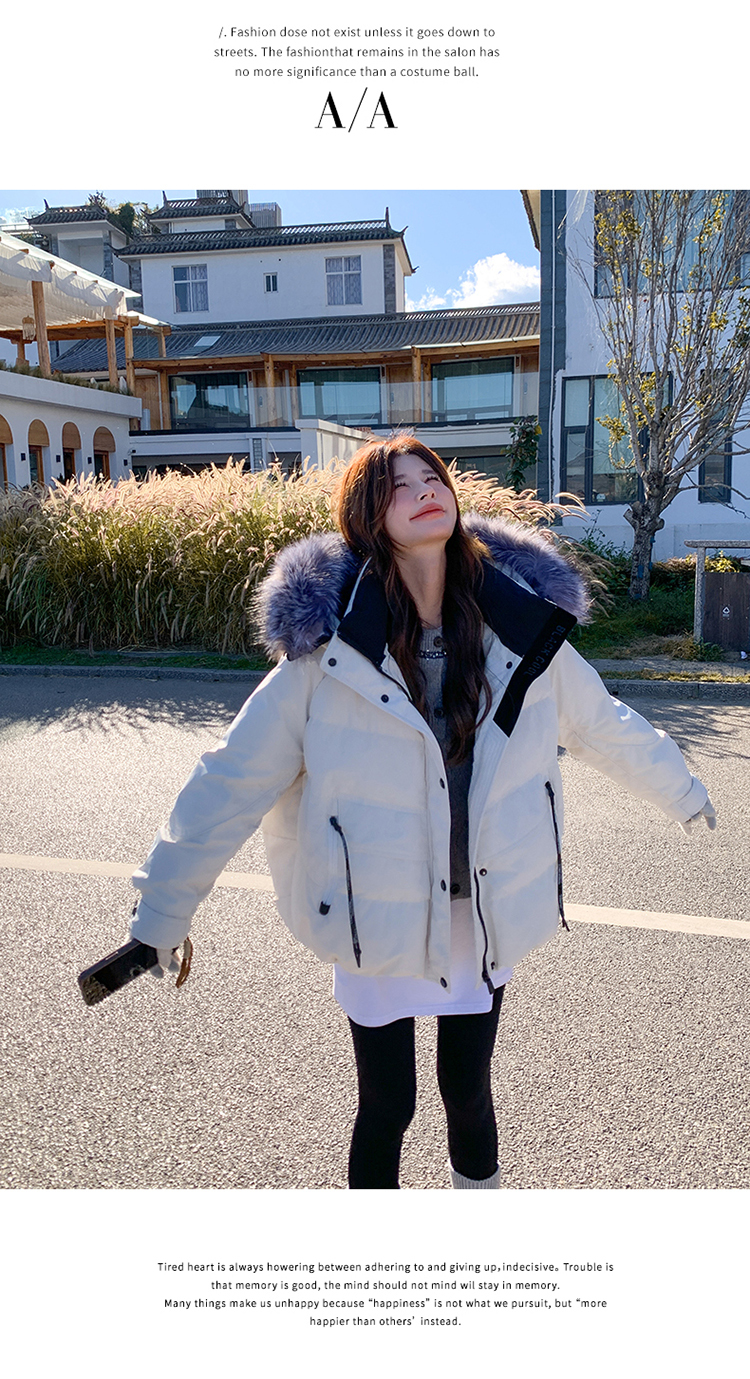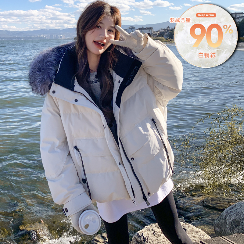 🔺面料:外層滌綸+內層填充:90%白鴨絨+仿貉子毛領(可拆)