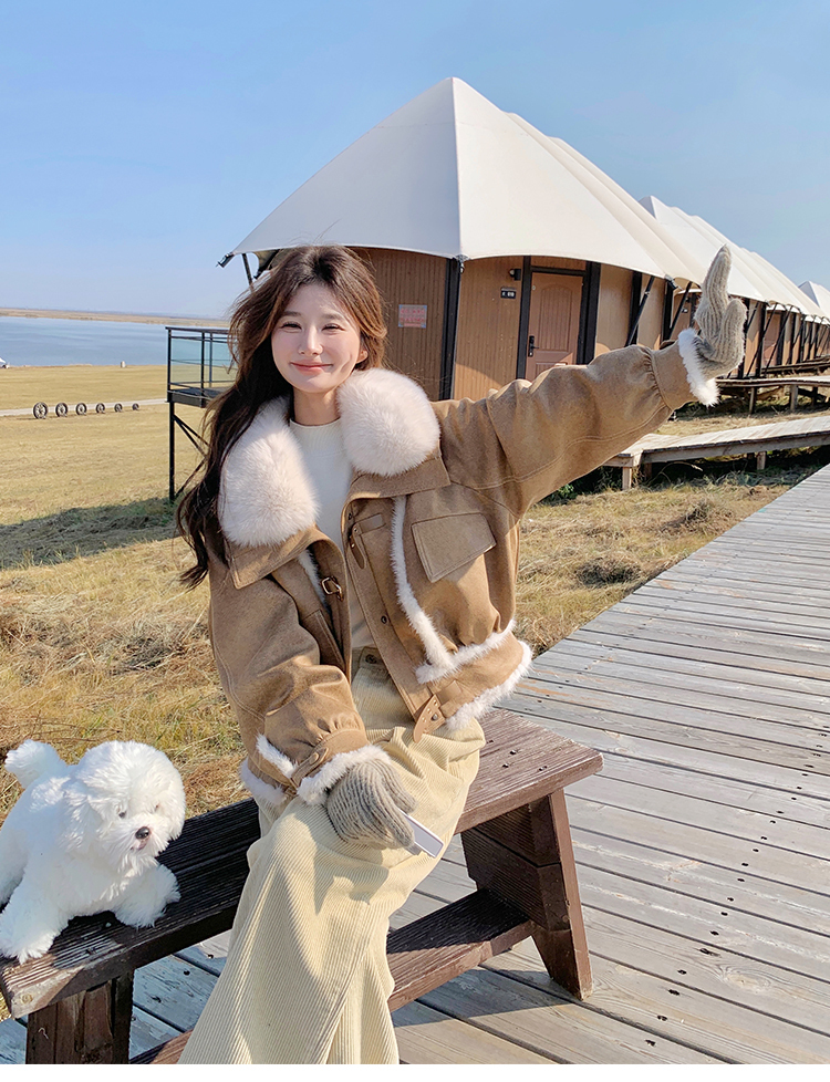 🔺面料:麂皮絨+內刷仿兔毛絨+毛領仿水貂毛(可拆卸)