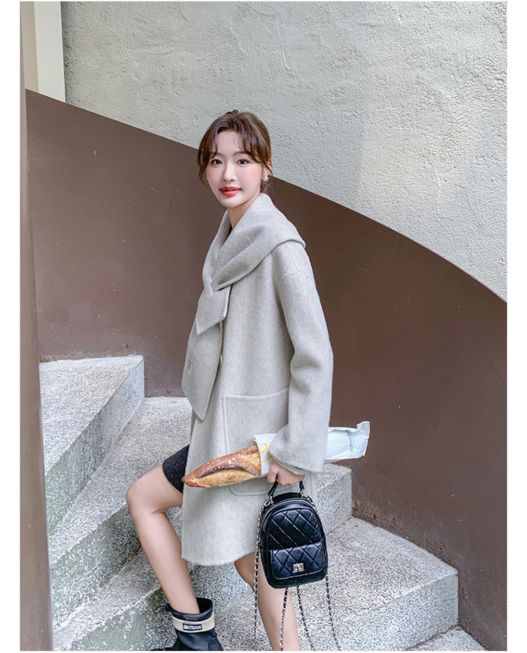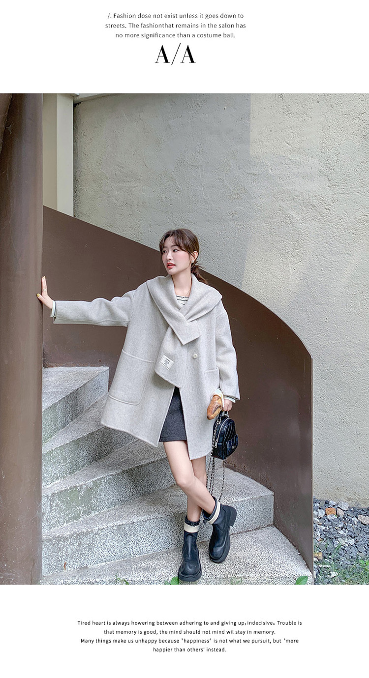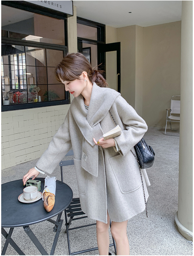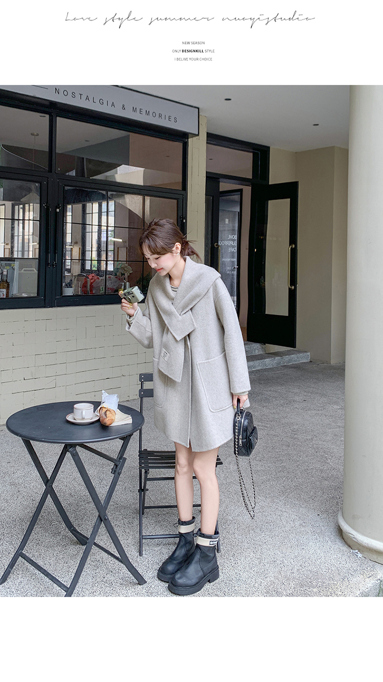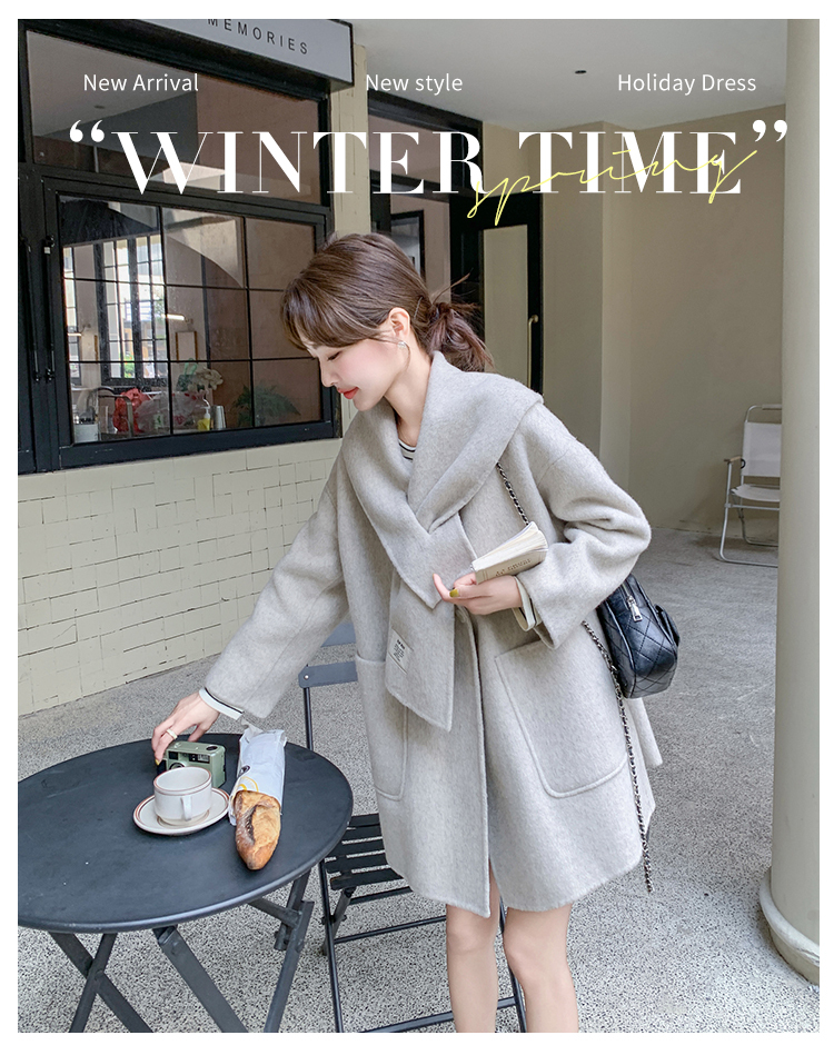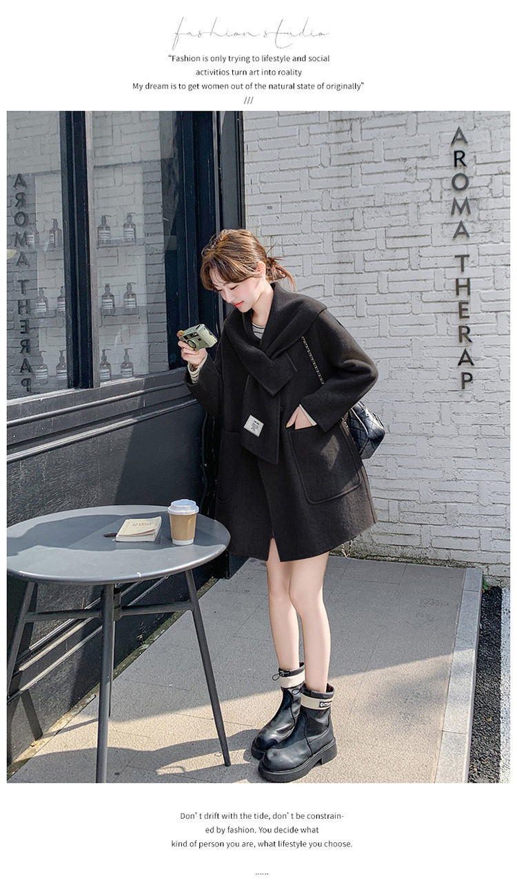 獨家訂製│2色 韓系學院風圍巾領造型雙面羊毛呢外套(12H7405)