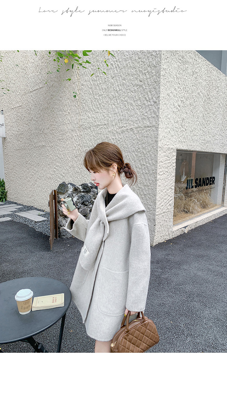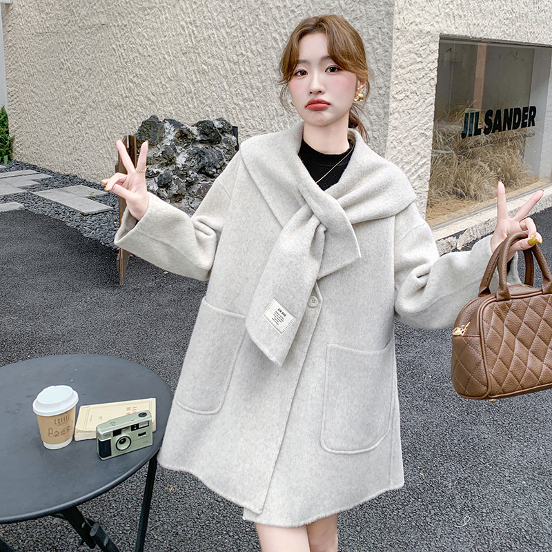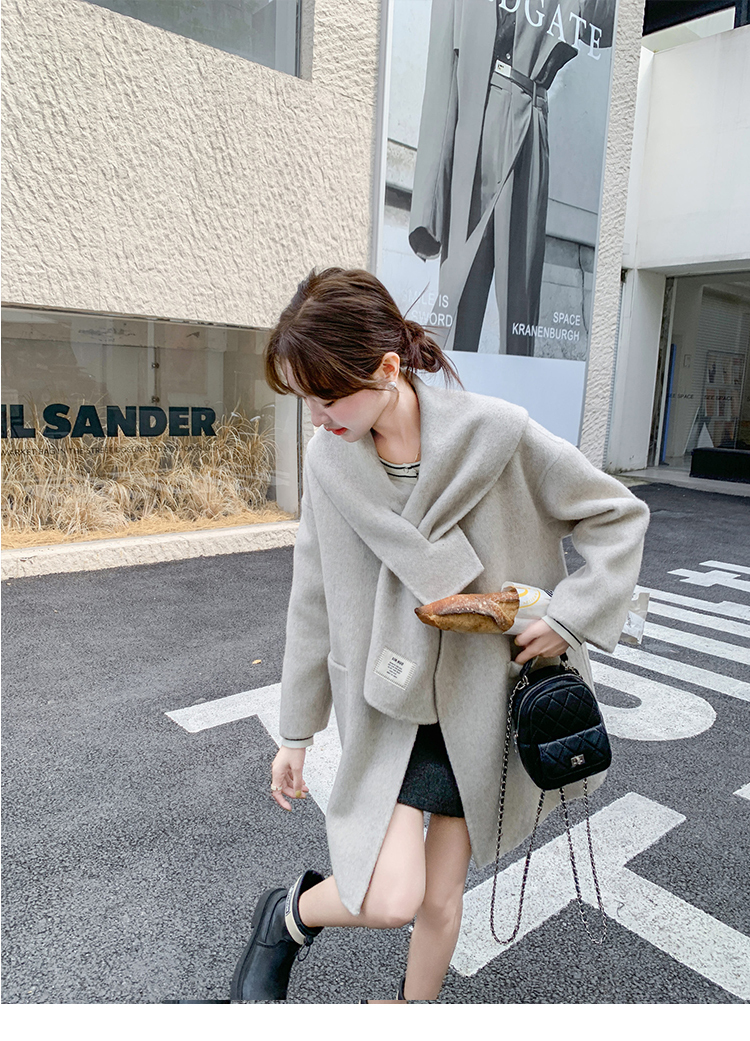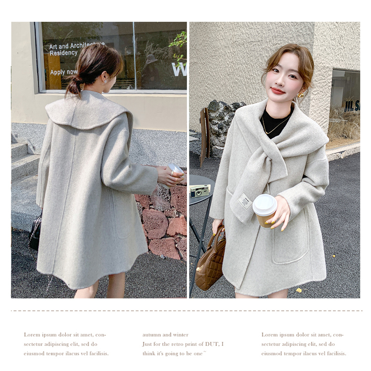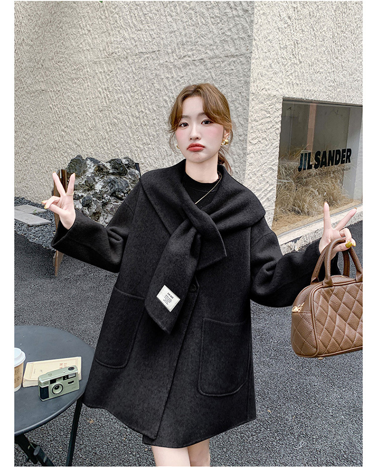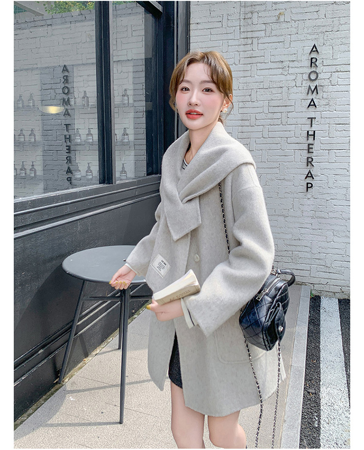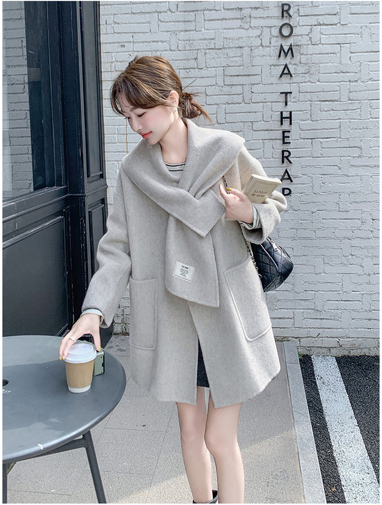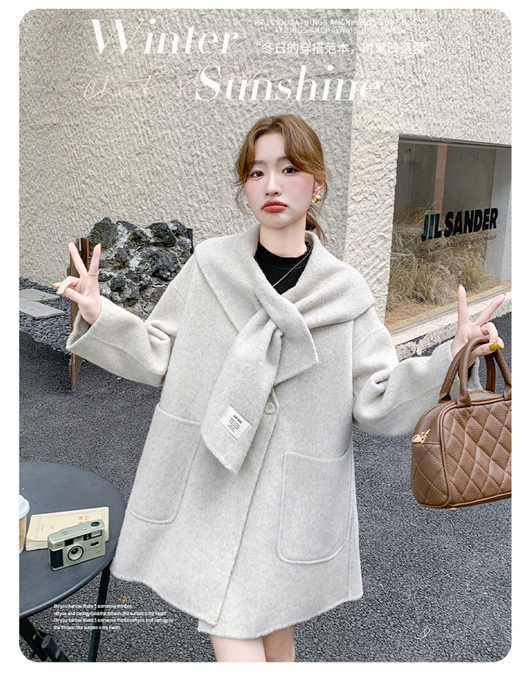 獨家訂製│2色 韓系學院風圍巾領造型雙面羊毛呢外套(12H7405)