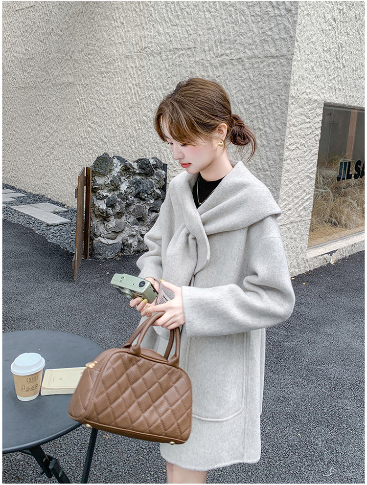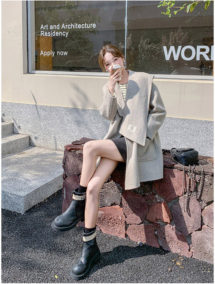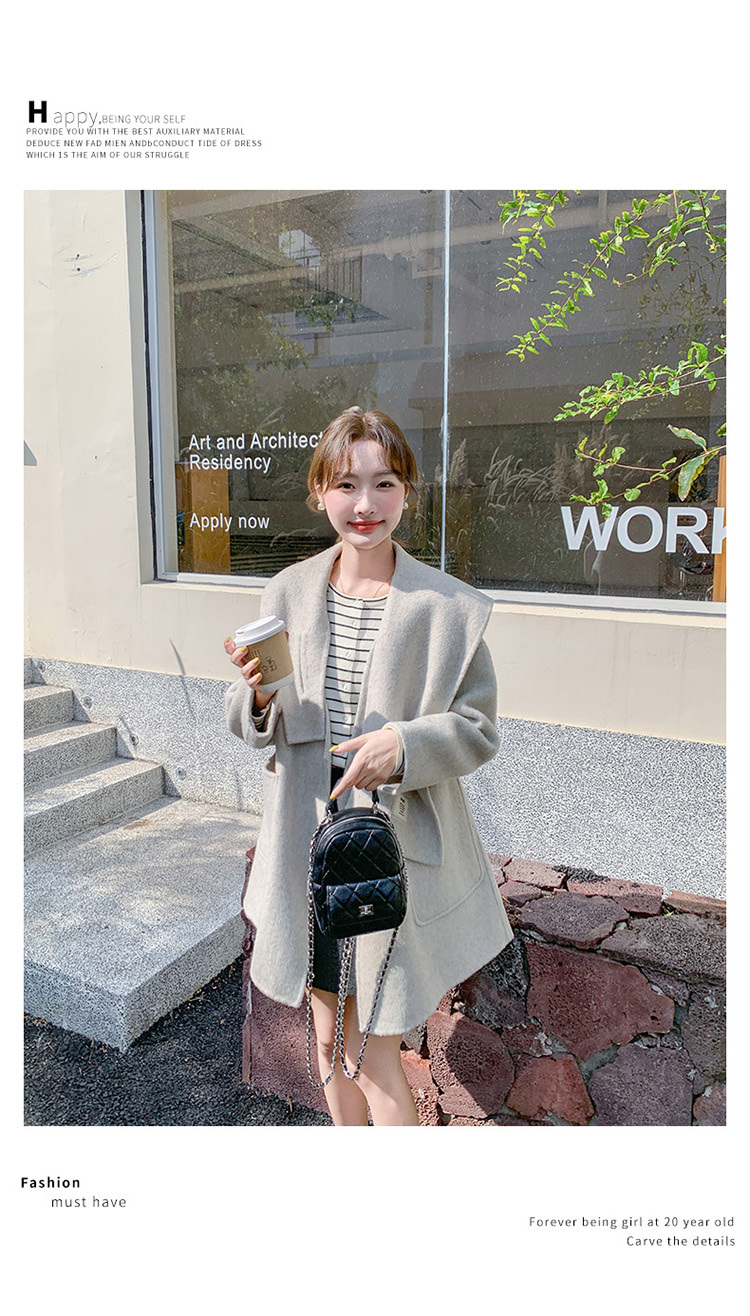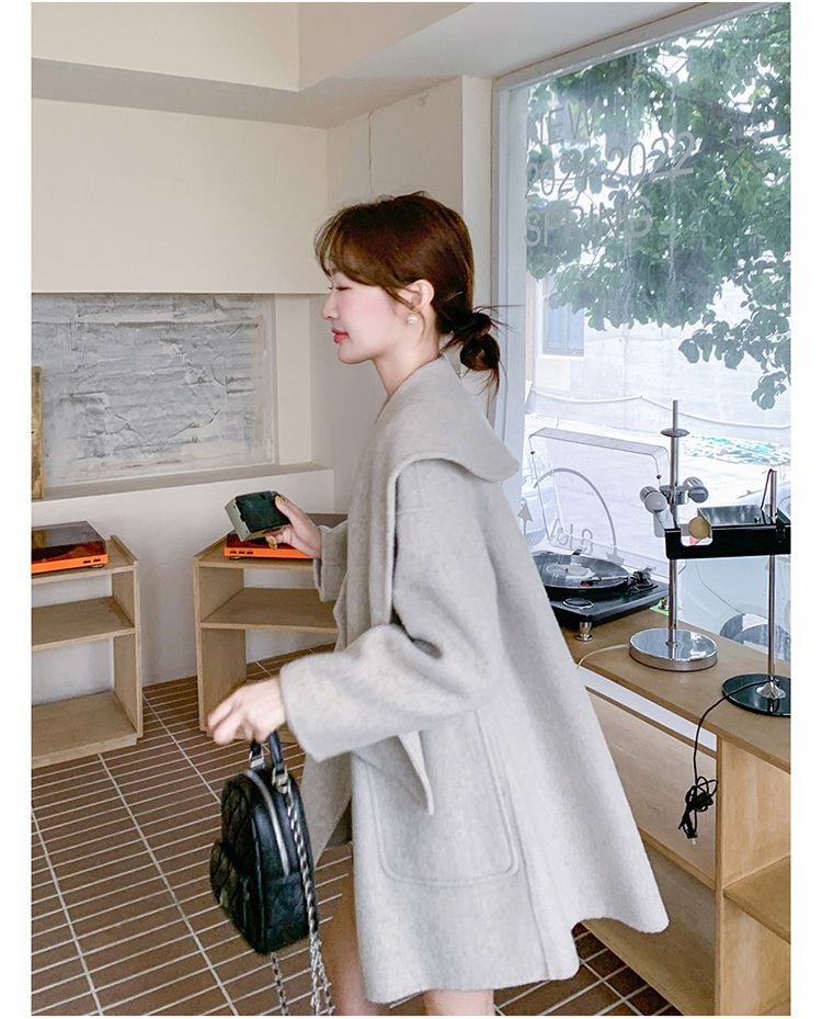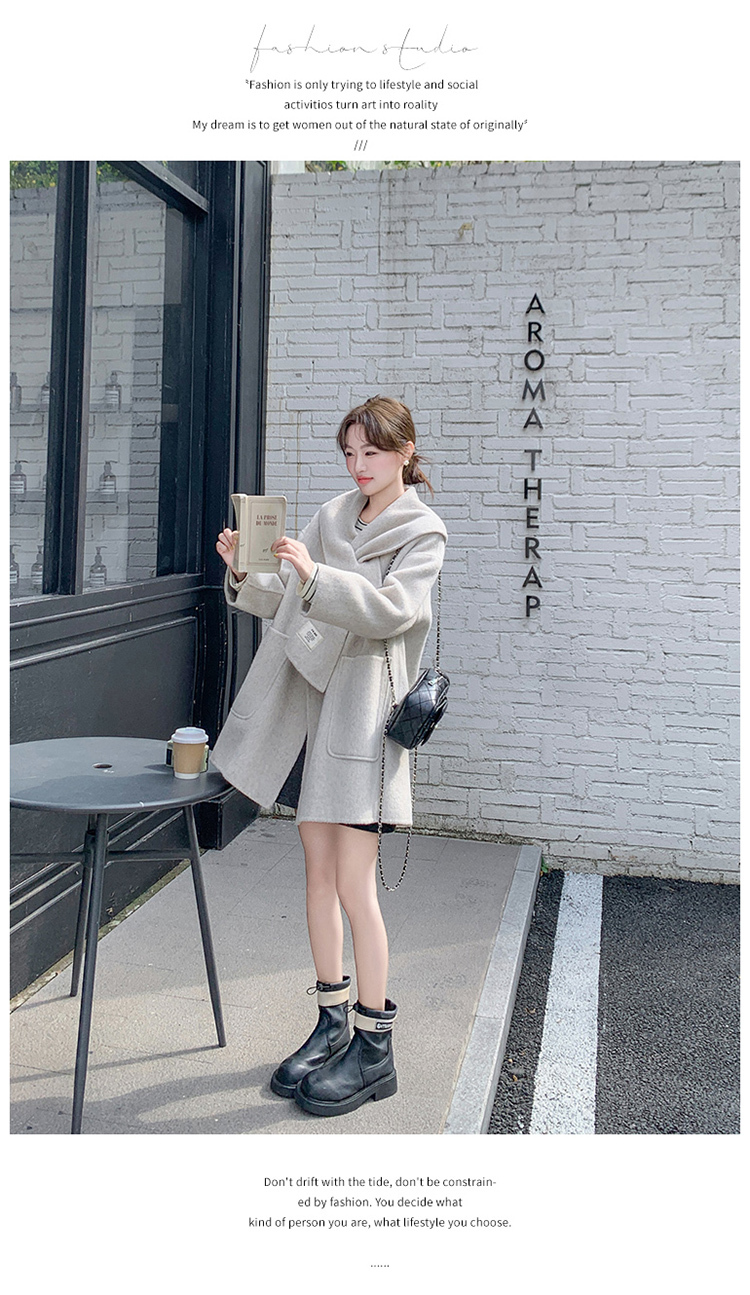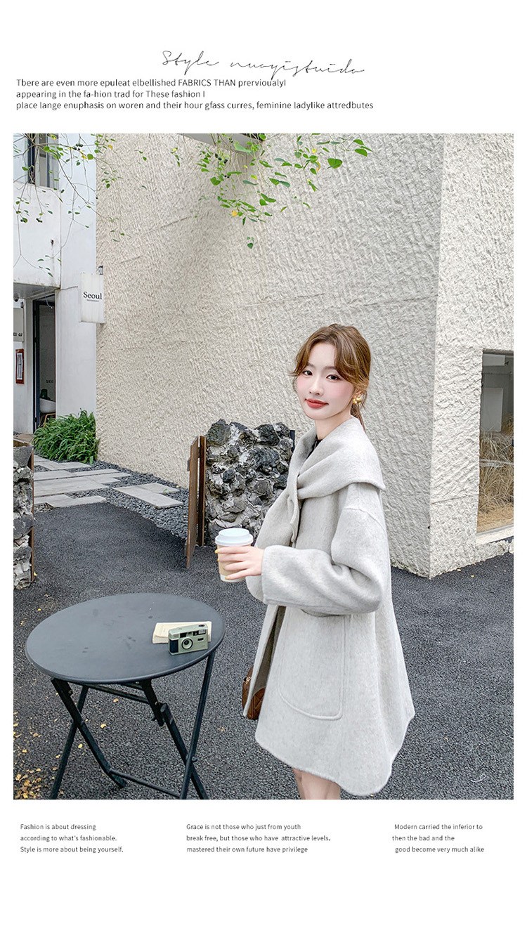 獨家訂製│2色 韓系學院風圍巾領造型雙面羊毛呢外套(12H7405)
