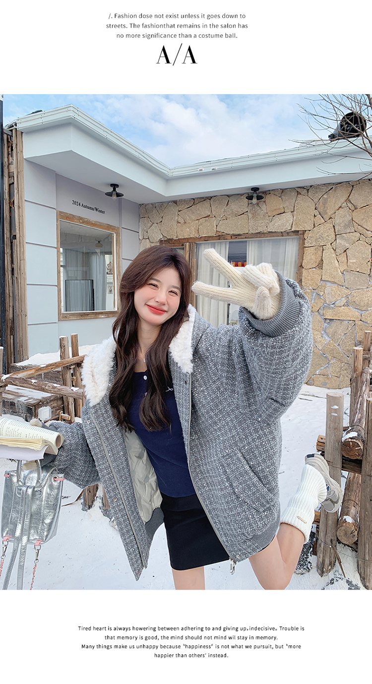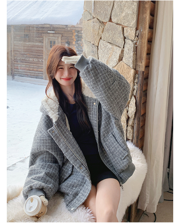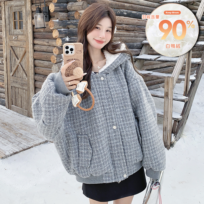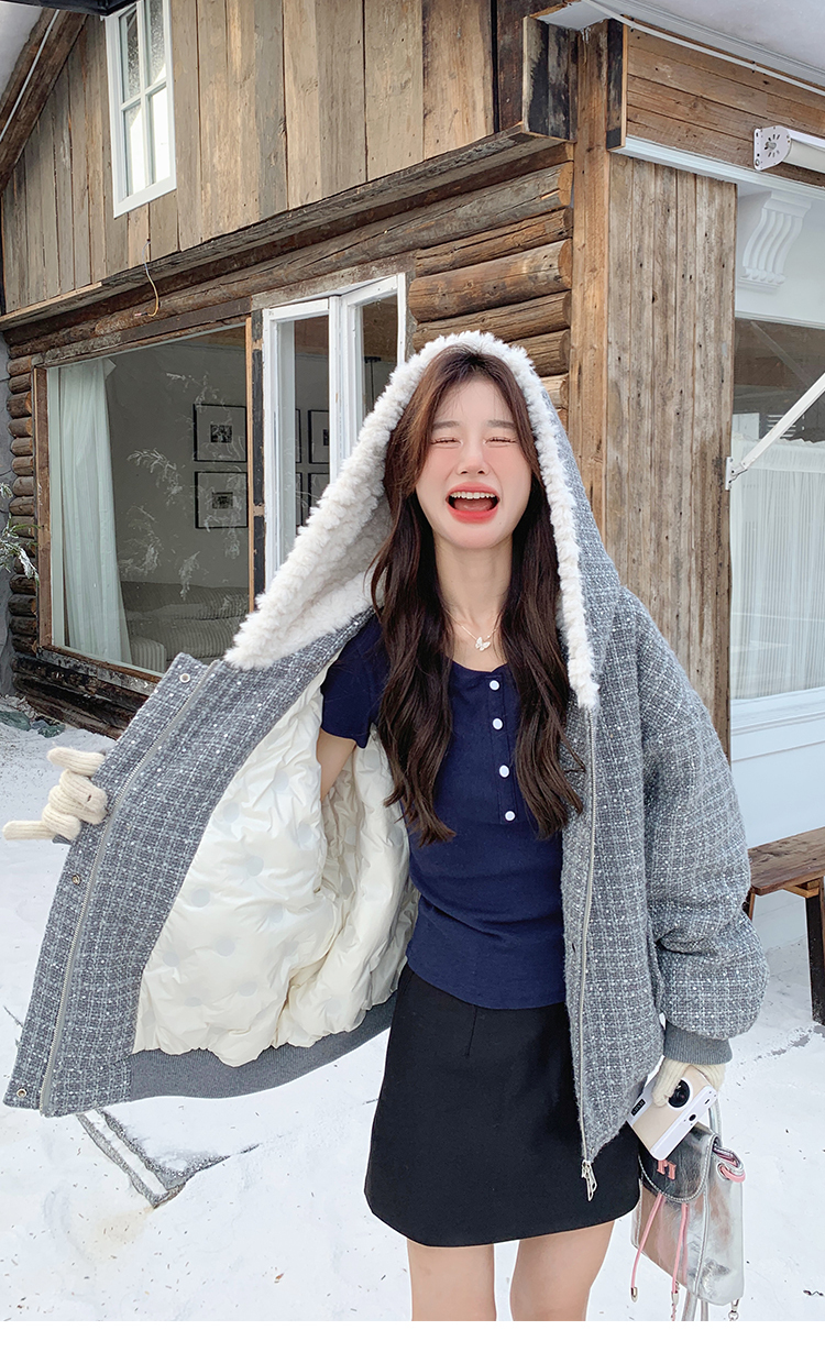 🔺面料:外層粗花呢+亮片+帽子內刷仿兔毛絨+內層填充:90%白鴨絨