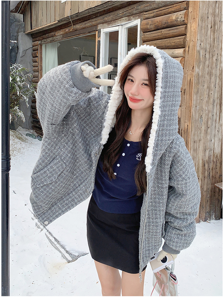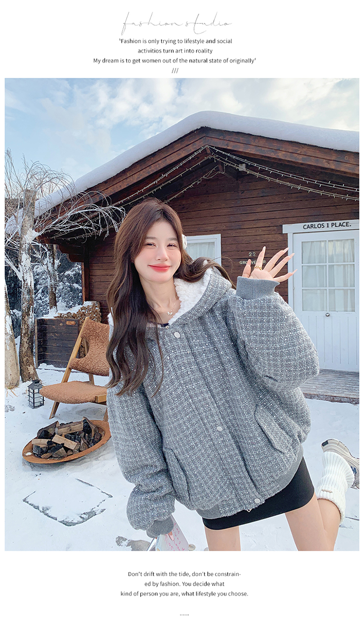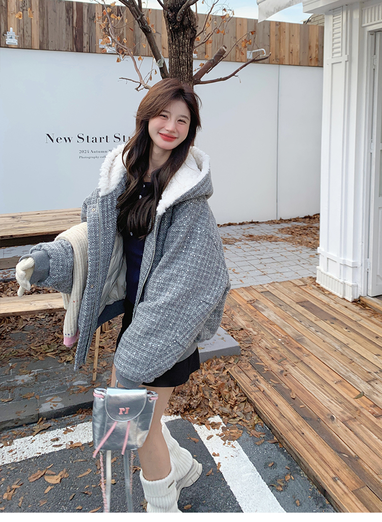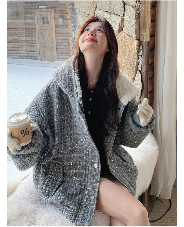 🔺面料:外層粗花呢+亮片+帽子內刷仿兔毛絨+內層填充:90%白鴨絨