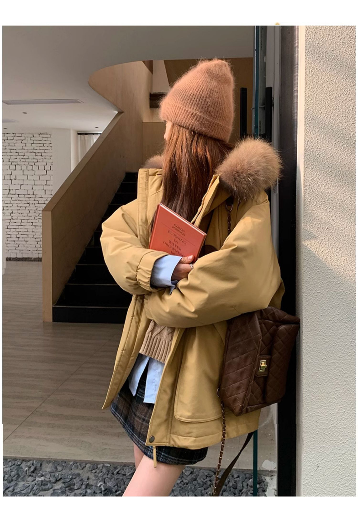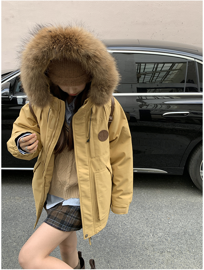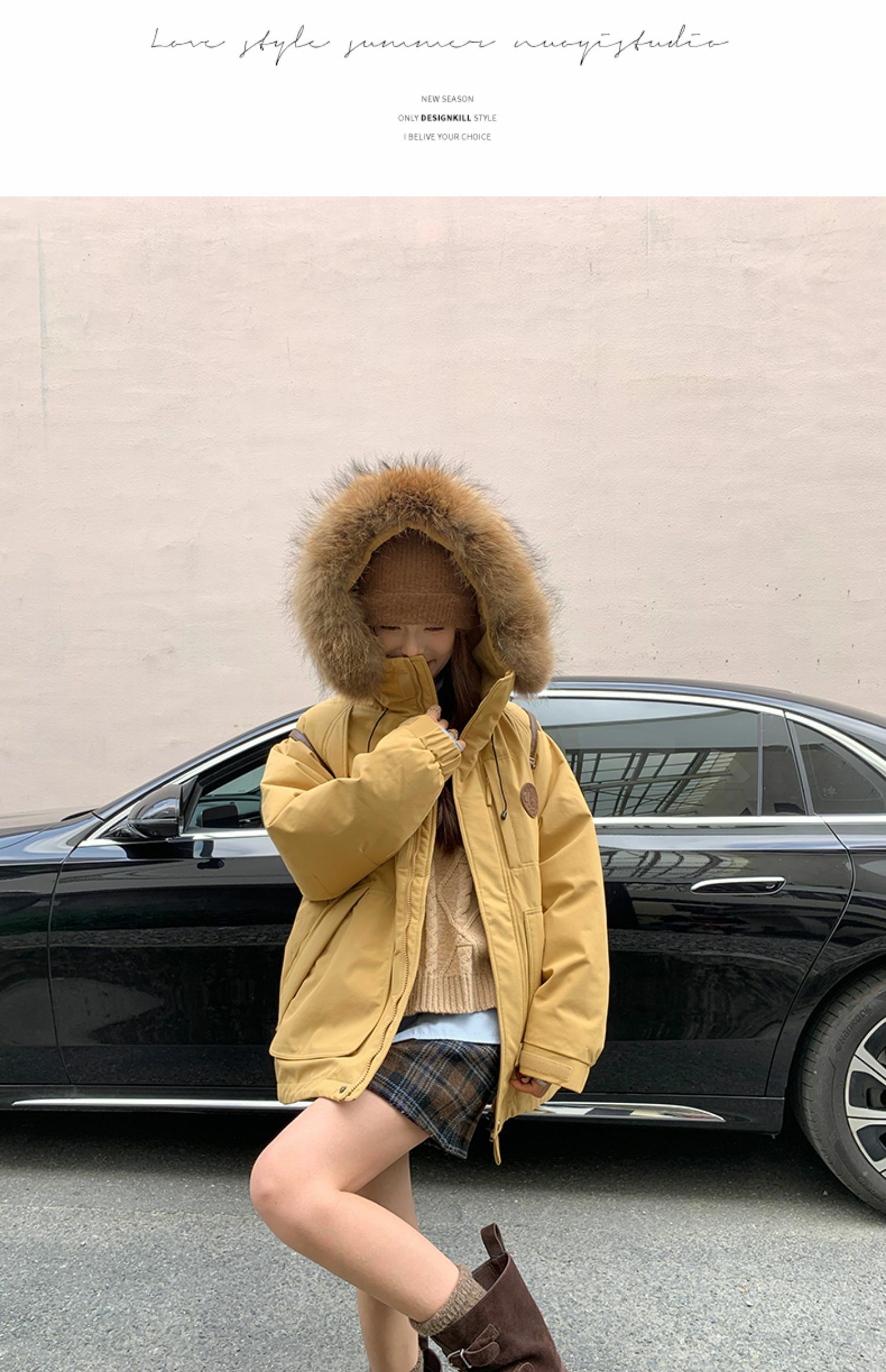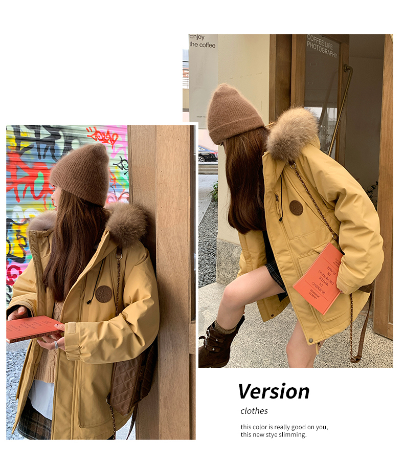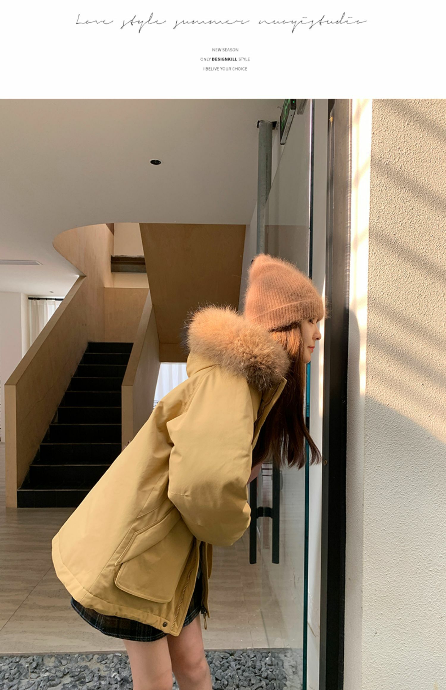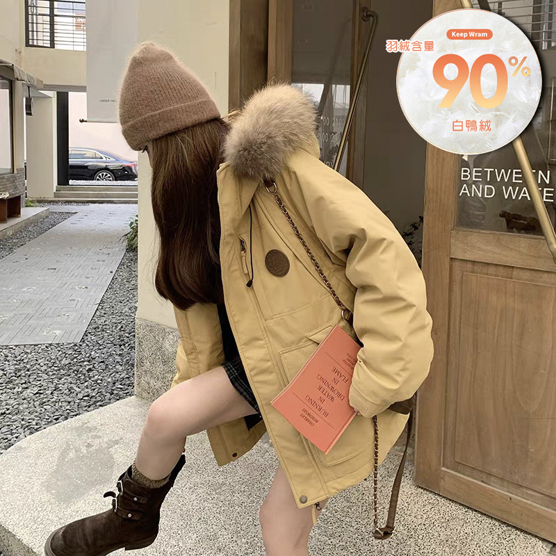 🔺面料:外層滌綸+仿貉子毛領(可拆)+內層填充:90%白鴨絨