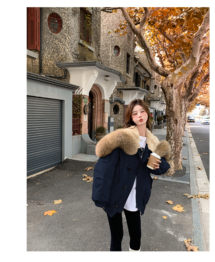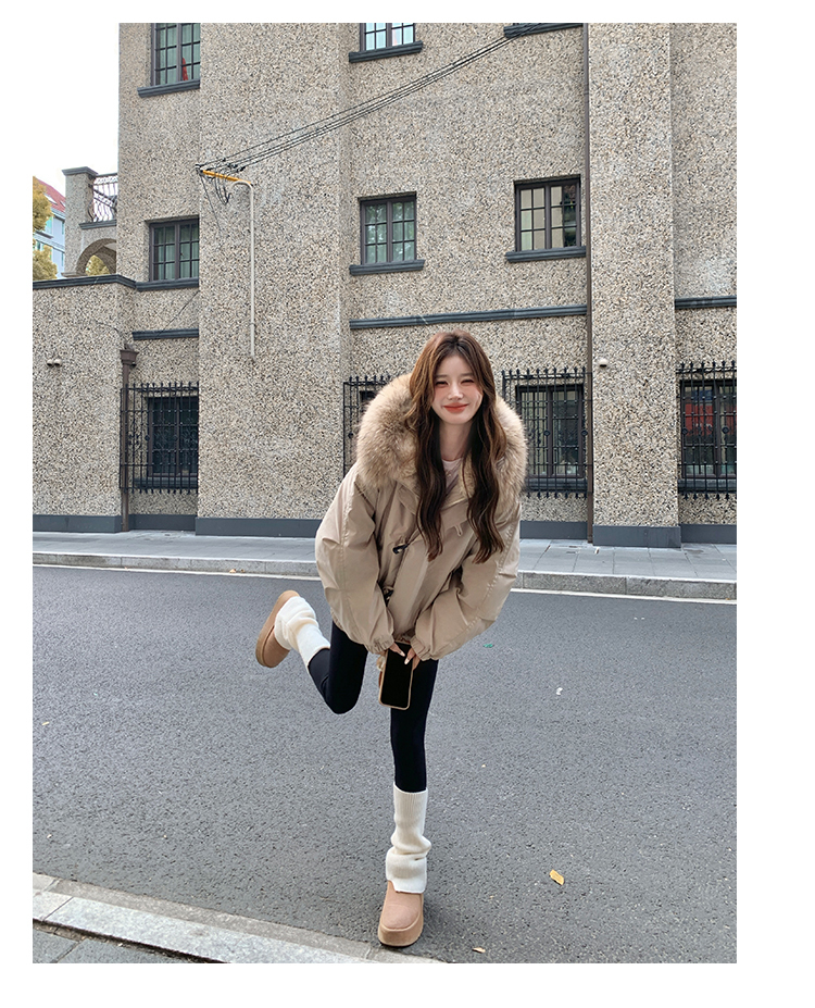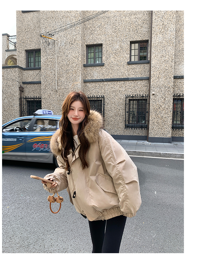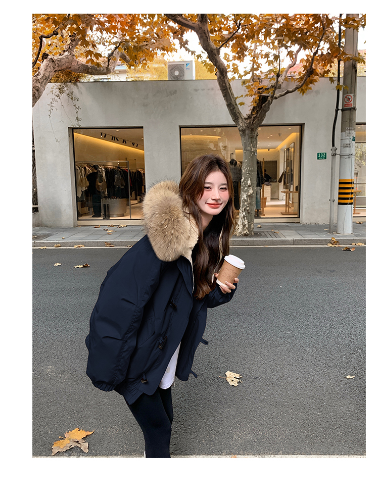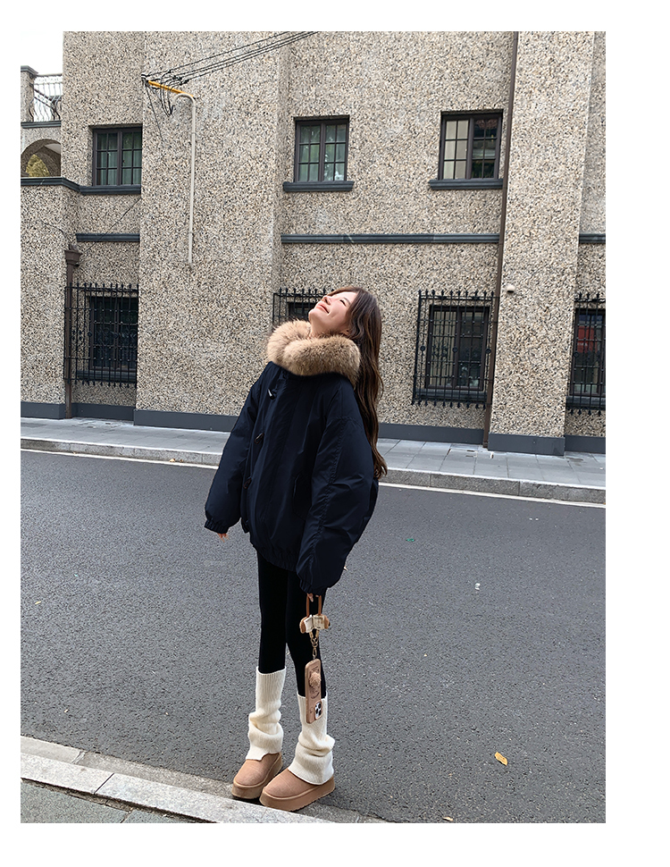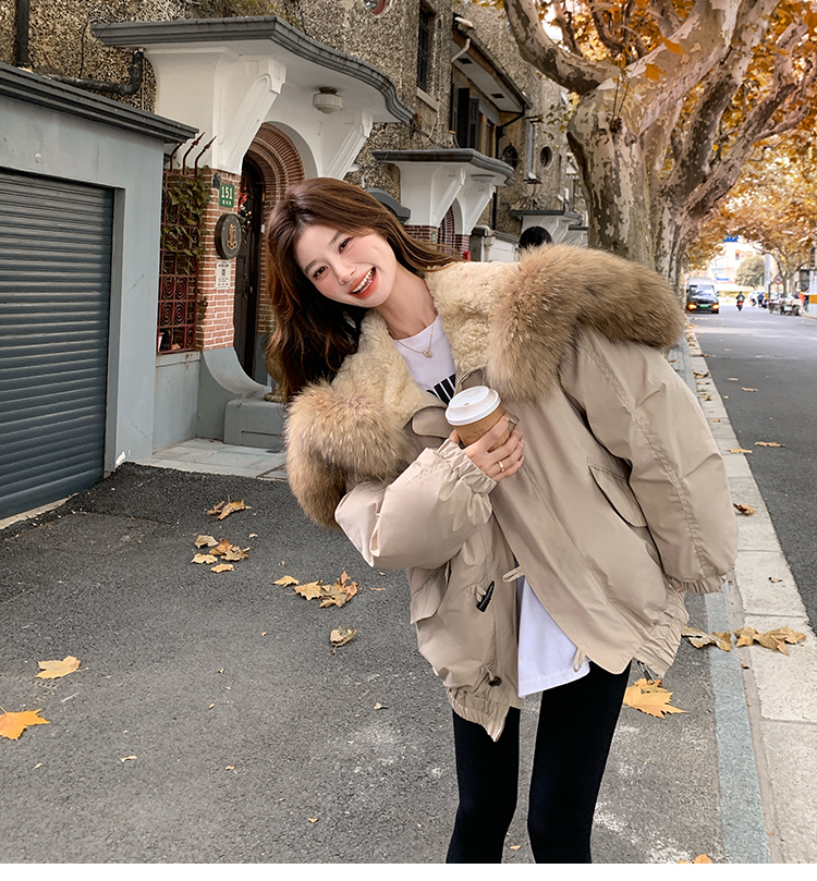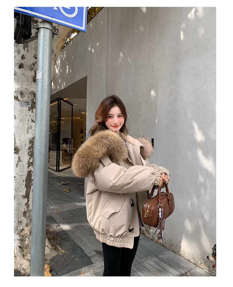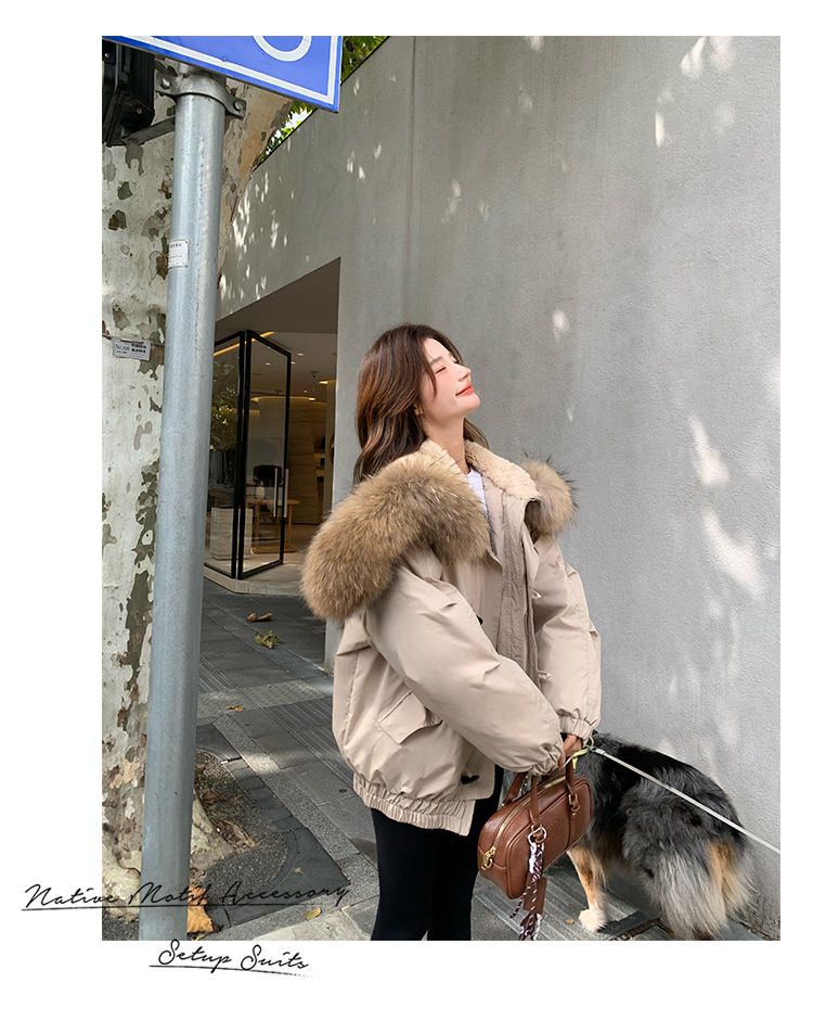 🔺面料:外層滌綸+內層填充:90%白鴨絨+仿貉子毛領(可拆)+帽裡仿兔毛絨