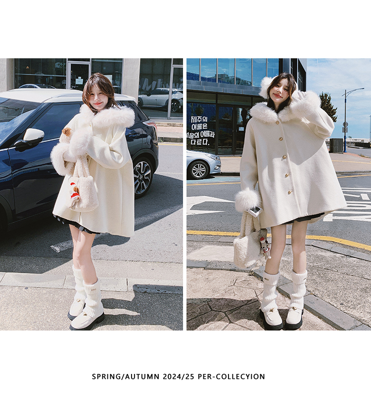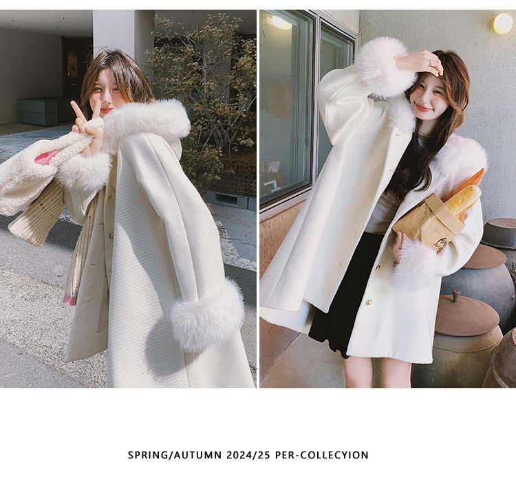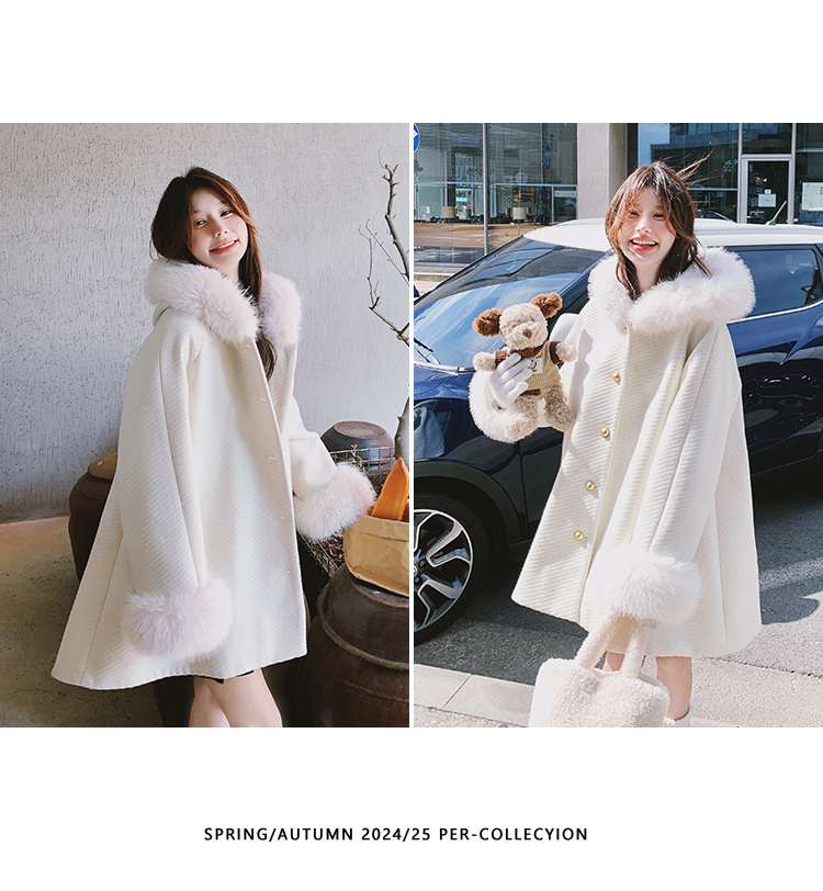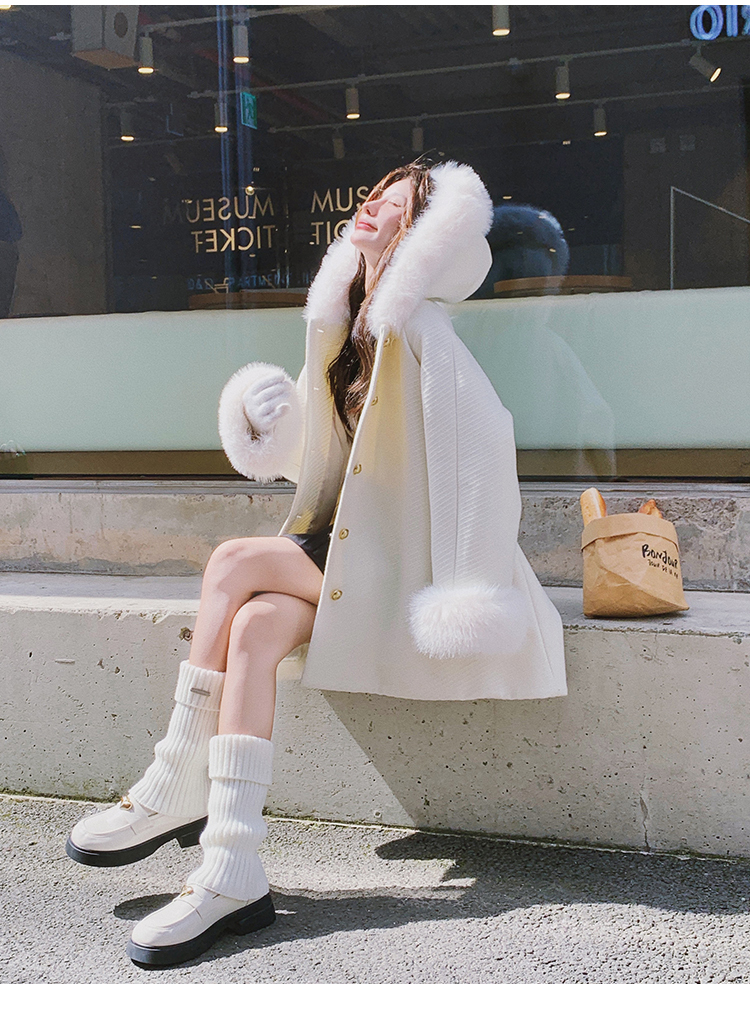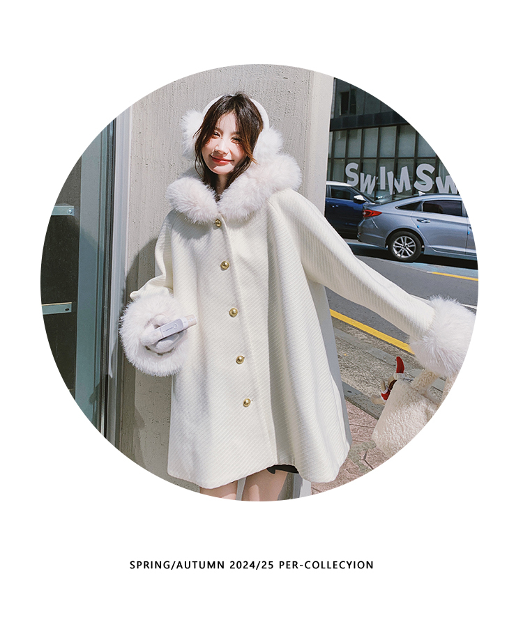 🔺面料:毛呢+帽子&袖口:仿狐狸毛領(可拆)