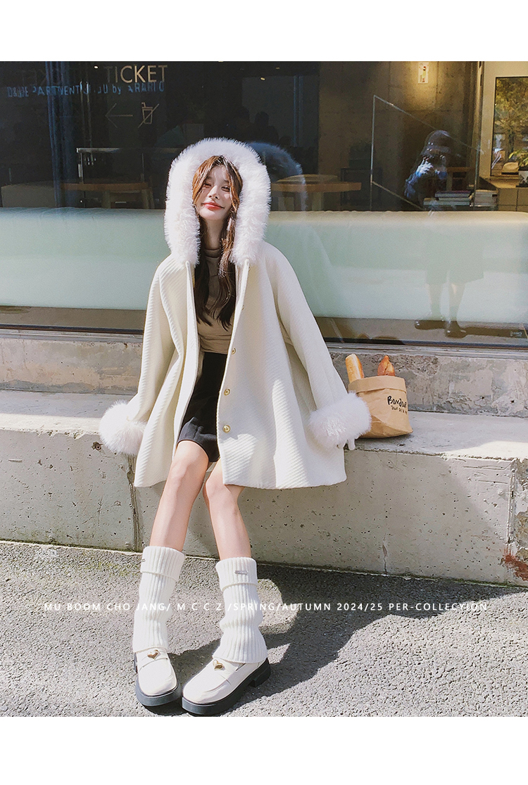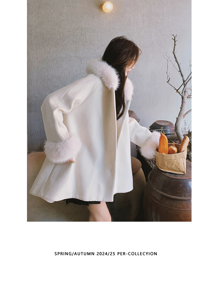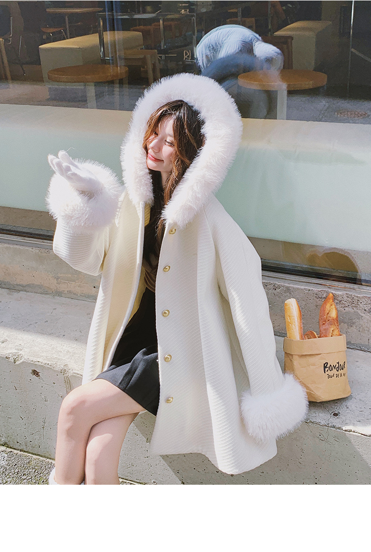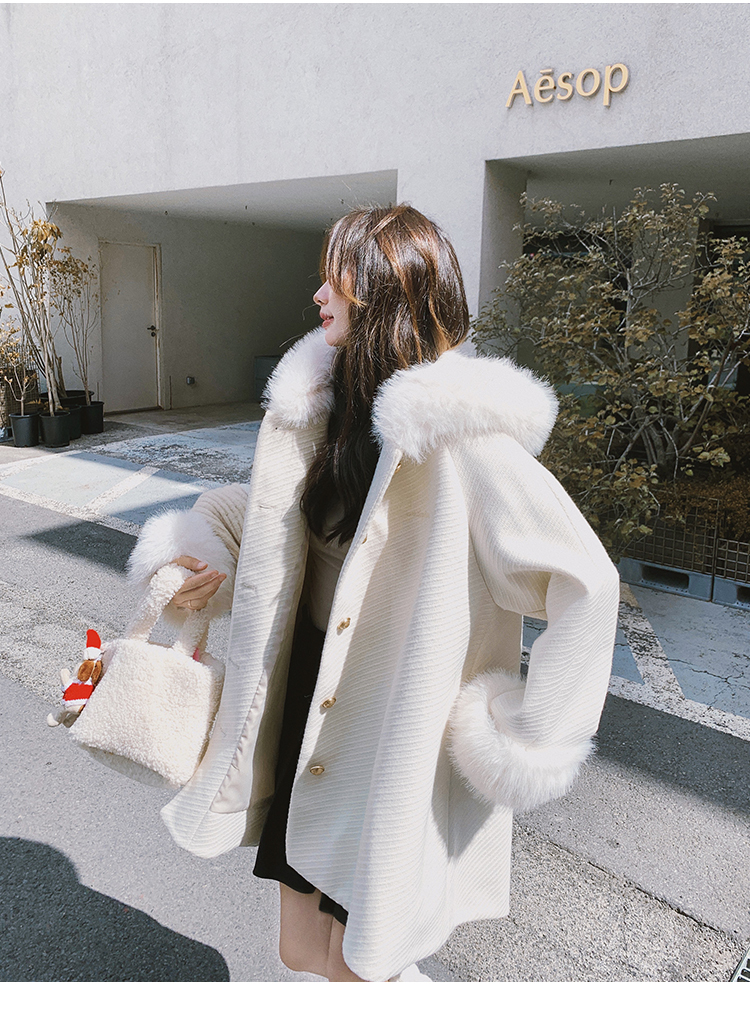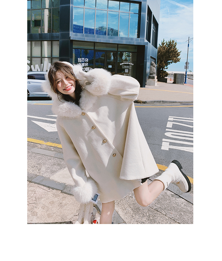 🔺面料:毛呢+帽子&袖口:仿狐狸毛領(可拆)
