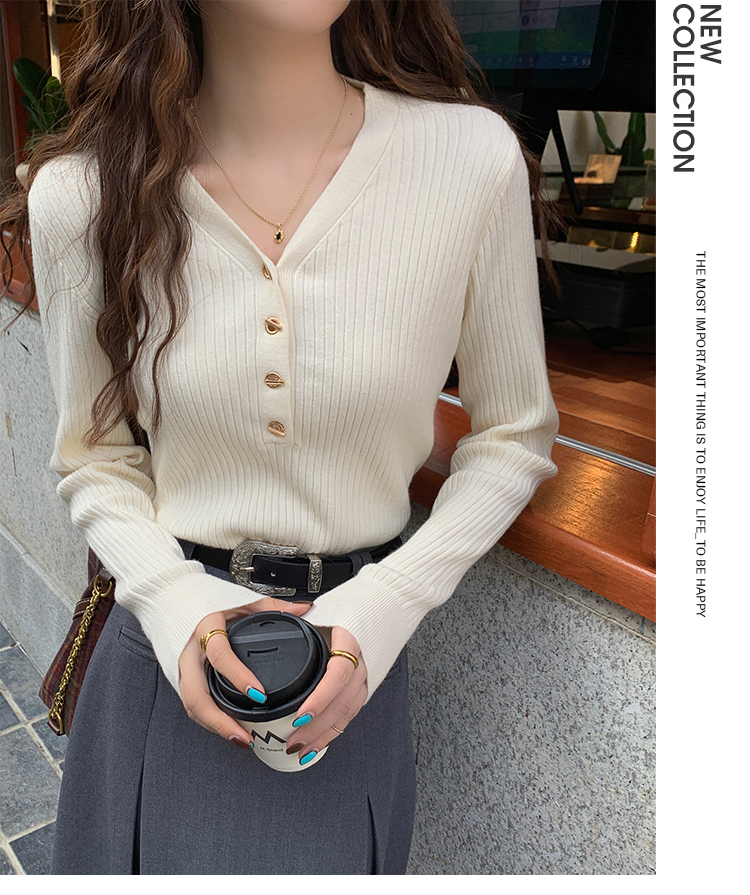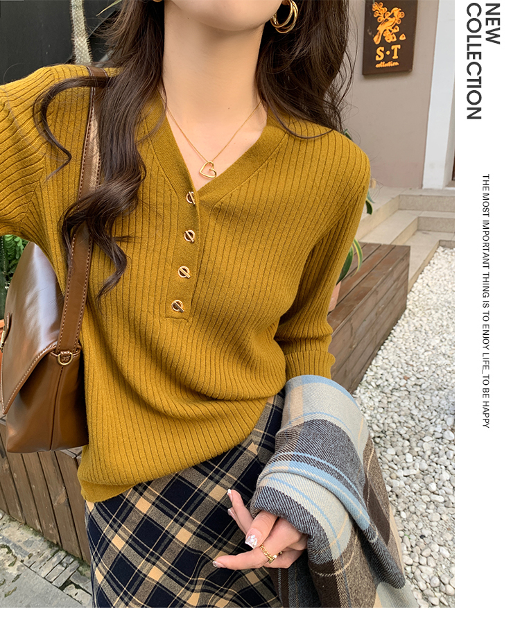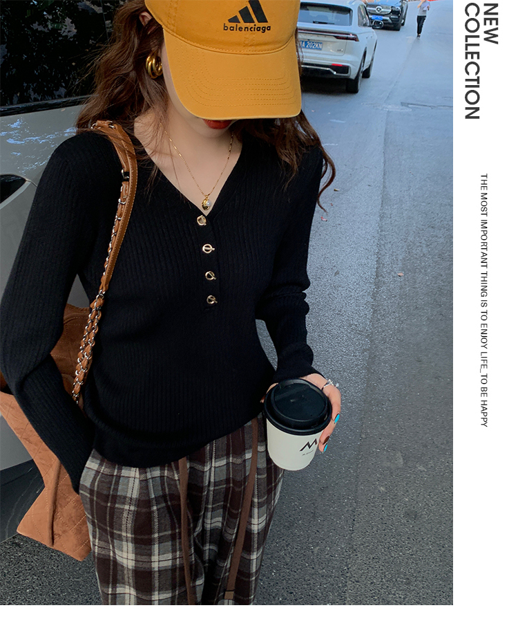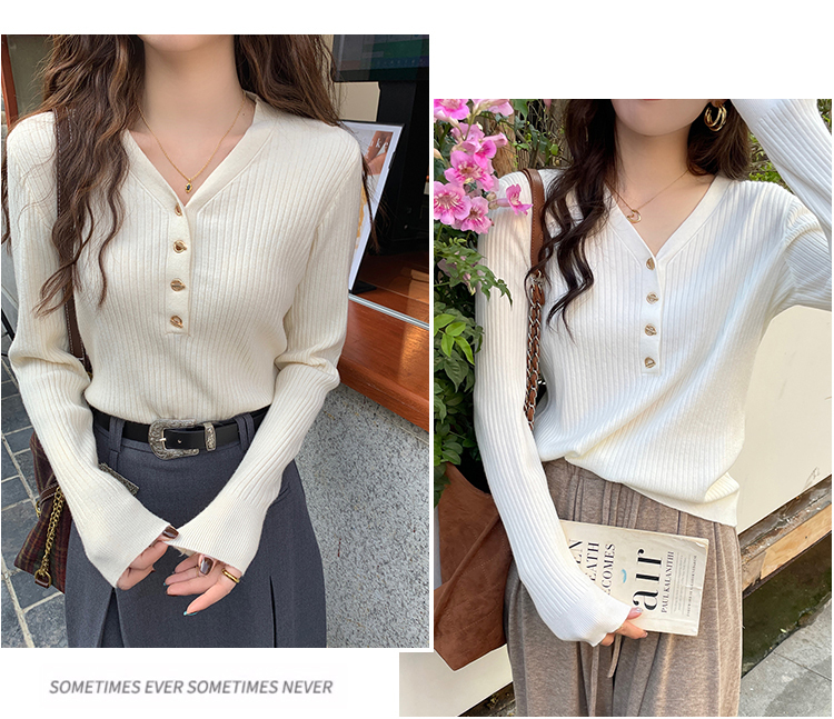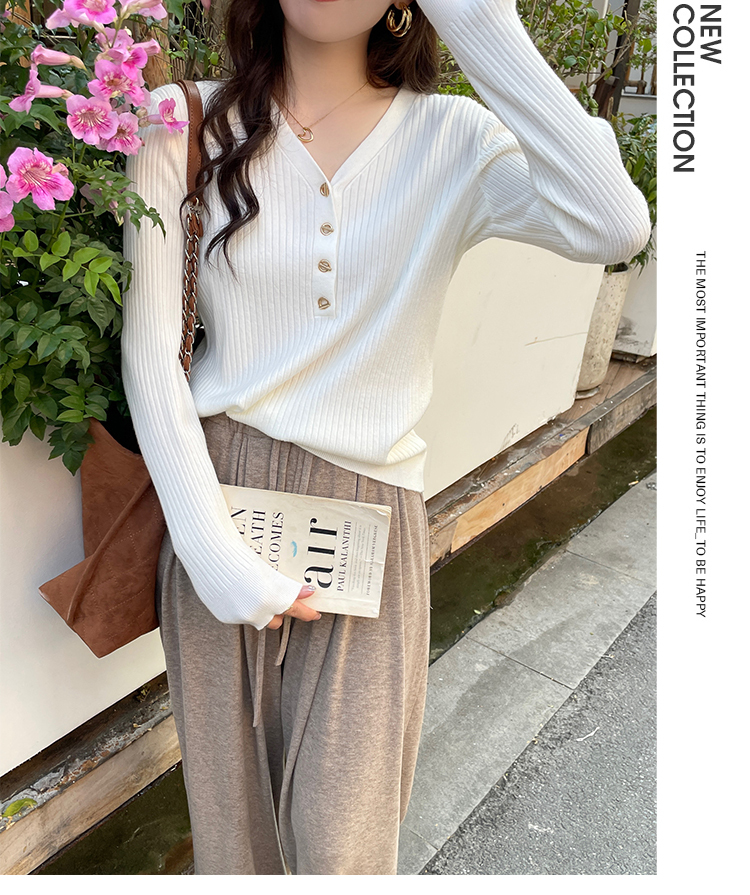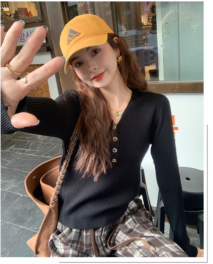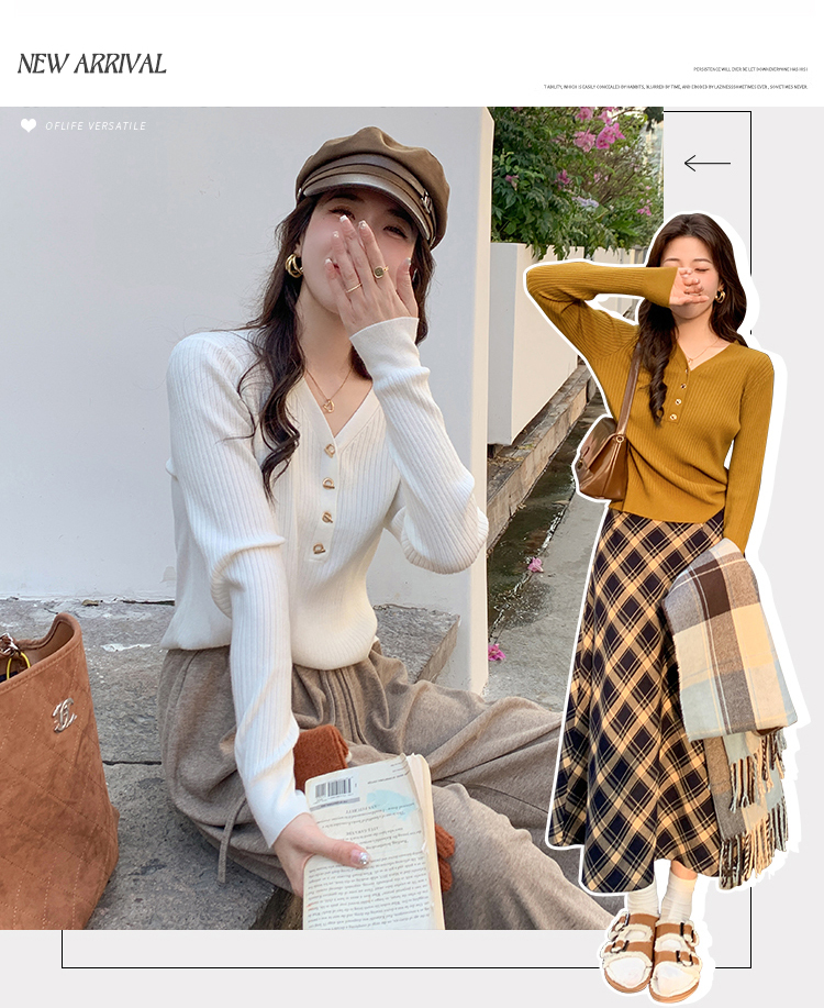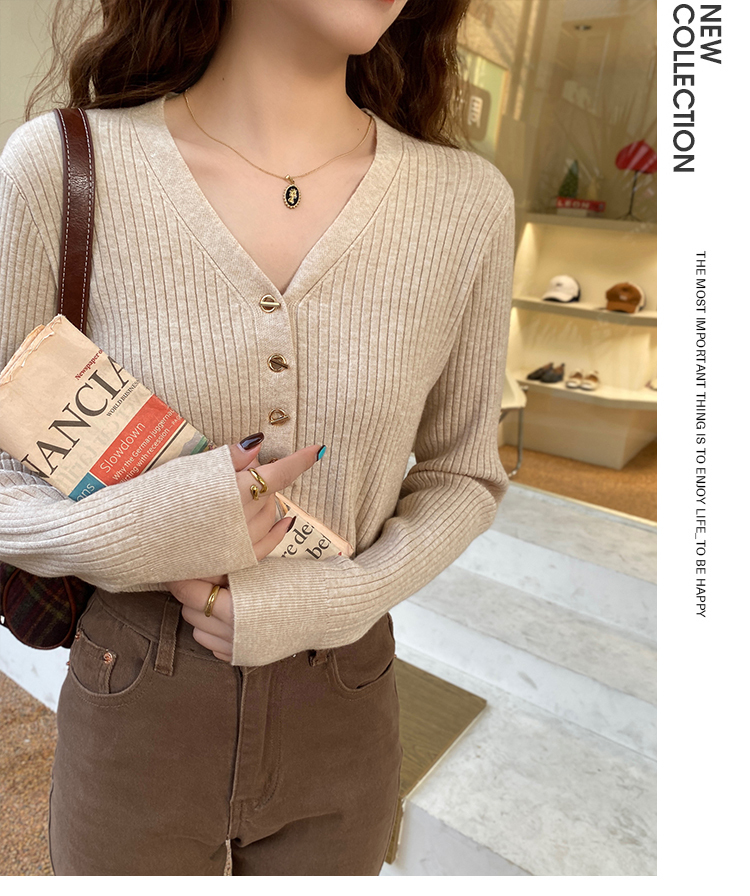 限量特惠|5色 舒適V領金屬扣造型針織衣(12H7603)
