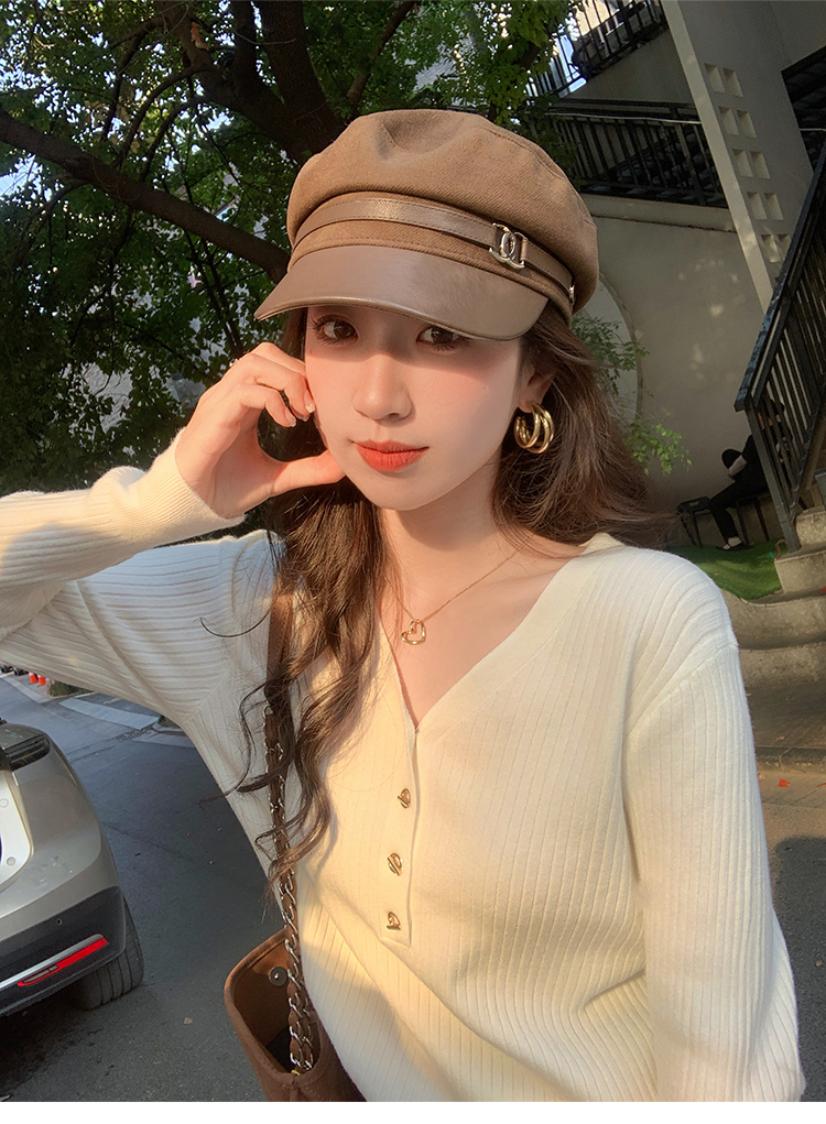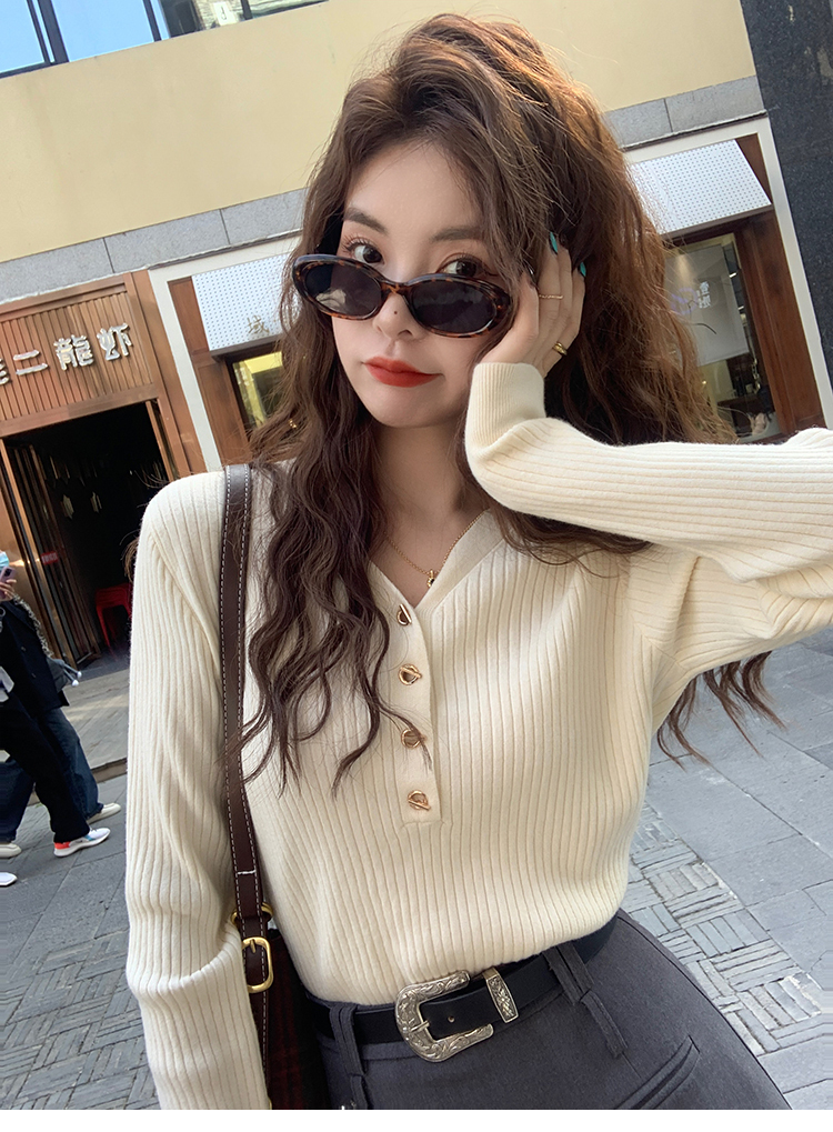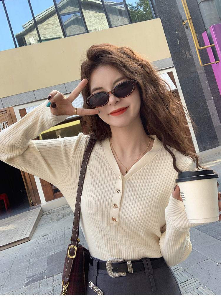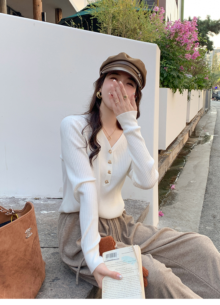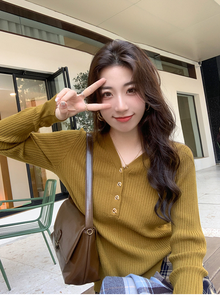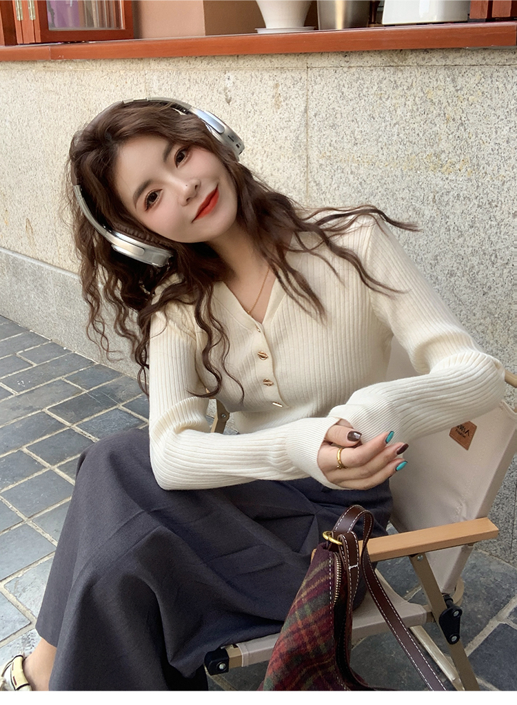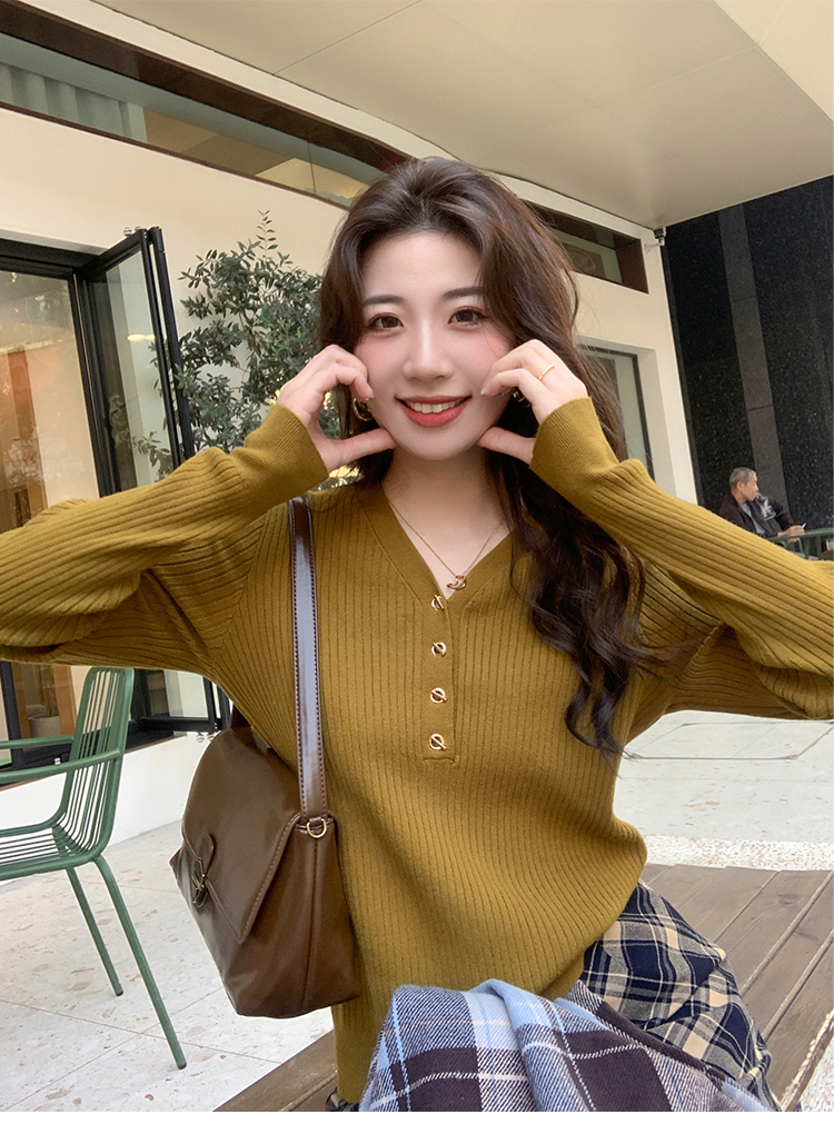 限量特惠|5色 舒適V領金屬扣造型針織衣(12H7603)